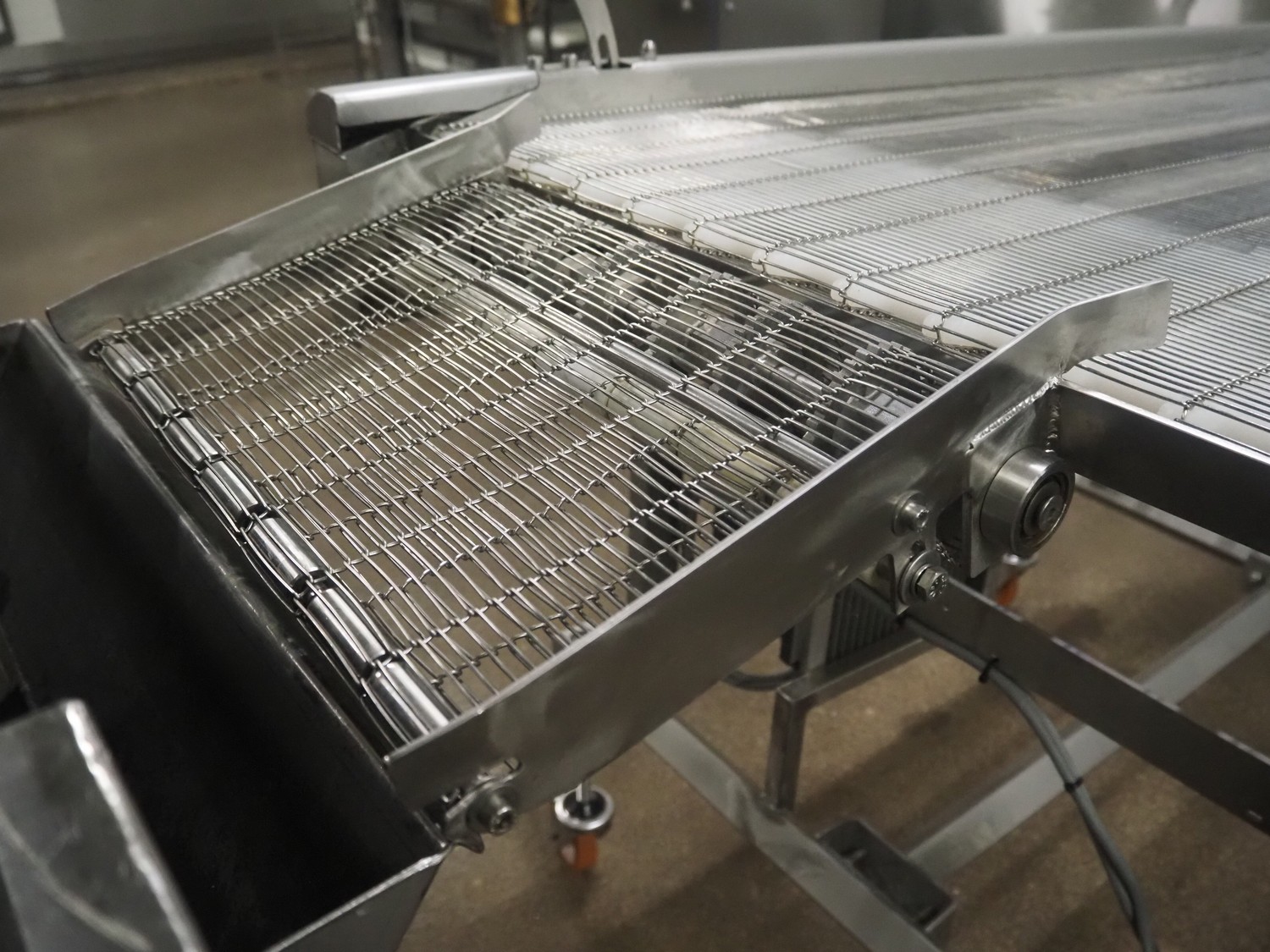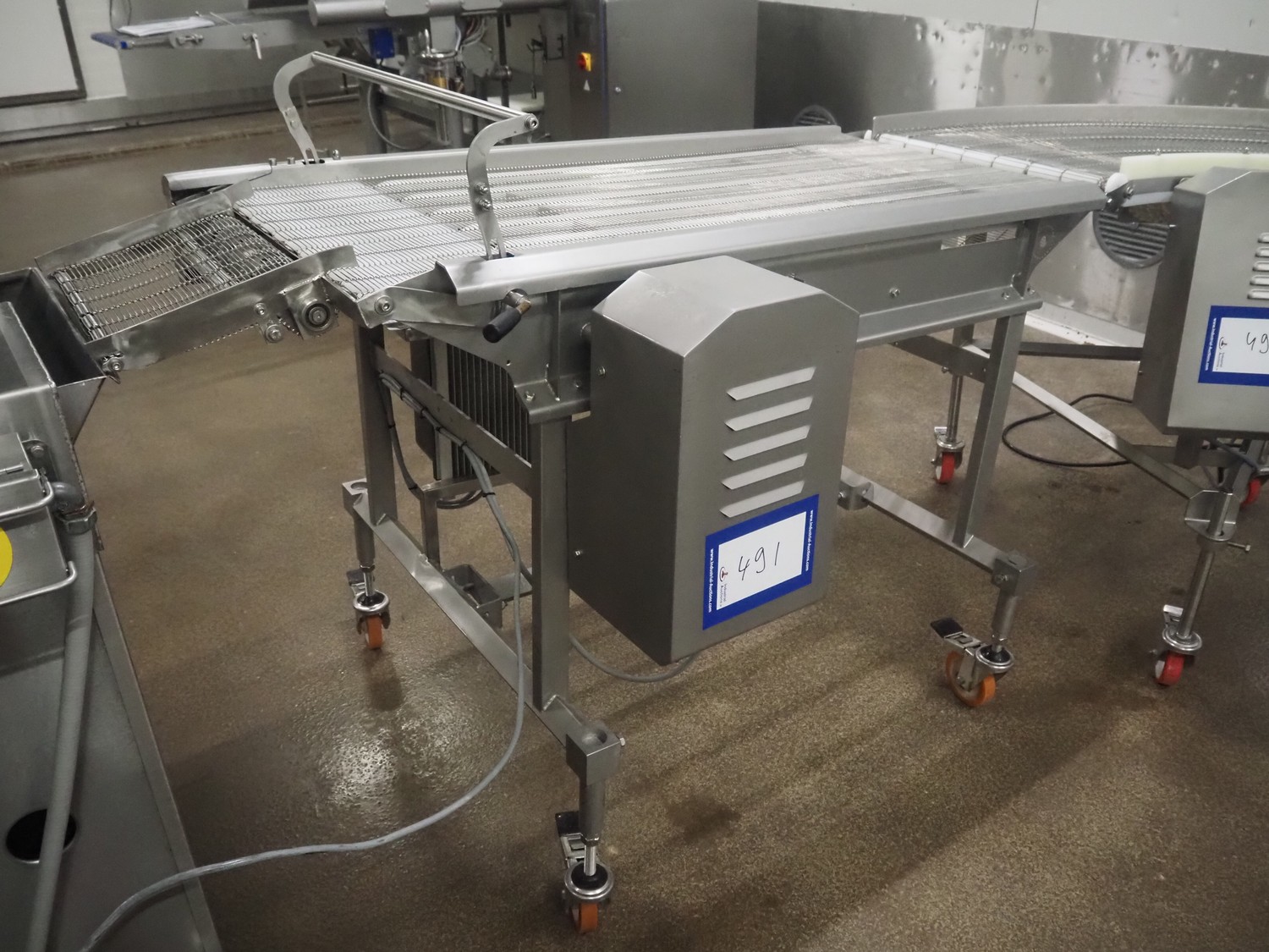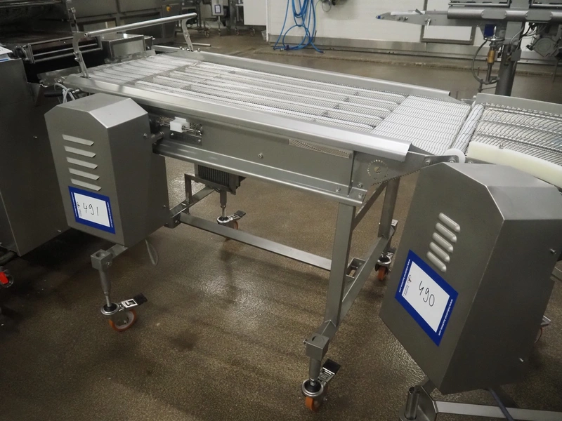 Stork mobile mesh belt, s/s frame, s/s mesh belt, belt width: 630 mm, total dimensions: 1800 mm x 1050 mm x 1250 mm.