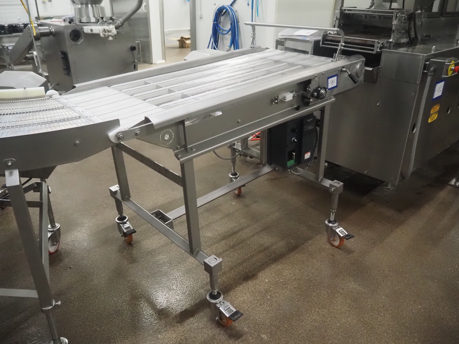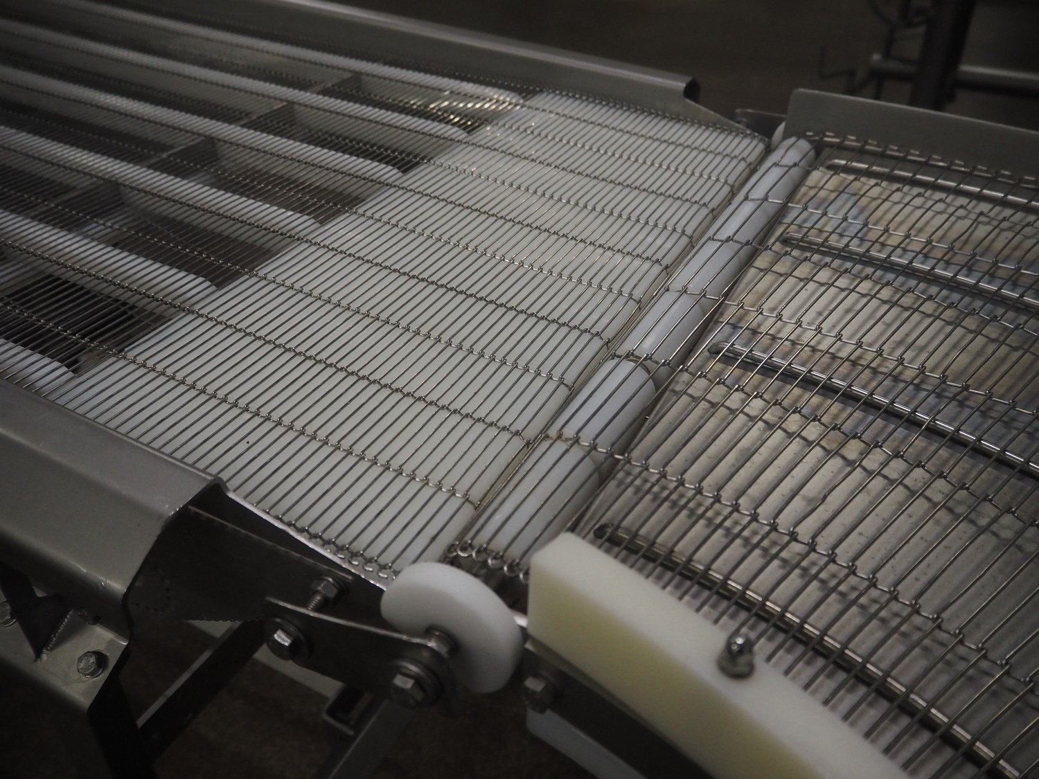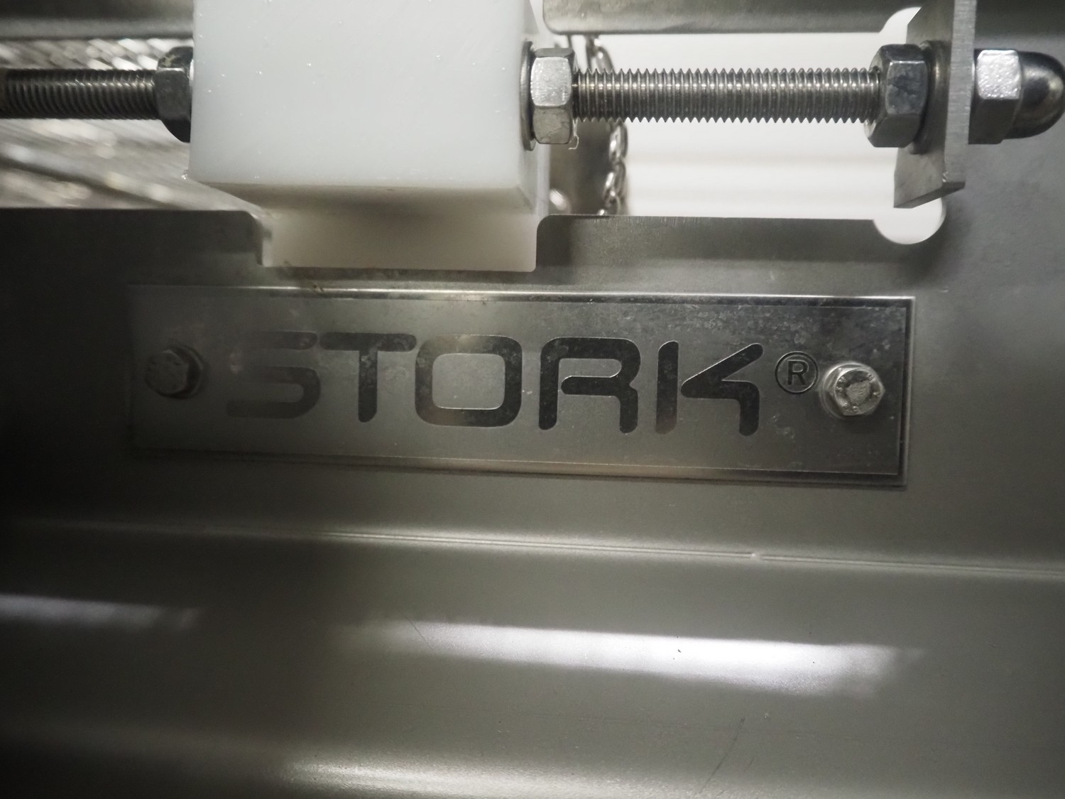 Stork mobile mesh belt, s/s frame, s/s mesh belt, belt width: 630 mm, total dimensions: 1800 mm x 1050 mm x 1250 mm.