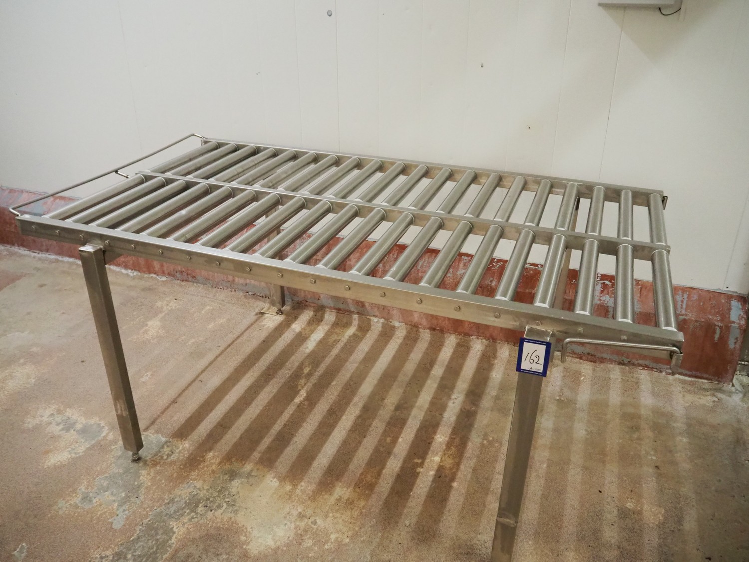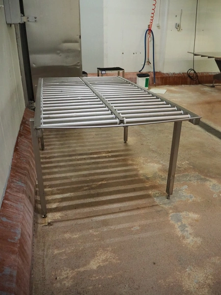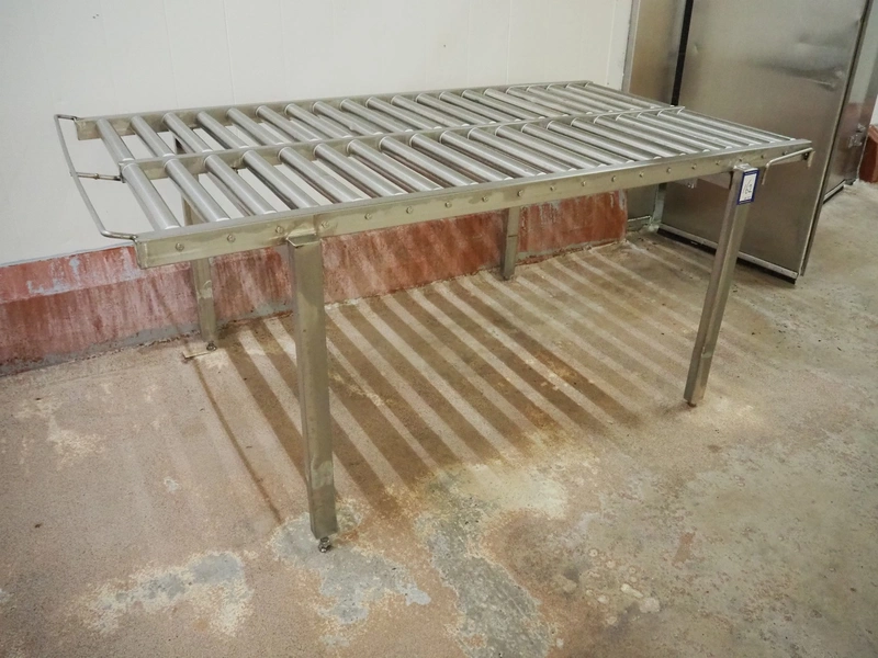 Roller conveyor, s/s frame, s/s rollers, roller width: (2x) 480 mm, total dimensions: 2050 mm x 1200 mm x 890 mm.