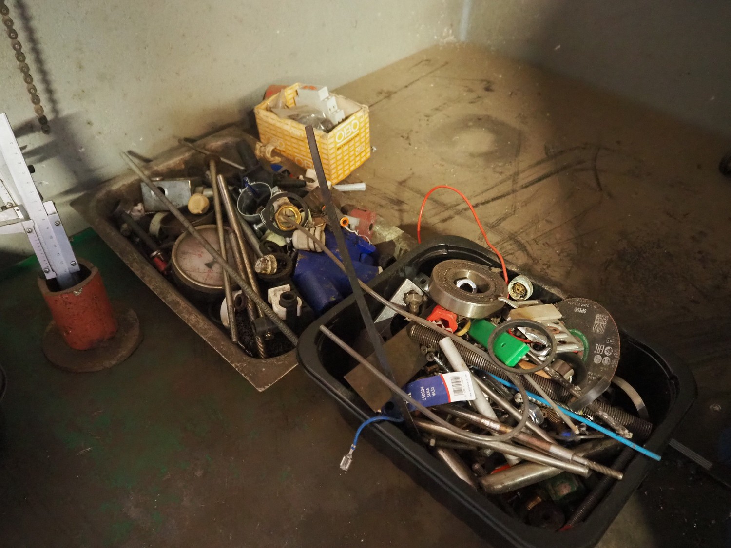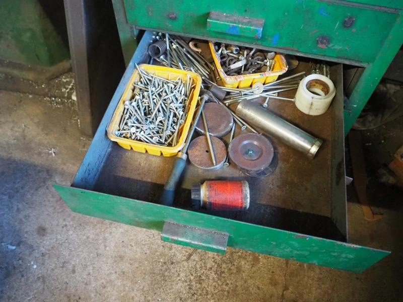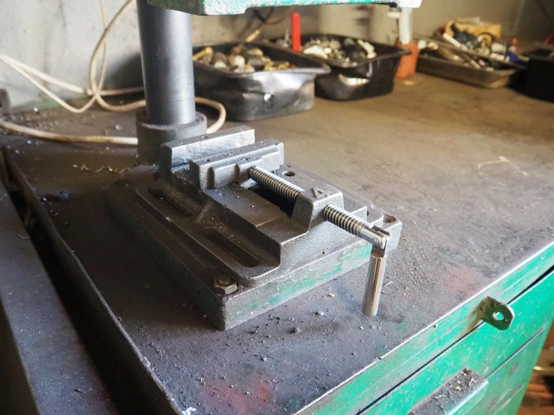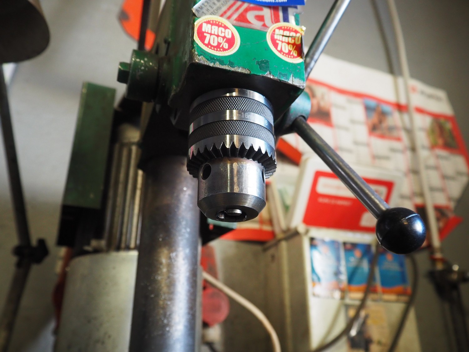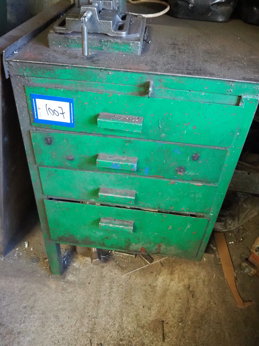 Steel workbench with drilling machine, dimensions: 1900 mm x 800 mm x 1650 mm.