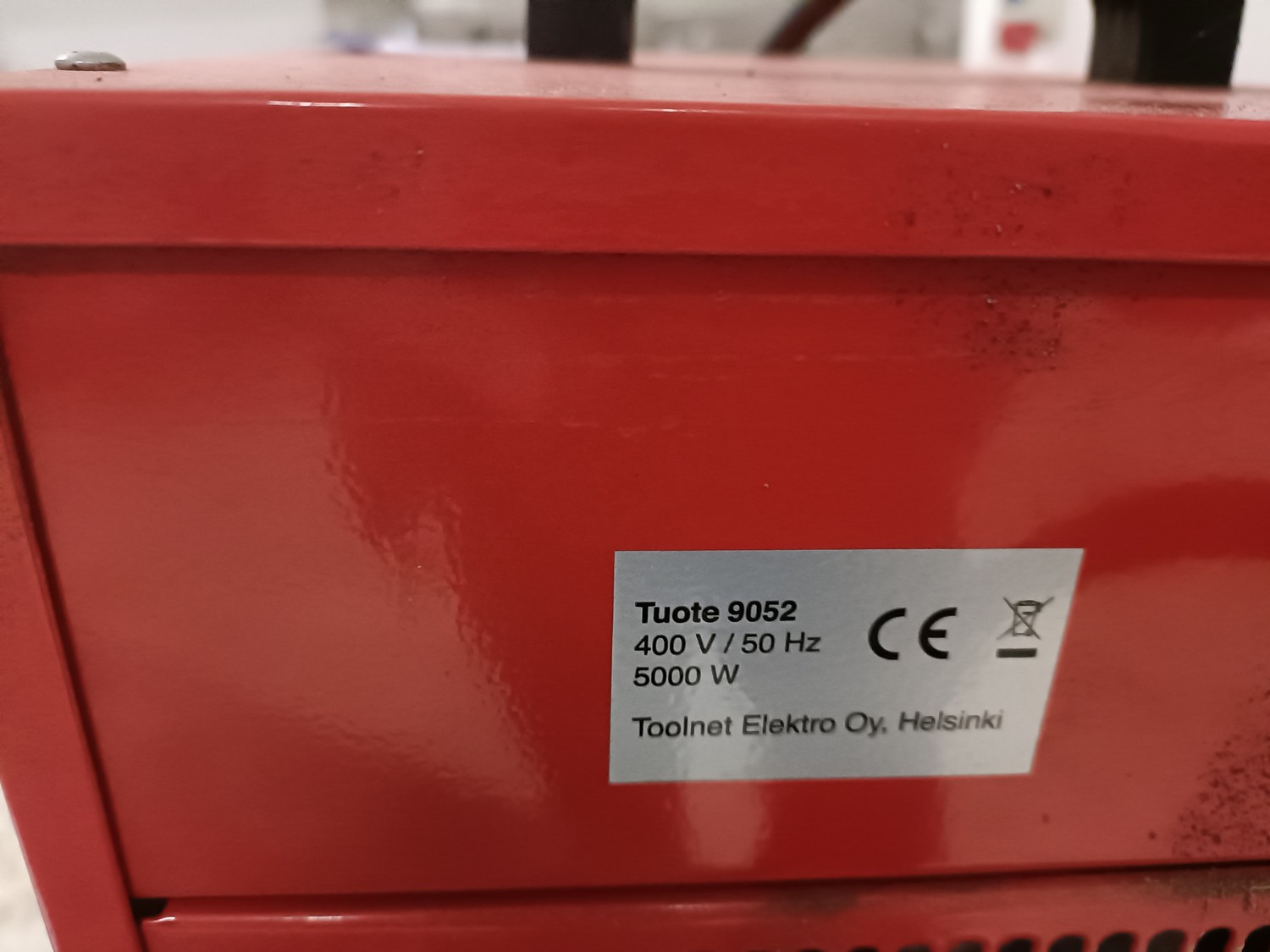 Toolnet Elektro OY heater, model: Tuote 9052, 400 V, 50 Hz, 5000 W, dimensions: 260 mm x 260 mm x 400 mm.