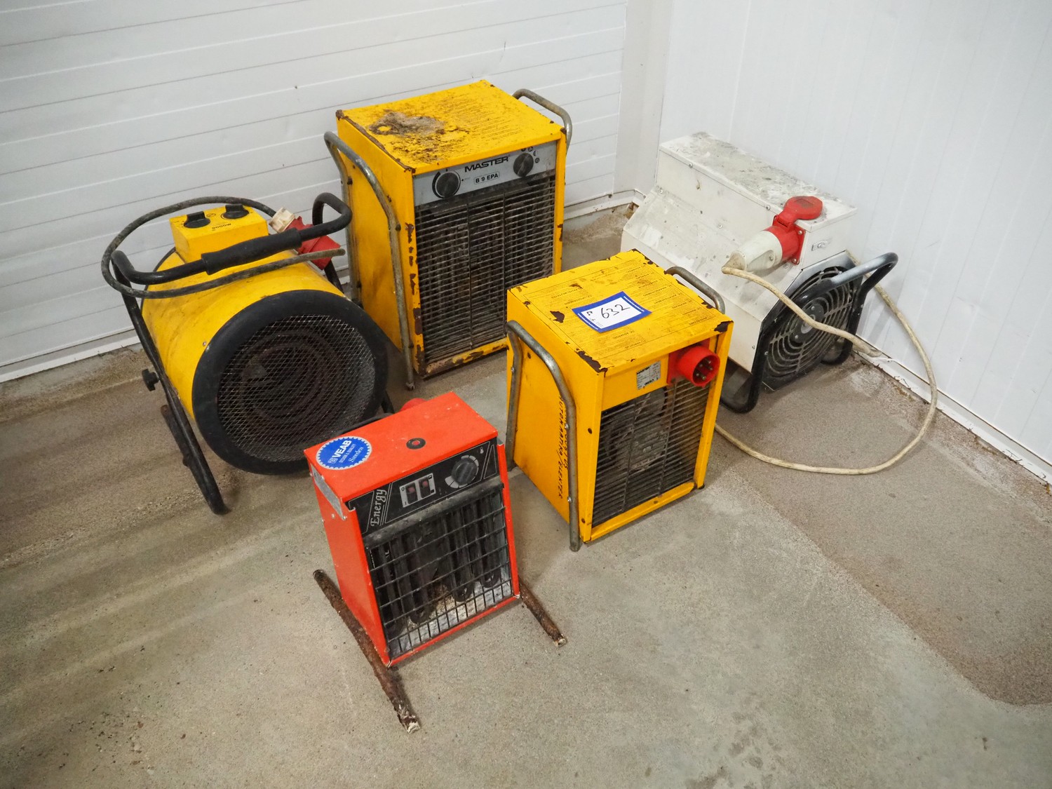 5 VEAB/Desa/Lexa/Thermo electrical heaters, dimensions: 300 mm x 500 mm x 400 mm, 340 mm x 260 mm x 380 mm, 250 mm x 300 mm x 310 mm, 430 mm x 300 mm x 500 mm and 370 mm x 350 mm x 450 mm.