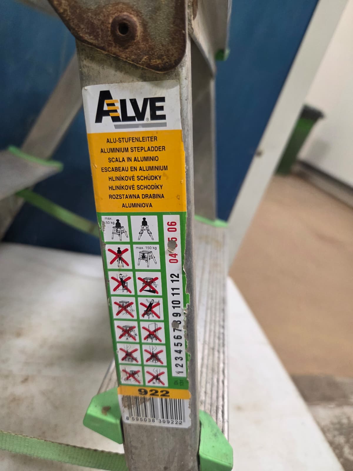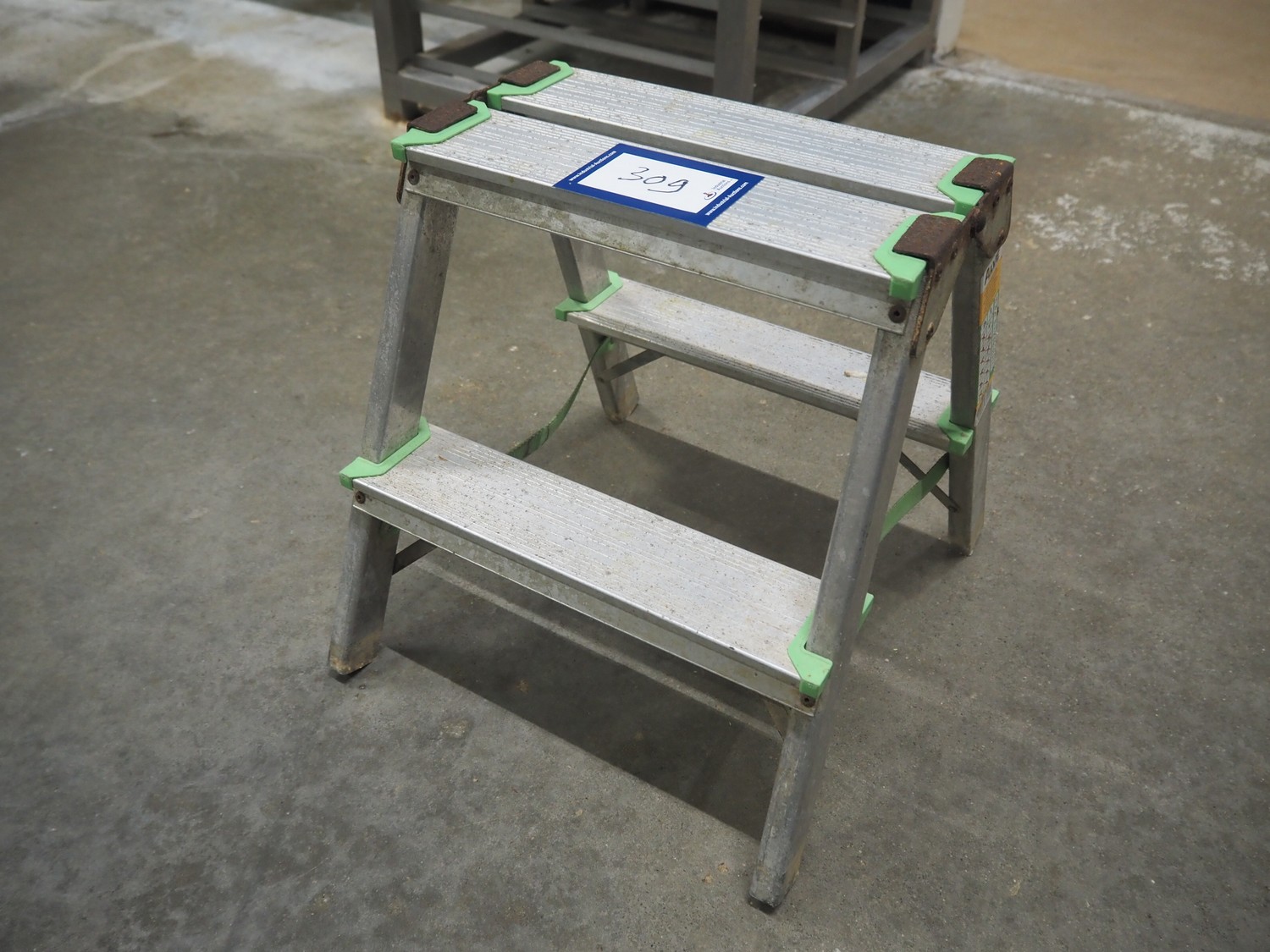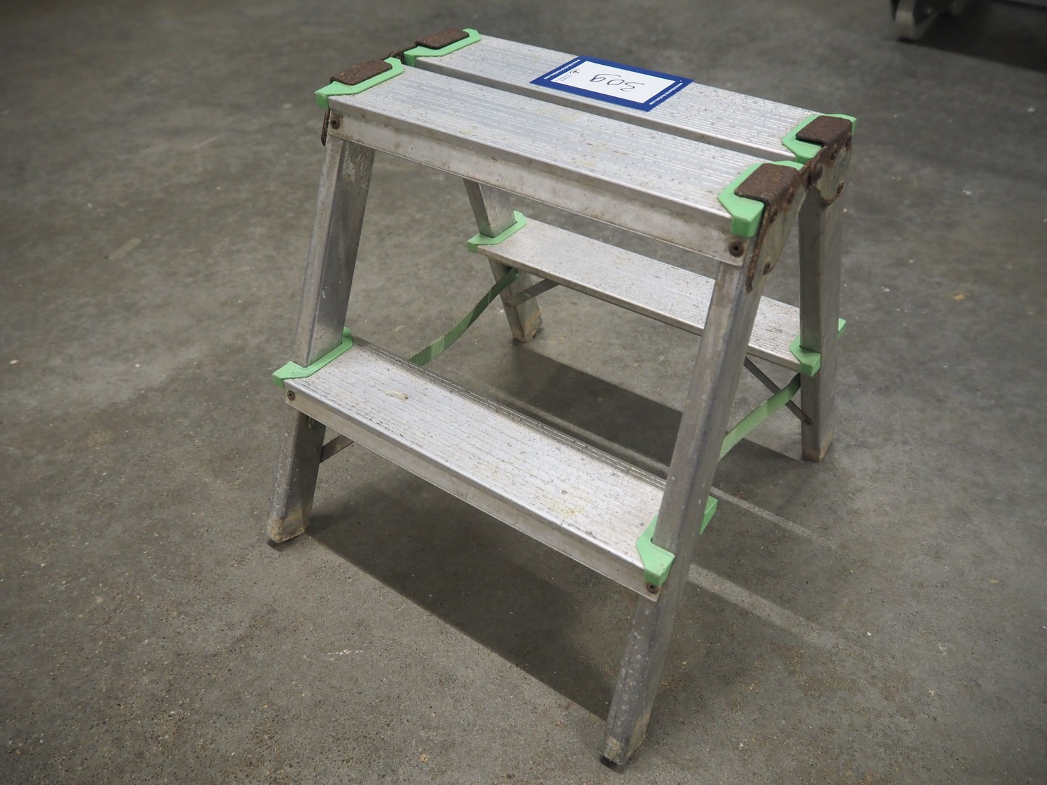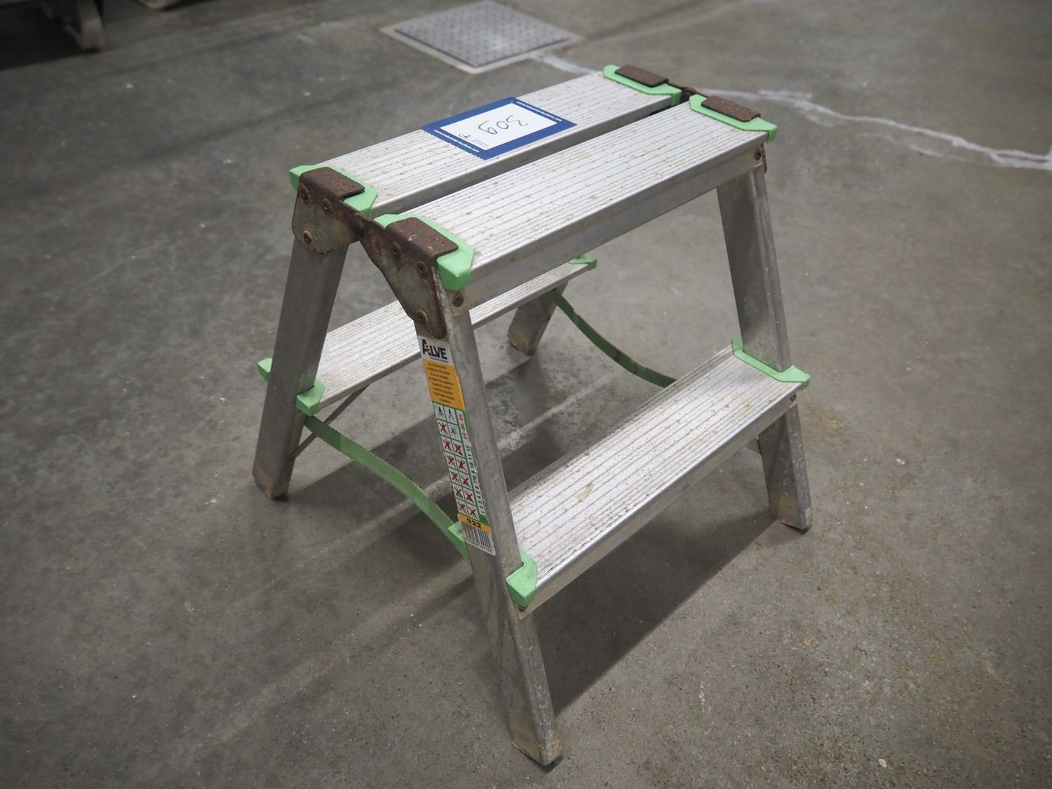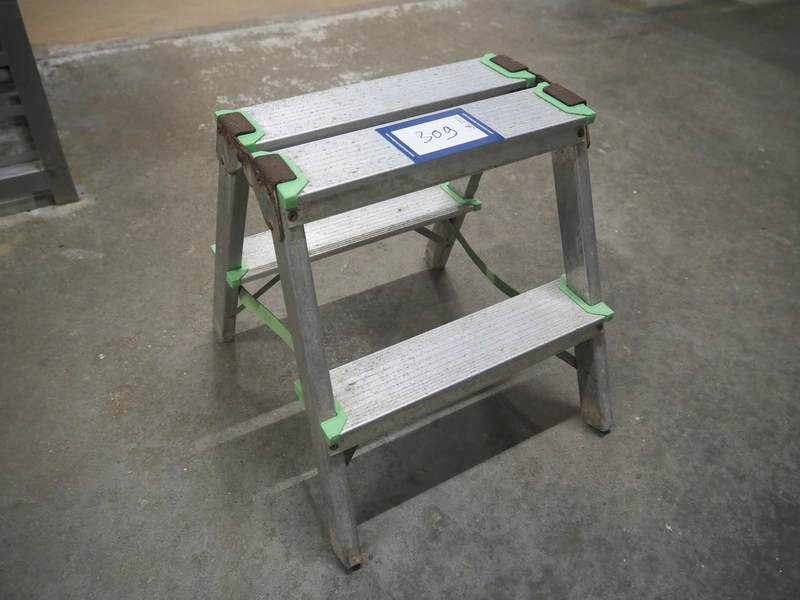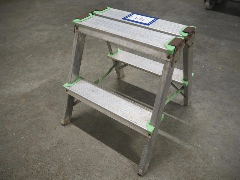 Alve aluminium stairs, 2 steps, year of construction: 08/2005, maximum weight: 150 kg, dimensions: 380 mm x 430 mm x 390 mm.
