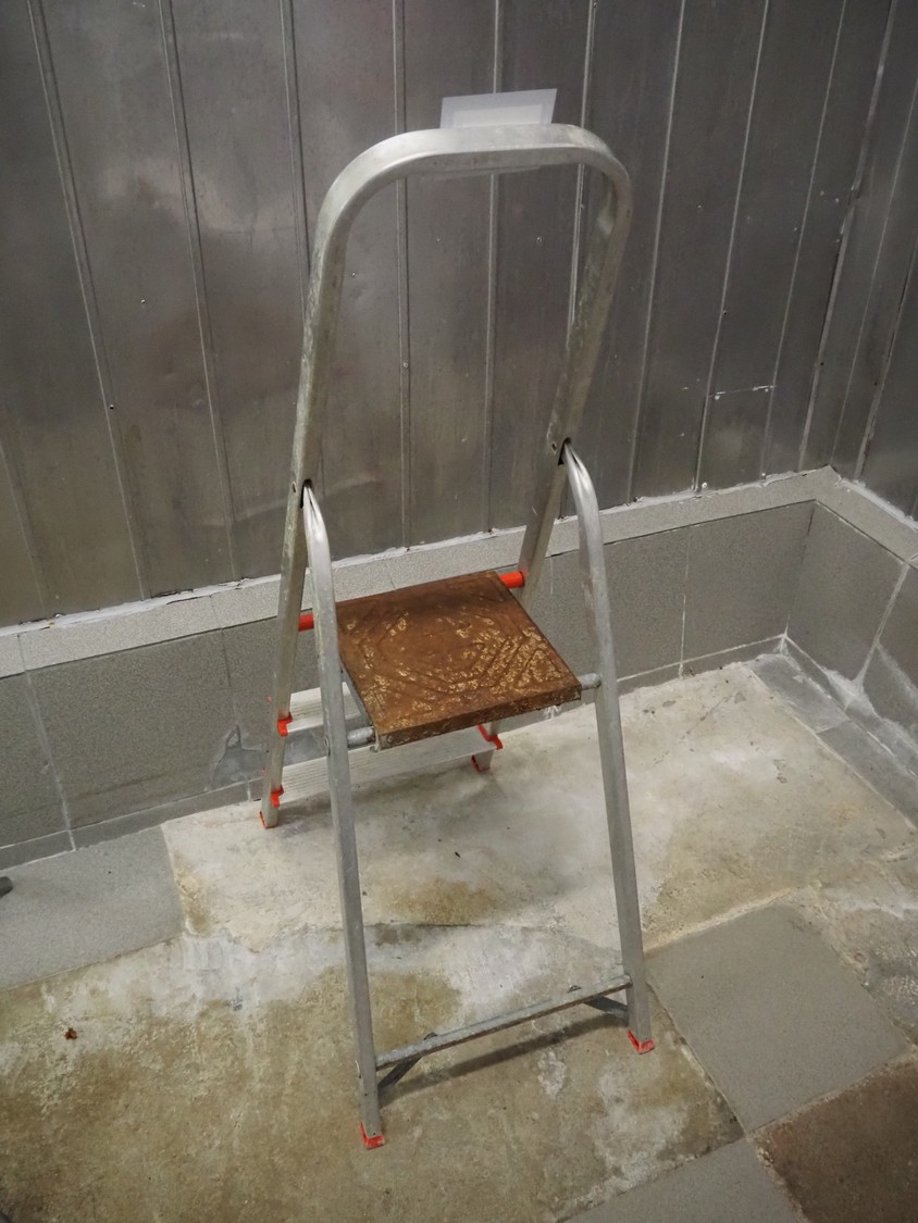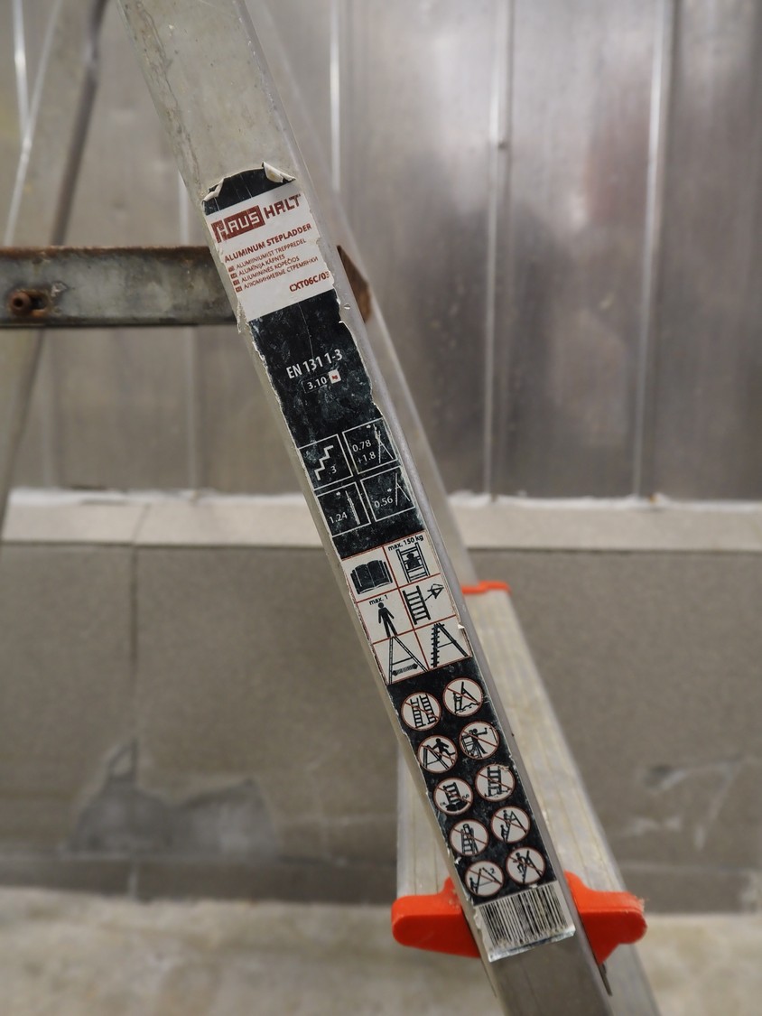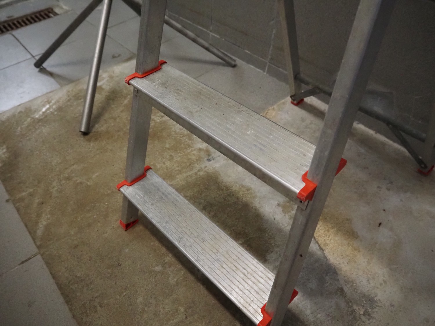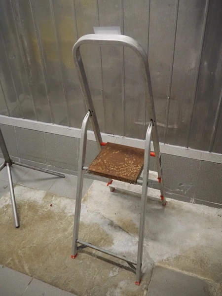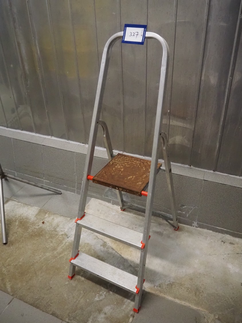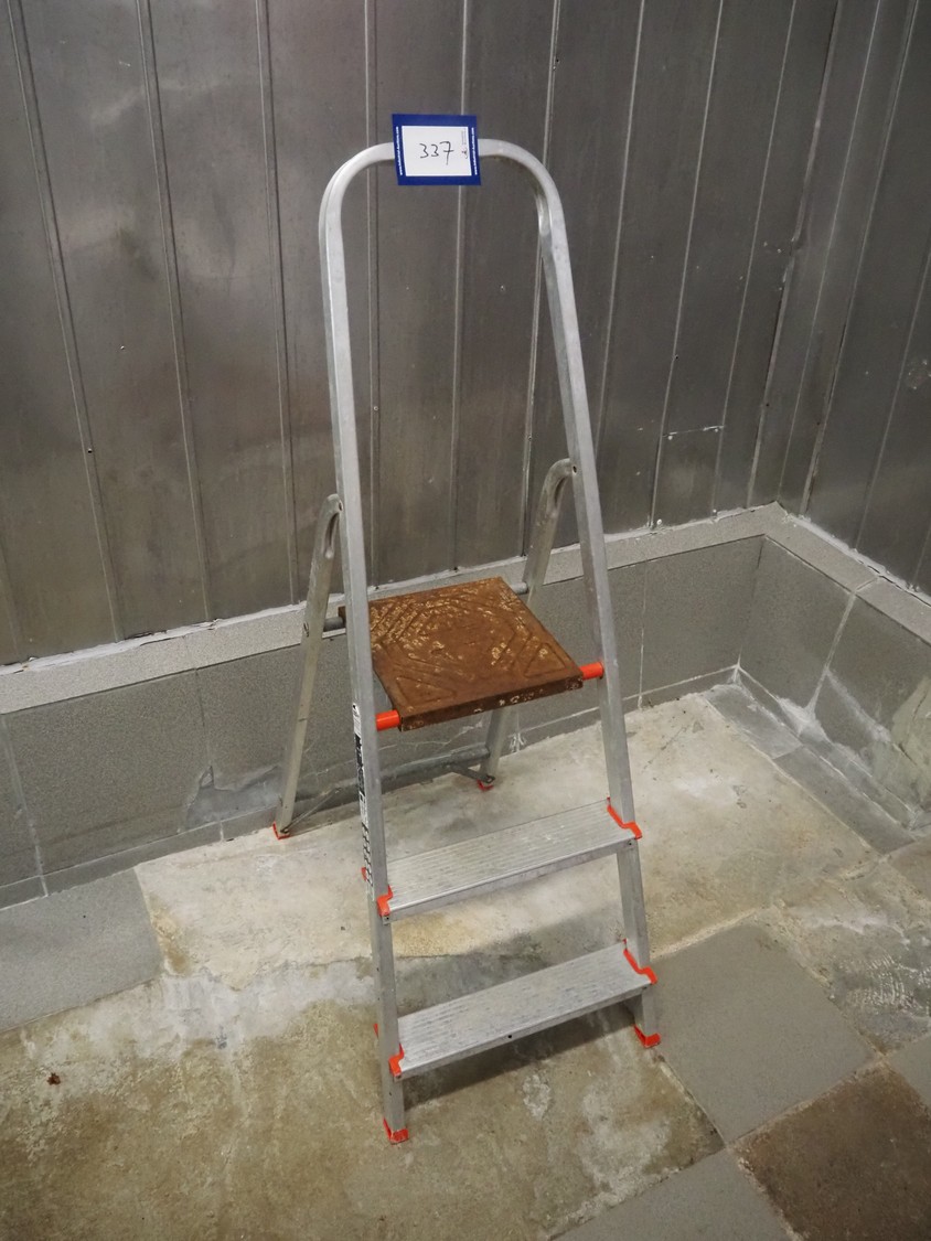 Haushalt aluminium stairs, 3 steps, capacity: 150 kg, working height: 560 mm, total dimensions: 640 mm x 400 mm x 1240 mm.
