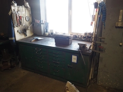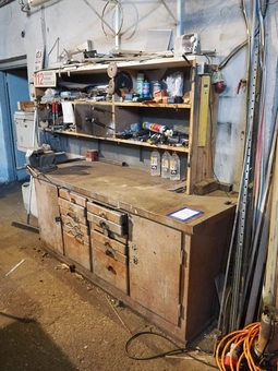 Steel workbench with bench vice, dimensions: 1900 mm x 750 mm x 1200 mm, including rack with content.€ 25,000 bids26/02/2026 16:40 -