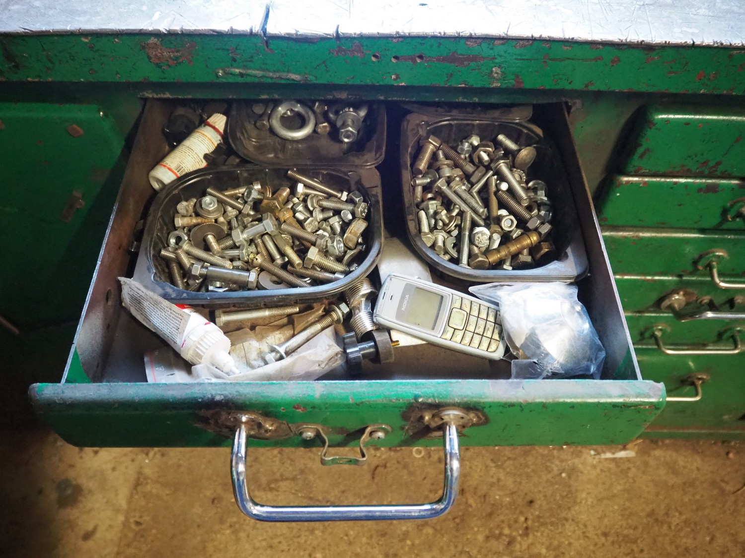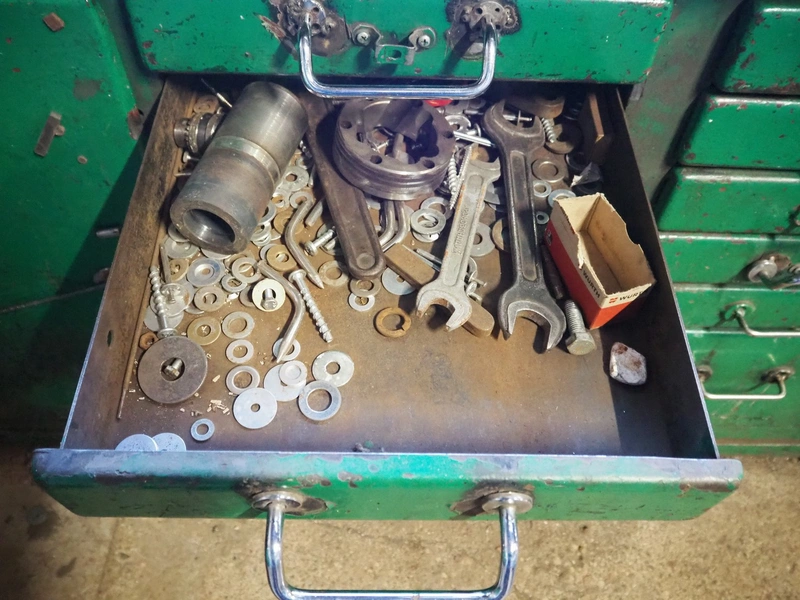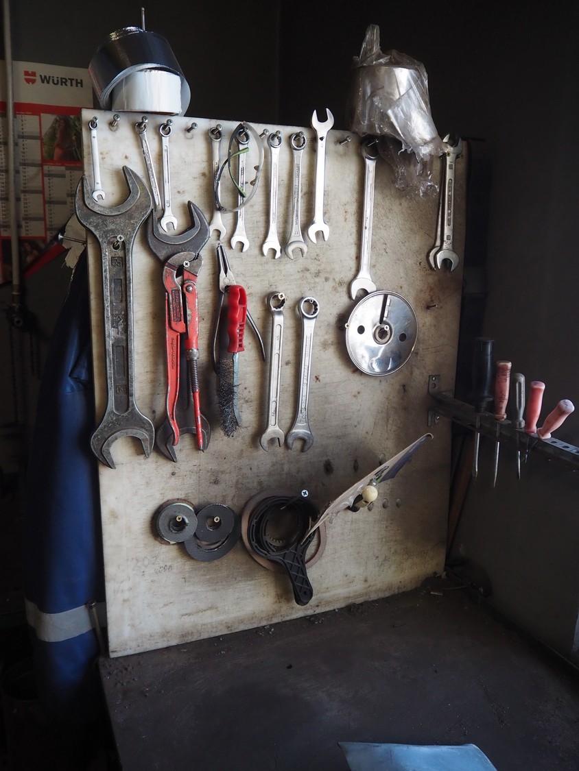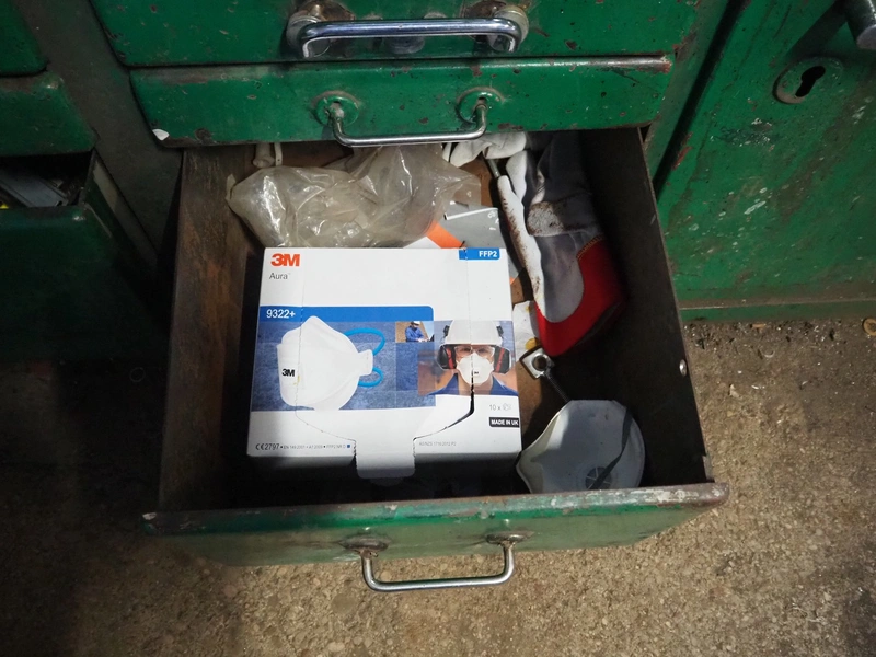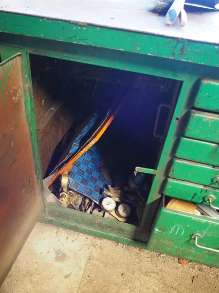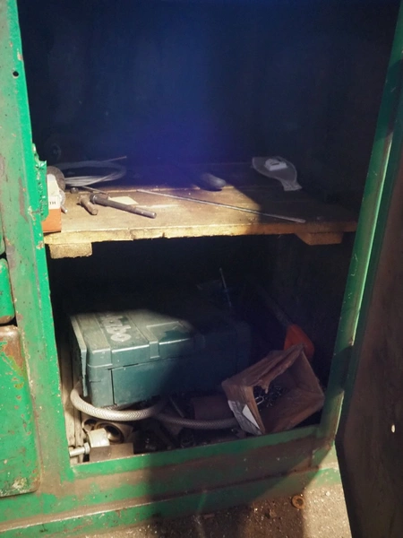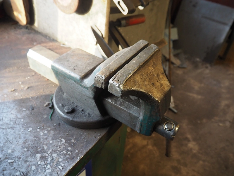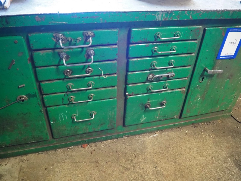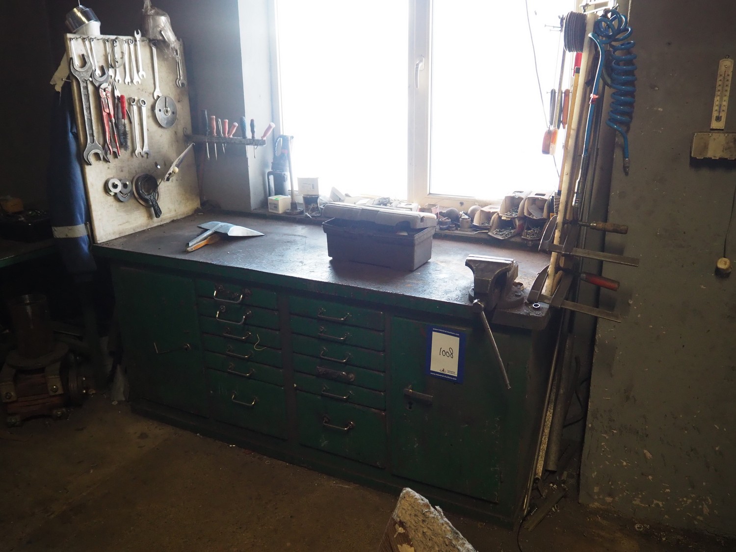 Steel workbench with bench vice, dimensions: 2000 mm x 850 mm x 1100 mm.