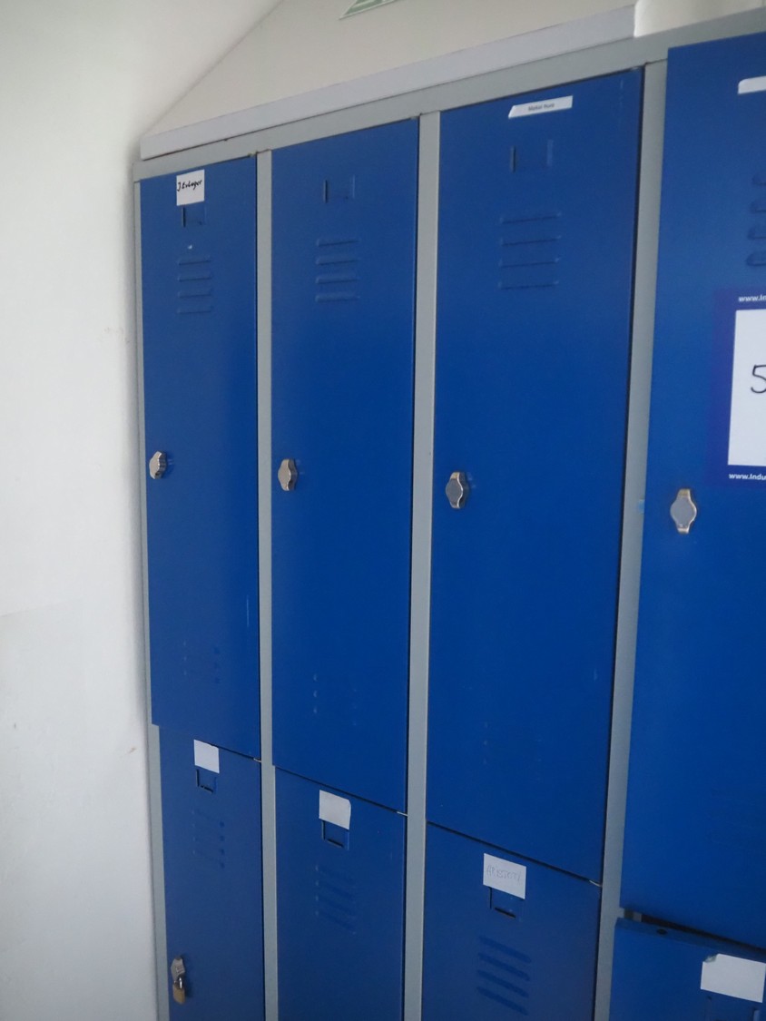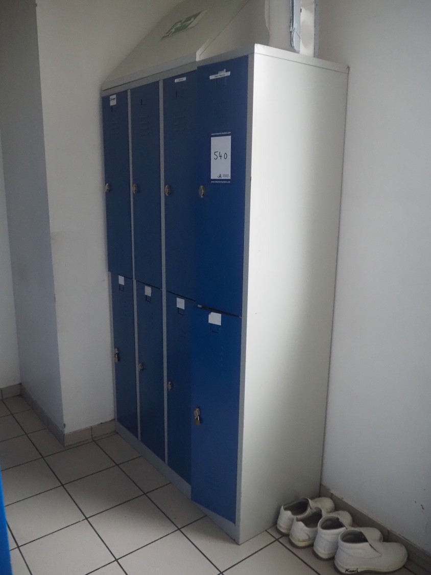 Steel locker, inside dimensions: (8x) 470 mm x 280 mm x 920 mm, total dimensions: 1180 mm x 500 mm x 2300 mm.