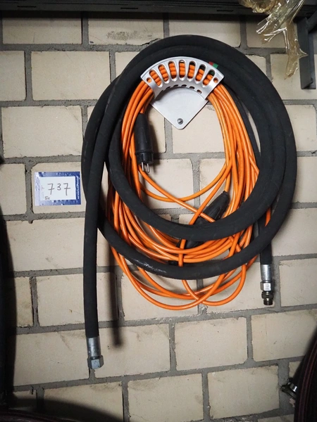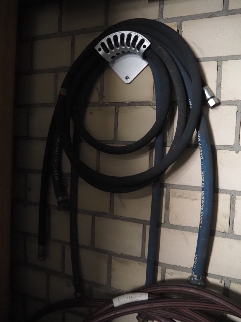 3 hose reels with hoses, hydraulic hoses and electric cable.