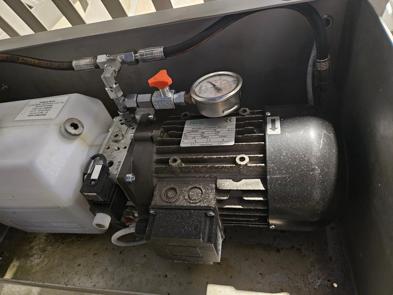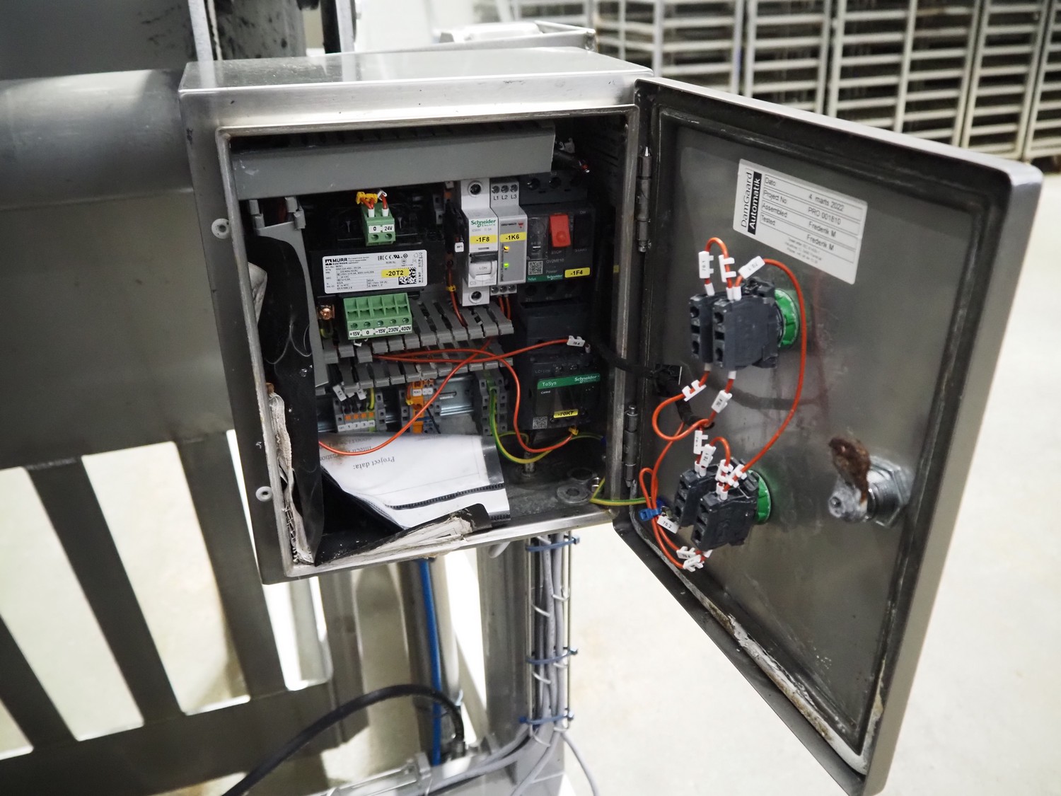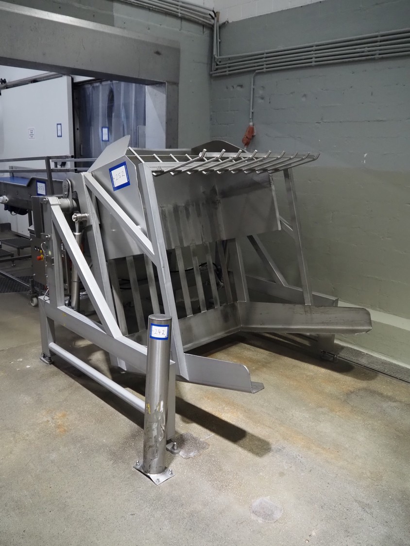 Mohn GmbH tilting device for pallet boxes, type: SL-I/B-LSON, machine number: 22-61805/1, year of construction: 2022/5, 400 V, 3 Ph, 50/60 Hz, 2.2 kW, capacity: 1000 kg, clearance: 1200 mm x 1300 mm, total dimensions: 1900 mm x 1700 mm x 1700 mm.