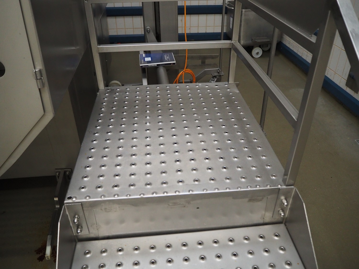 S/s platform with stairs, working height: 830 mm, total dimensions: 1750 mm x 700 mm x 1830 mm.