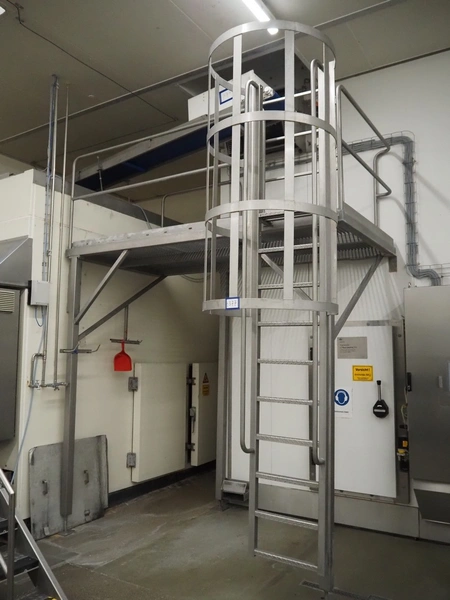 S/s platform with stairs and gratings, dimensions: 3000 mm x 2500 mm x 3860 mm. Lot is already dismantled.