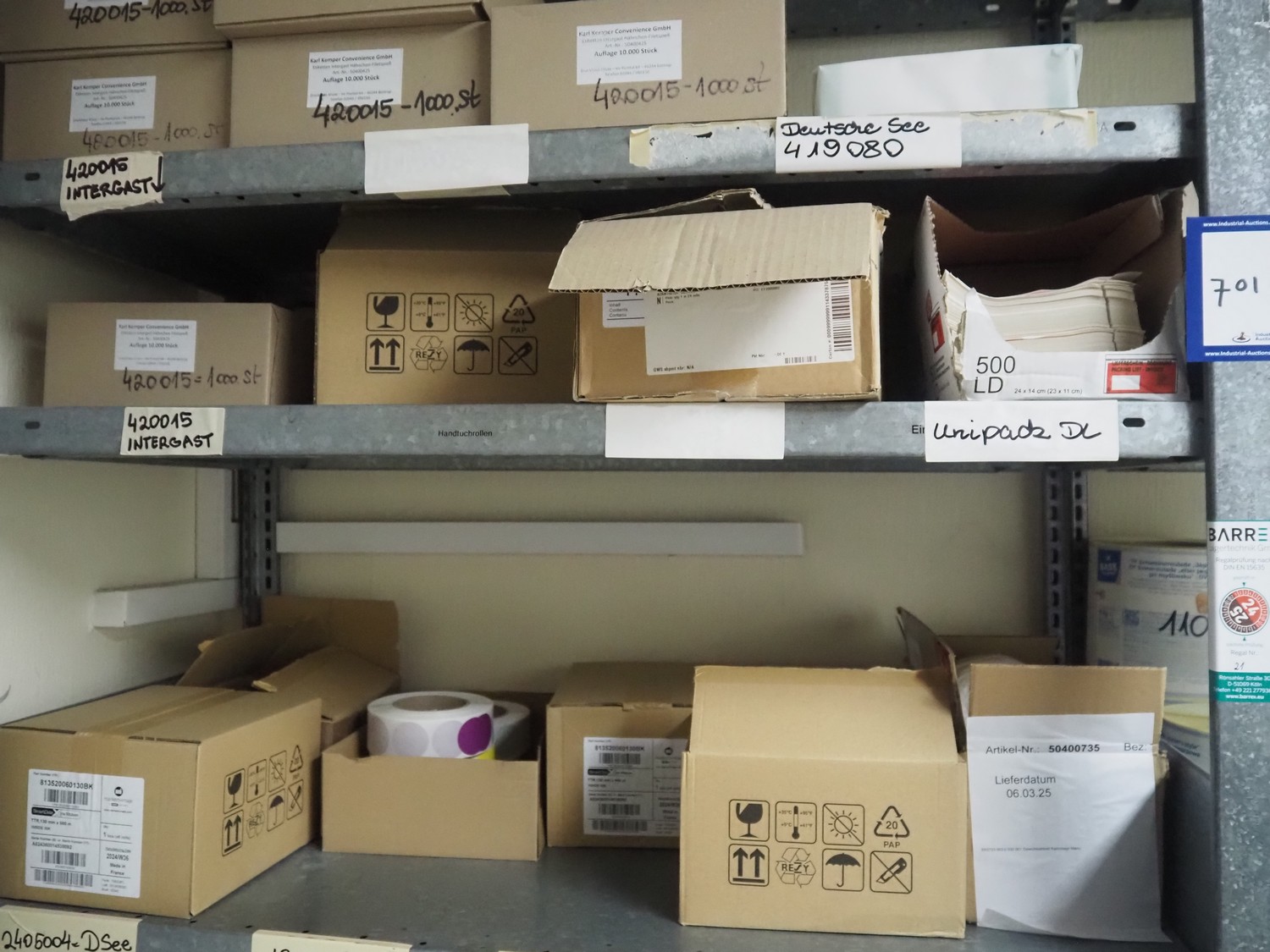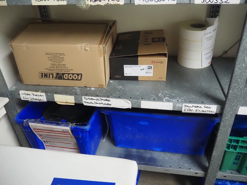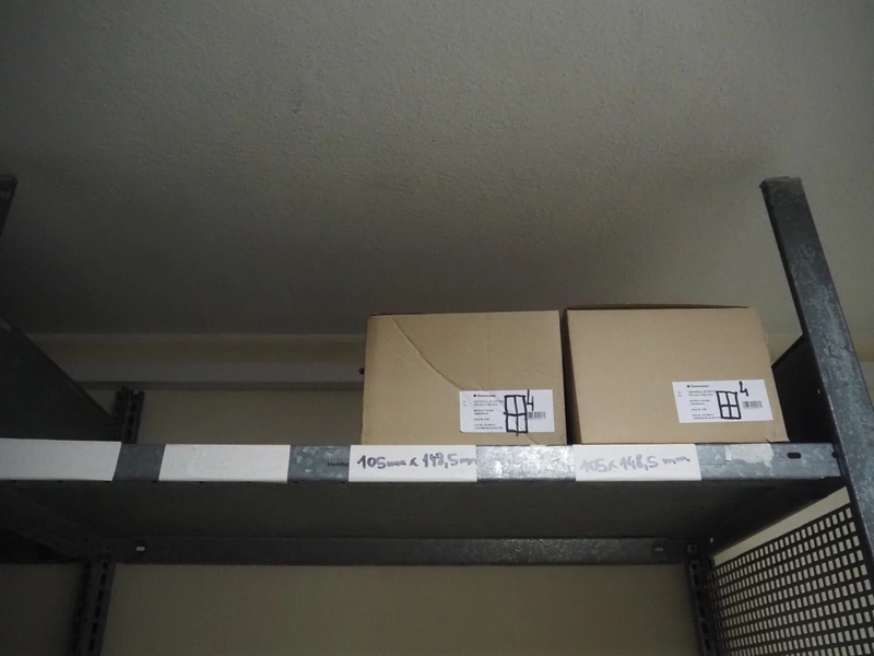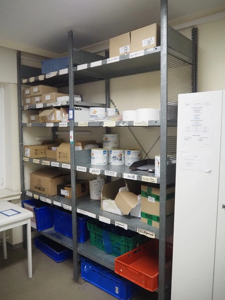 Barrex Lagertechnik GmbH galvanized rack, 6 floors, dimensions: 2070 mm x 550 mm x 2500 mm. Including printed and unprinted labels.