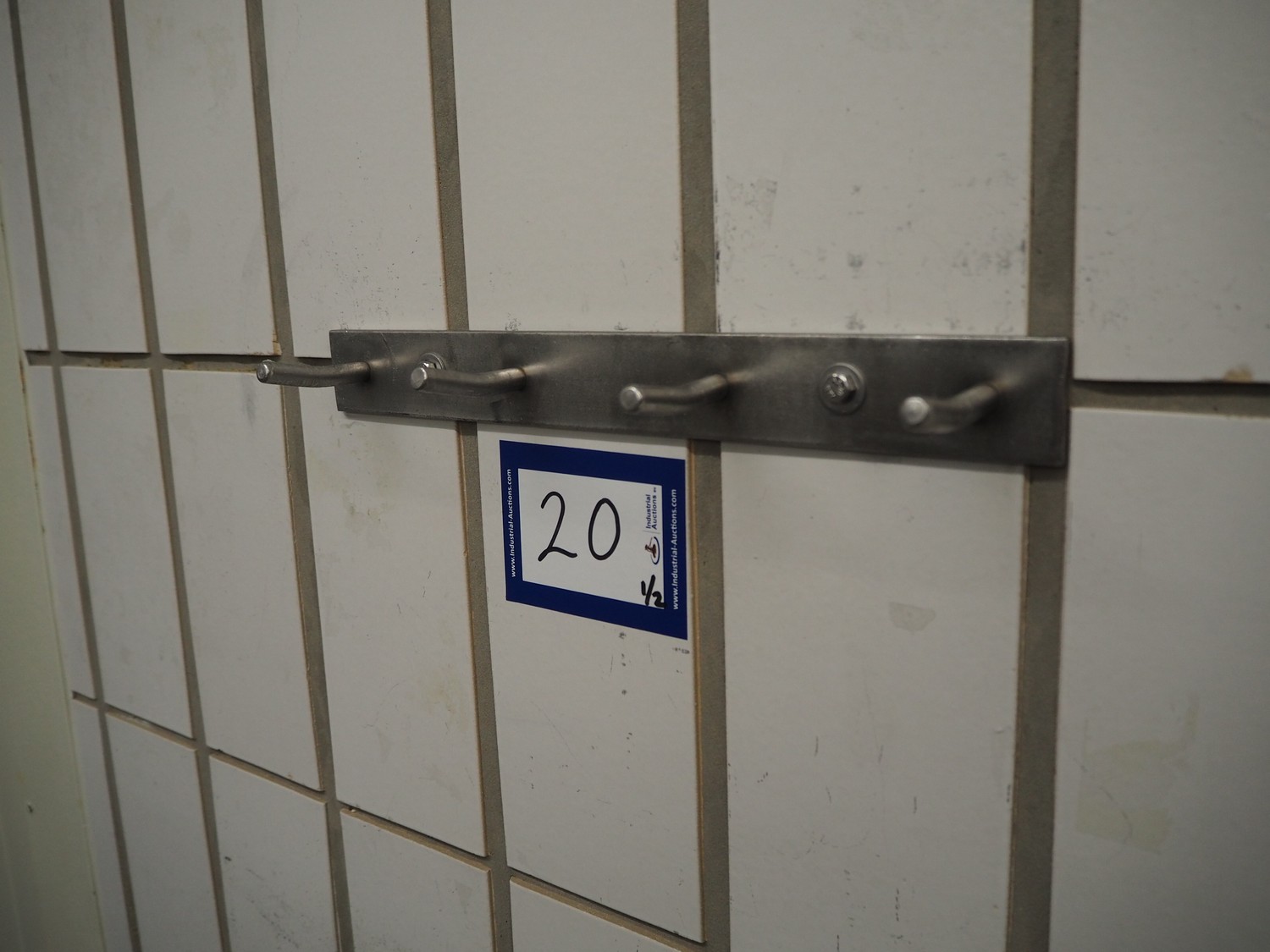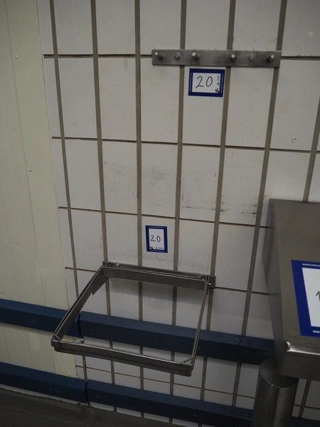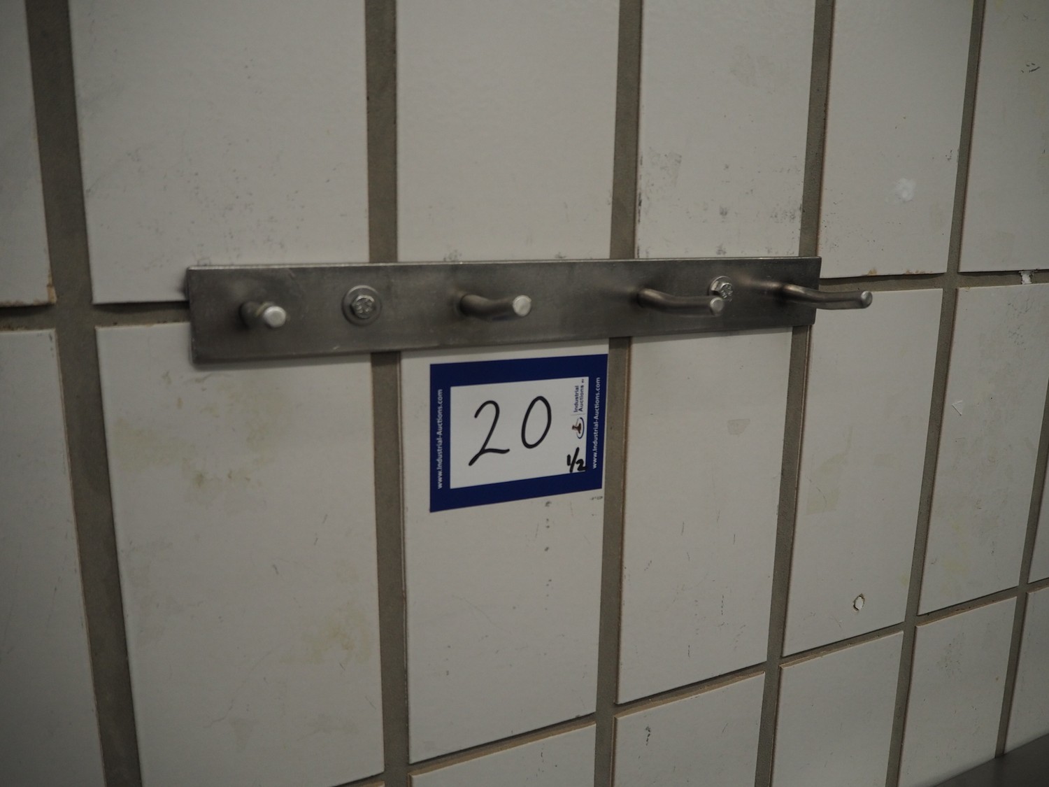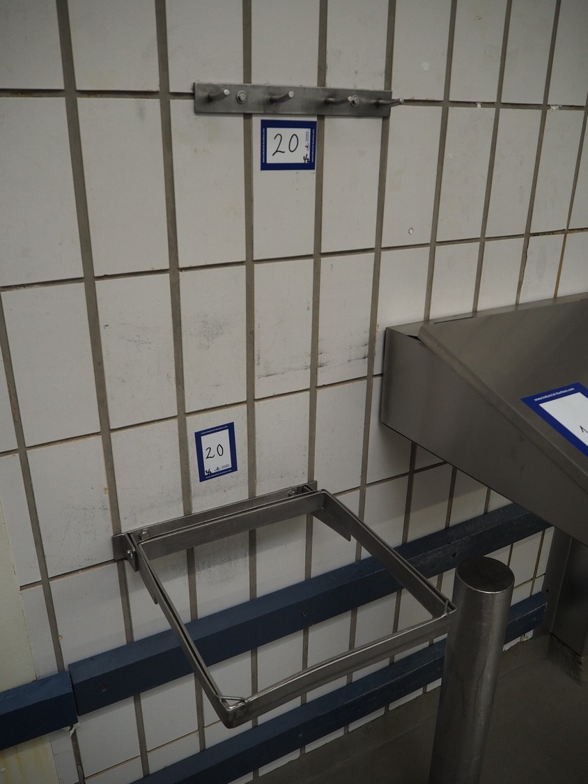 S/s wall mounted peg and frame, dimensions frame: 410 mm x 440 mm x 60 mm, length peg: 350 mm.