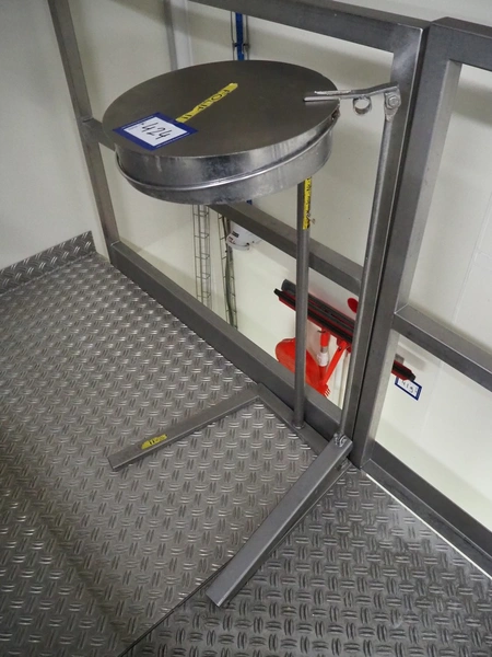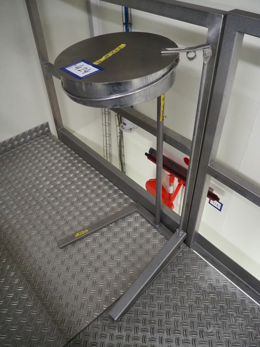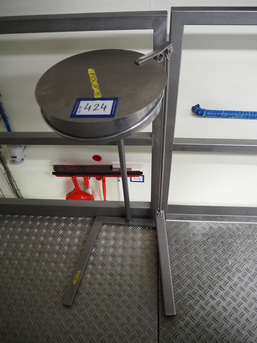 S/s waste bag holder, foot control, dimensions: 500 mm x 450 mm x 900 mm.