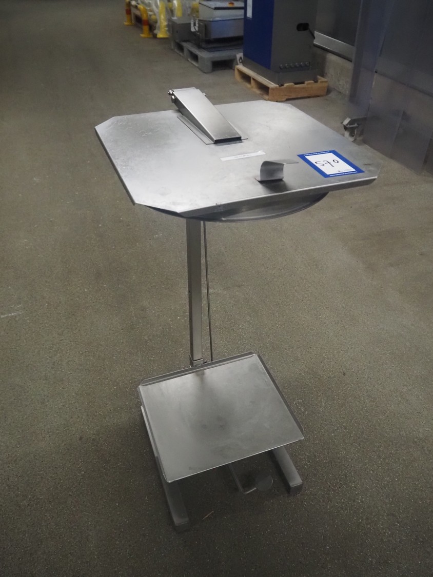 S/s waste bag holder, foot control, dimensions: 500 mm x 400 mm x 1000 mm.