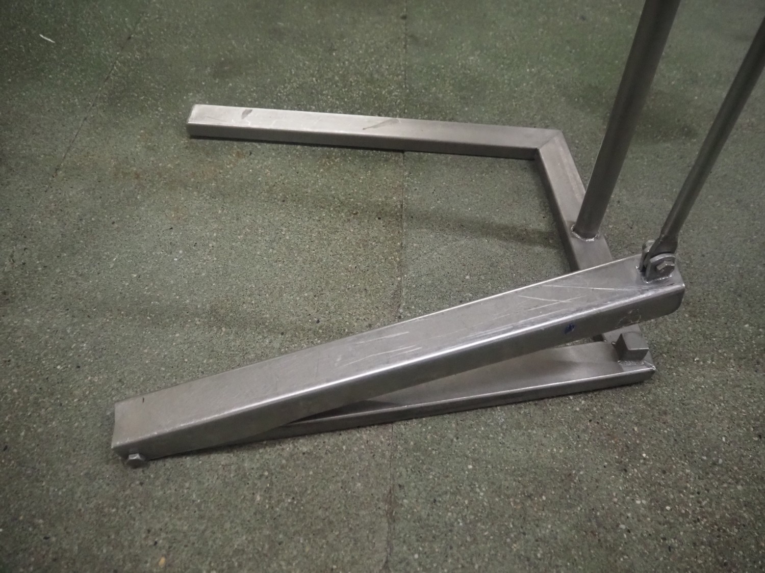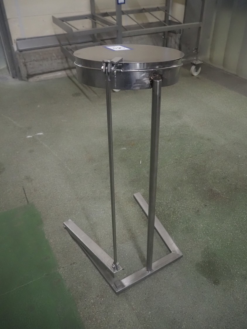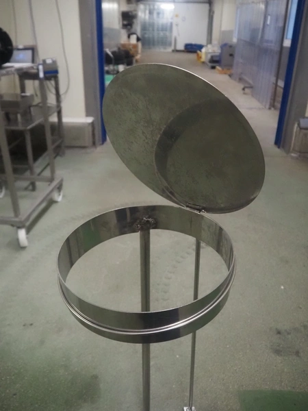S/s waste bag holder, foot control, dimensions: 500 mm x 470 mm x 940 mm.