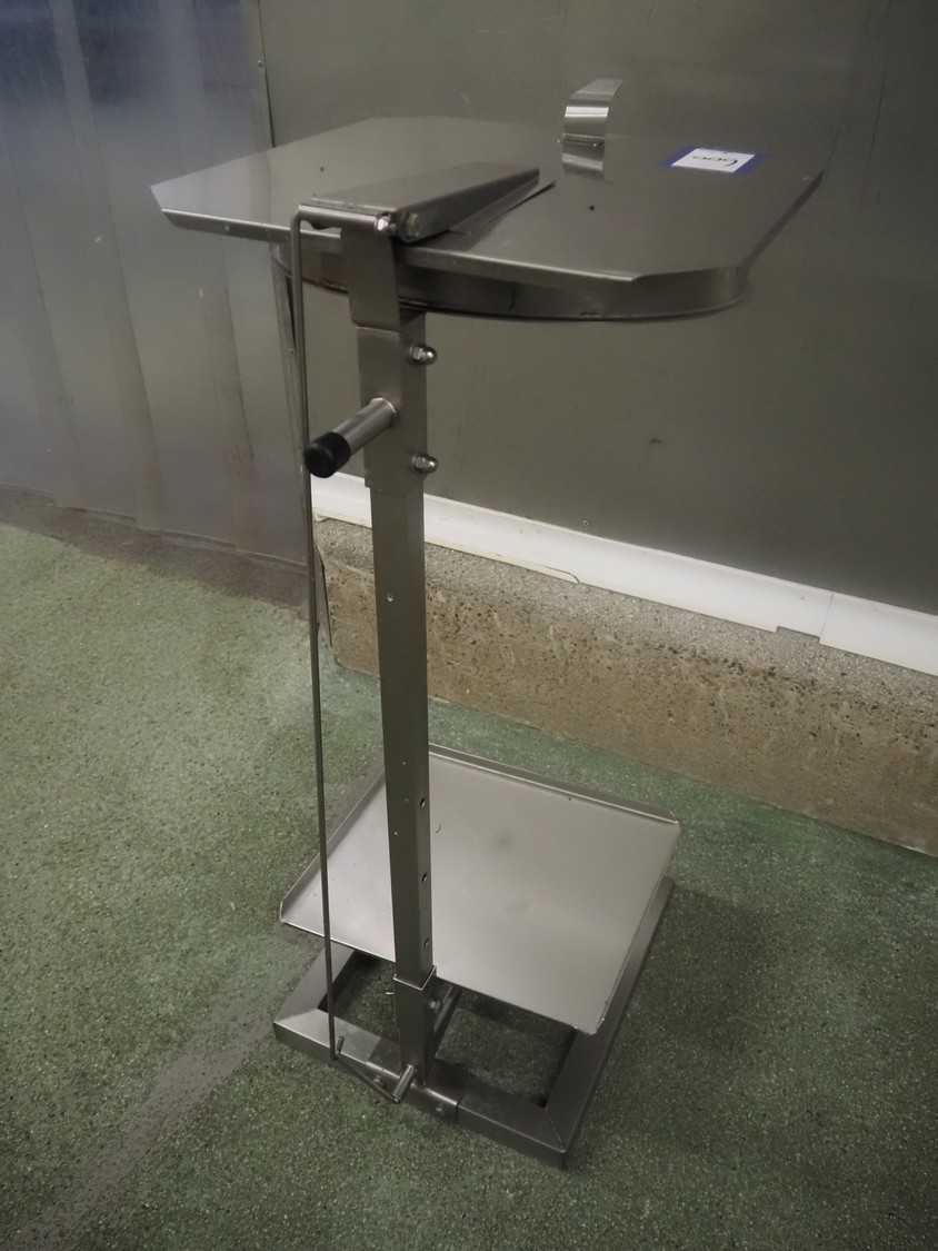 S/s waste bag holder, foot control, dimensions: 500 mm x 400 mm x 1000 mm.