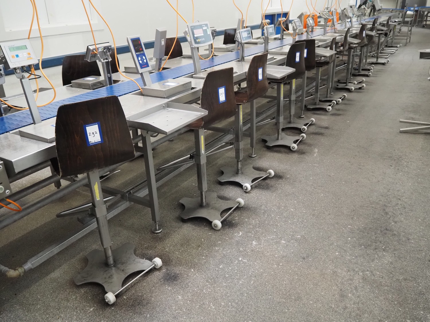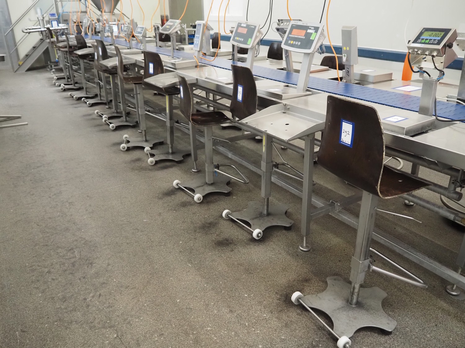 12 chairs on s/s frames, dimensions: (12x) 350 mm x 380 mm x 1100 mm.