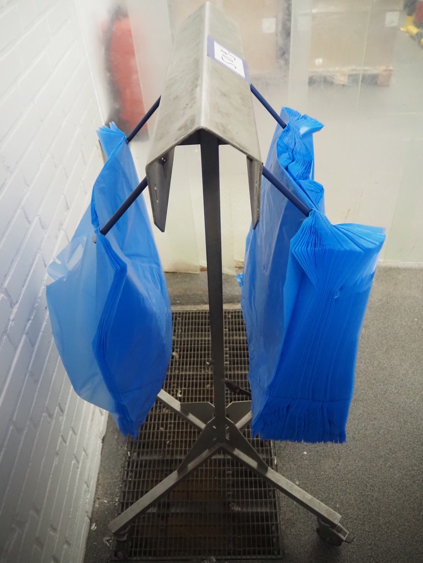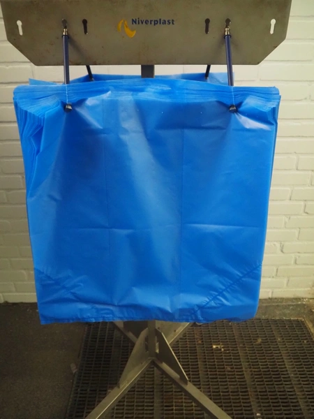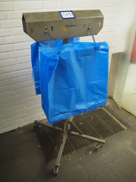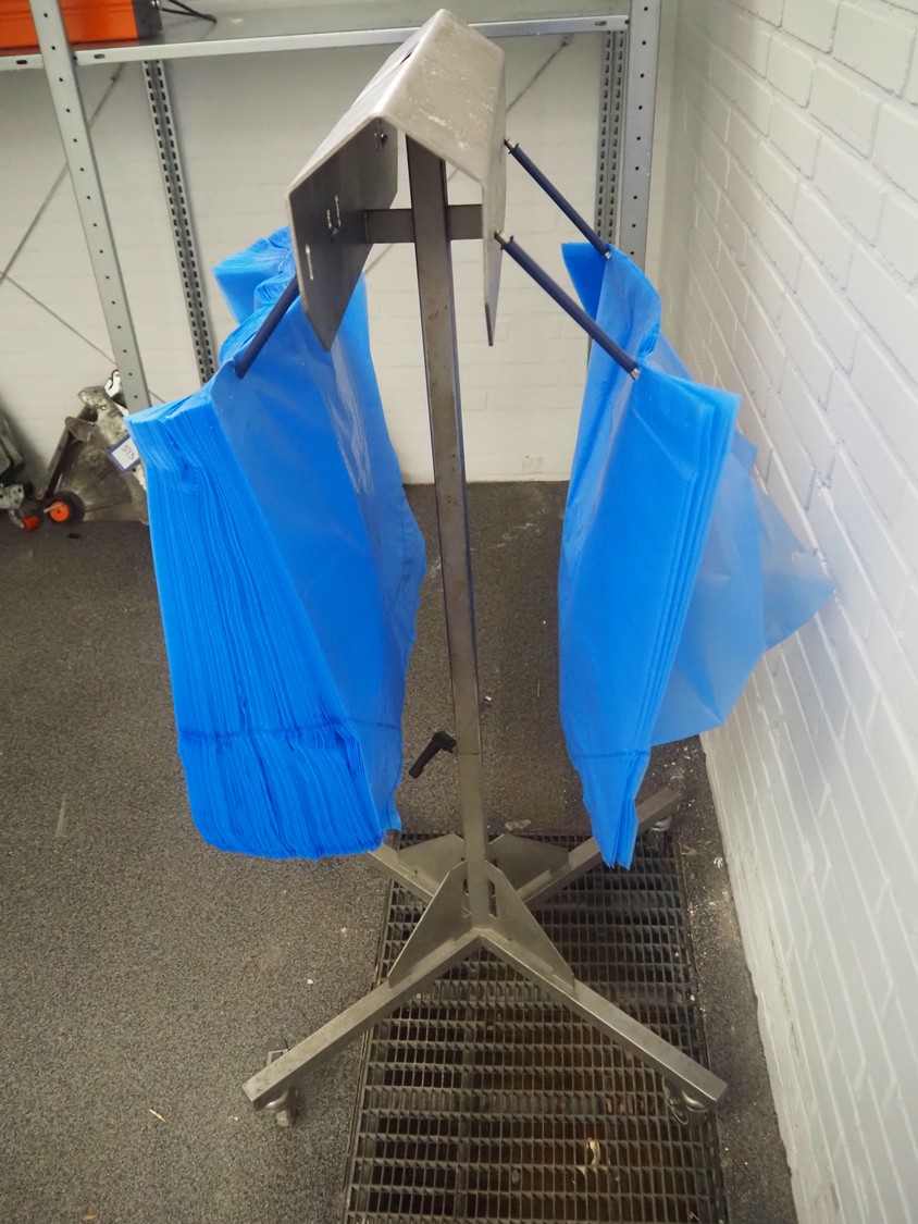 Niverplast mobile s/s bag holder, dimensions: 630 mm x 550 mm x 1260 mm.