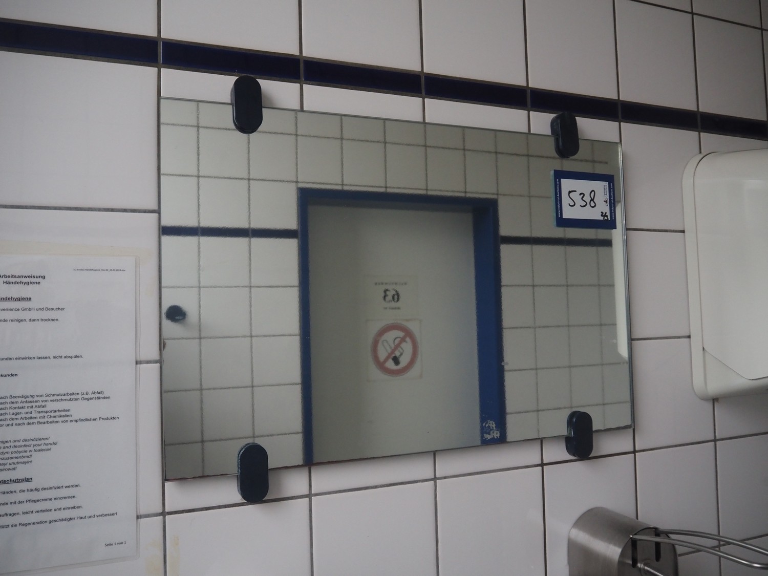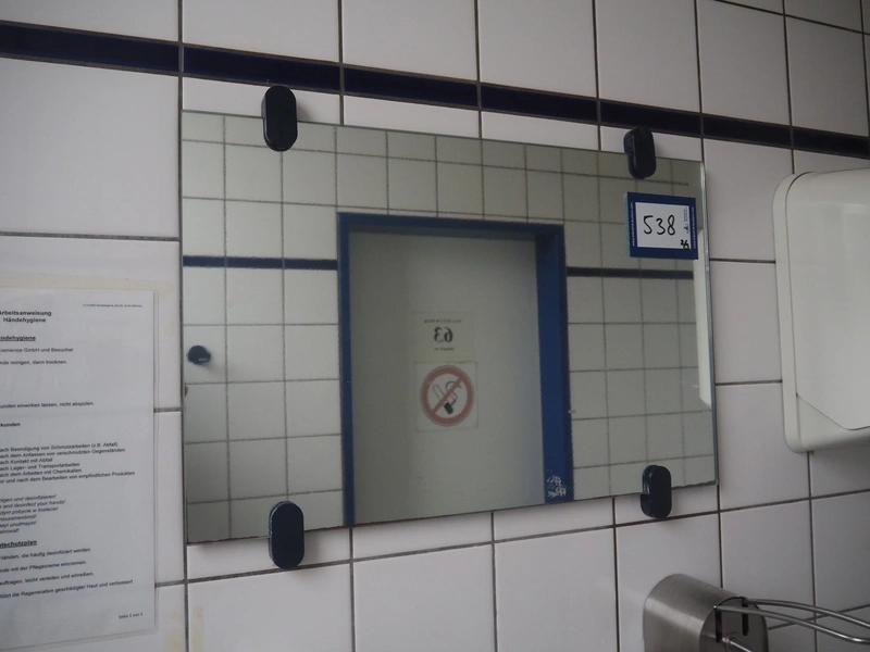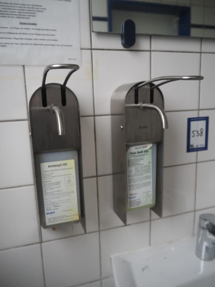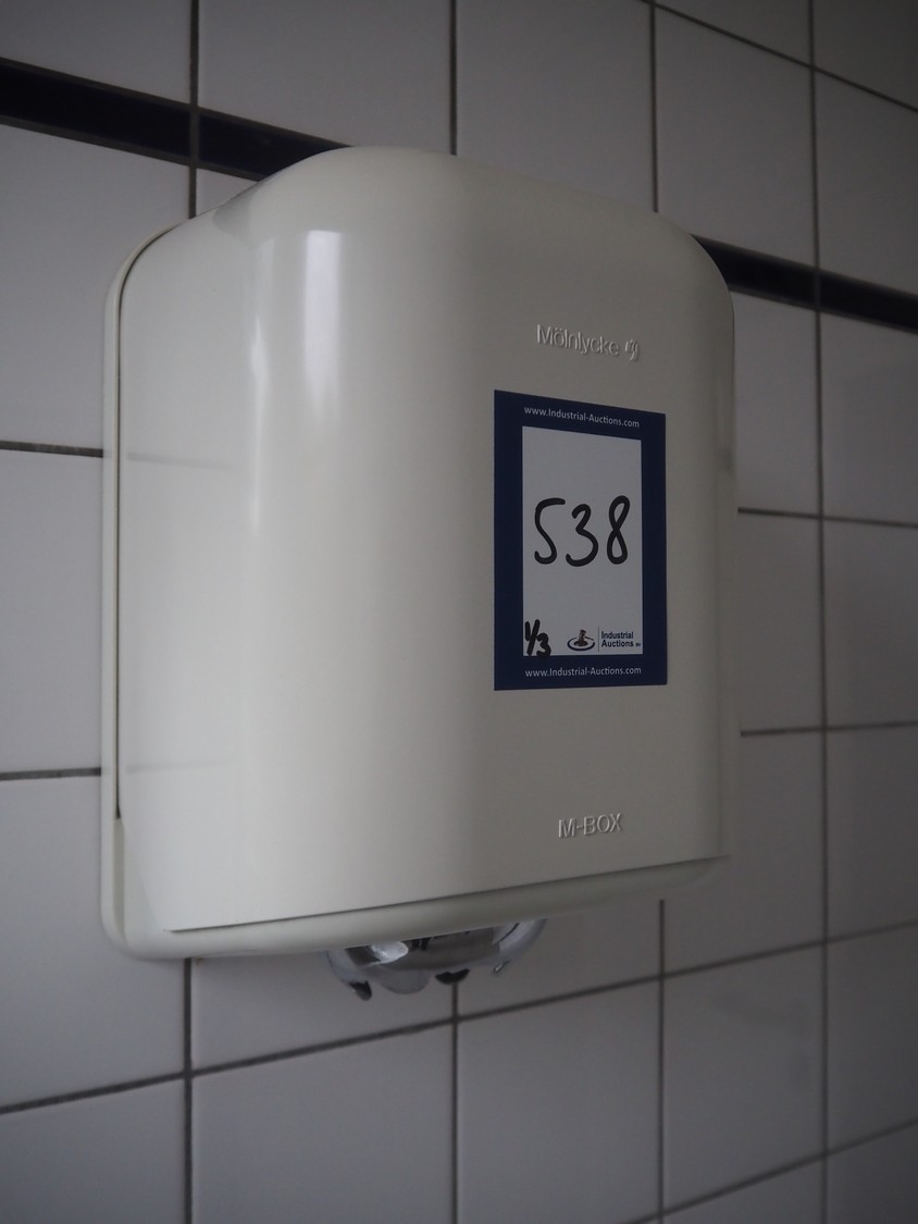 Hygiene equipment, consisting of:(1x) mirror, dimensions: 600 mm x 390 mm, 3 s/s soap dispensers, dimensions: (3x) 280 mm x 100 mm x 350 mm, (1x) paper dispenser, dimensions: 240 mm x 220 mm x 370 mm.