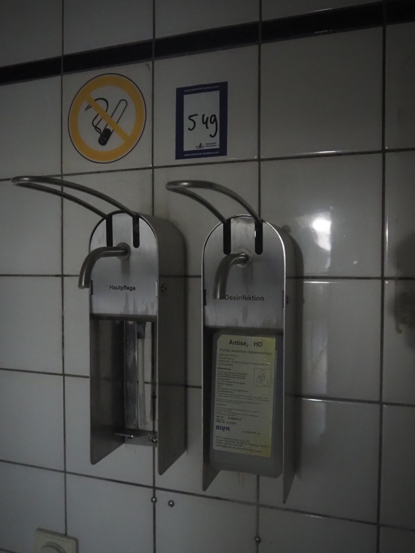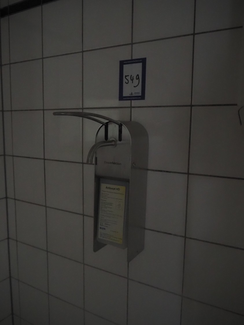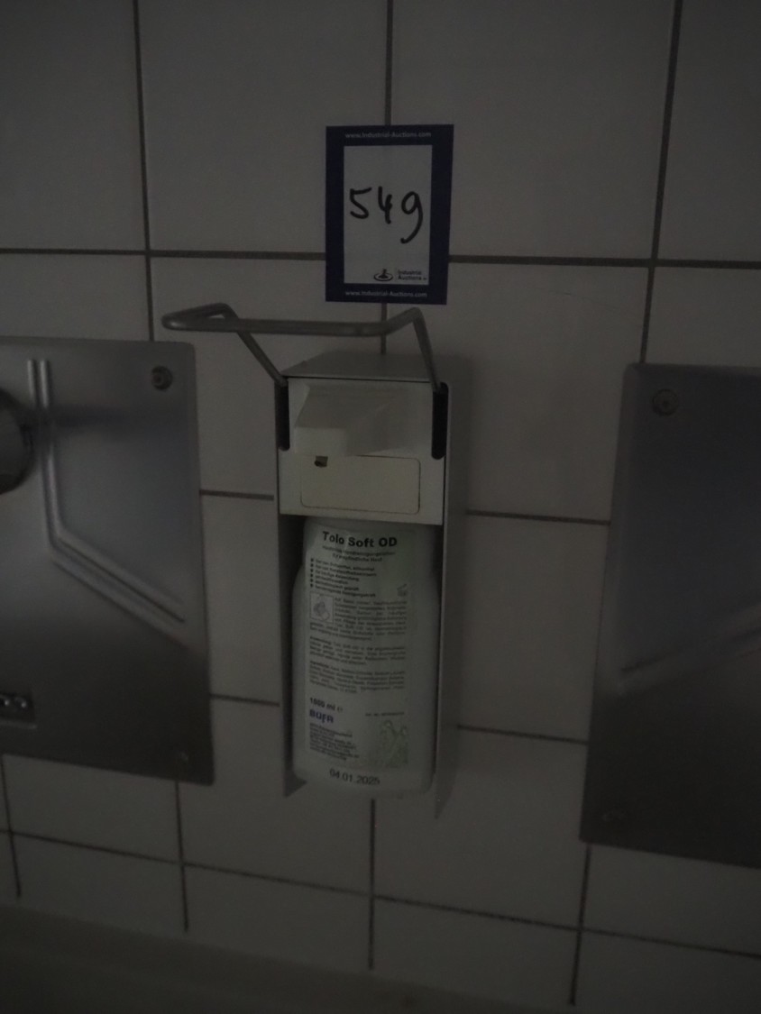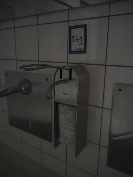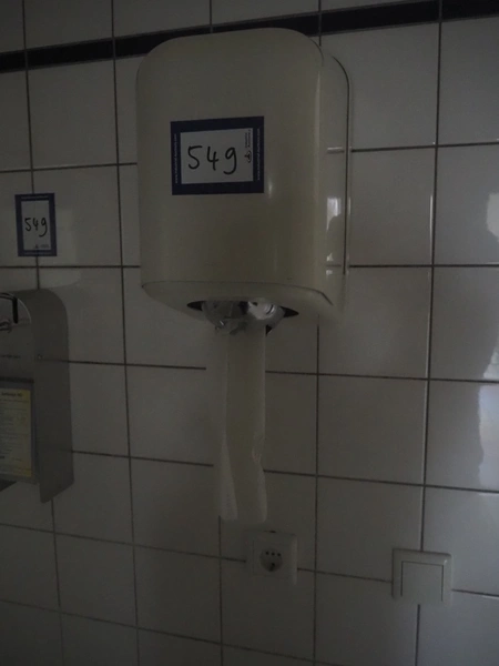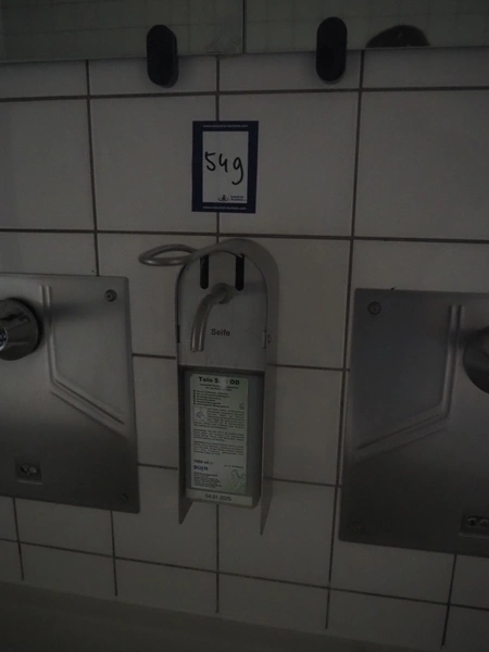 Hygiene equipment, consisting of: 3 mirrors, dimensions: (2x) 1200 mm x 390 mm, (1x) 600 mm x 390 mm, 6 soap dispenser, dimensions: (6x) 270 mm x 100 mm x 330 mm, 1 paper dispensers, dimensions: (1x) 240 mm x 220 mm x 350 mm, 1 plastic waste bag holder, dimensions: (1x) 380 mm x 350 mm x 750 mm.