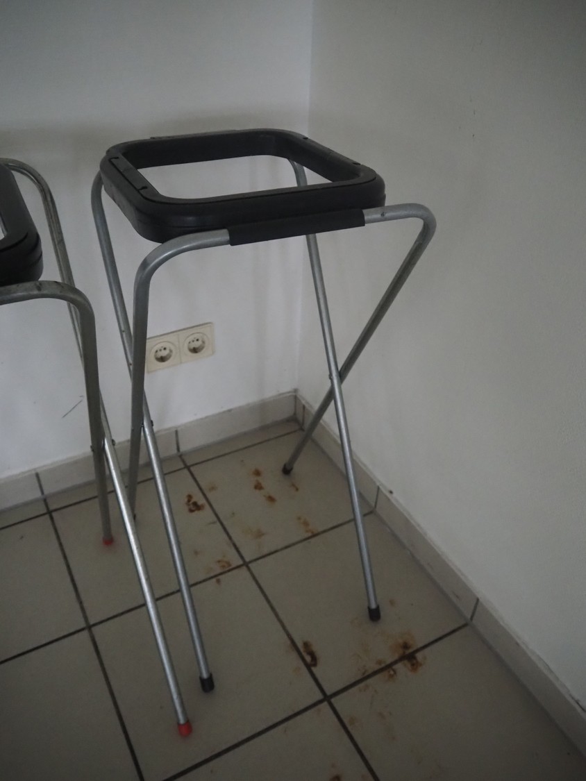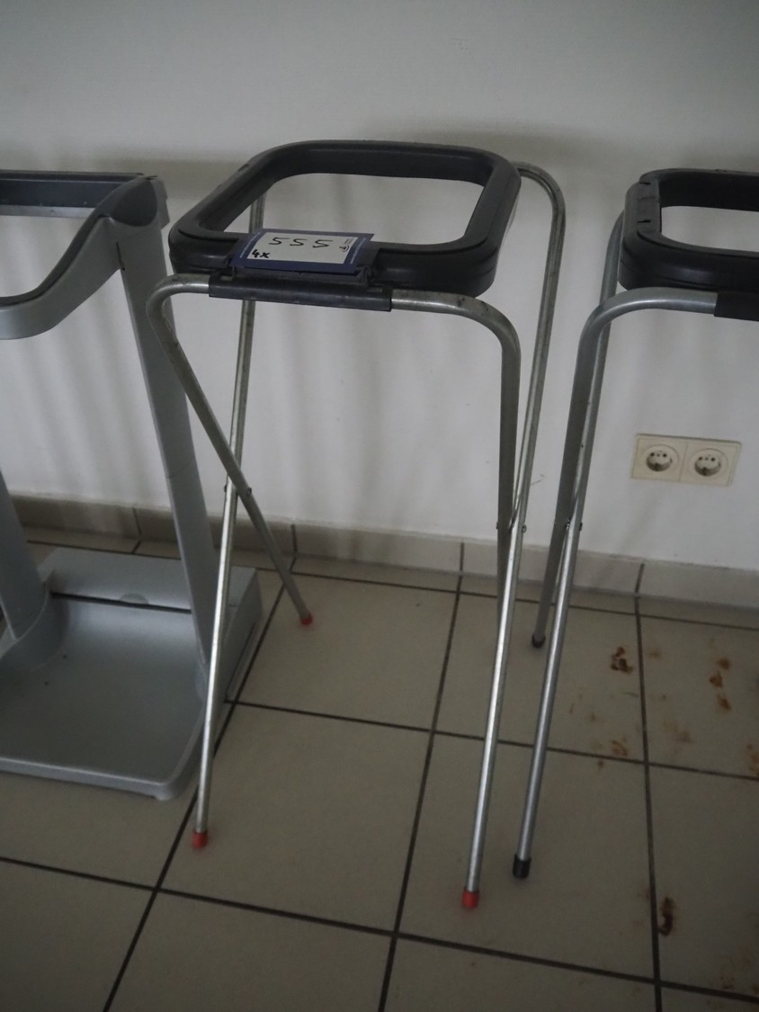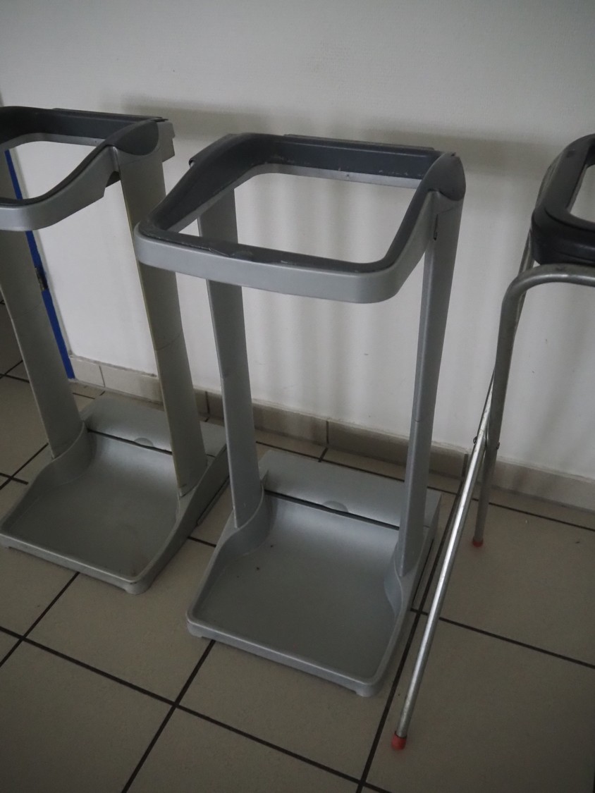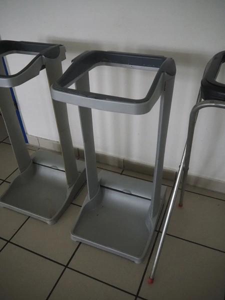 4 plastic waste bag holders, dimensions: (2x) 380 mm x 350 mm x 750 mm, (2x) 370 mm x 320 mm x 770 mm.