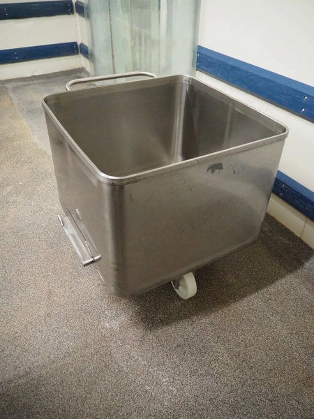 S/s meat bin, volume: 200 liter.