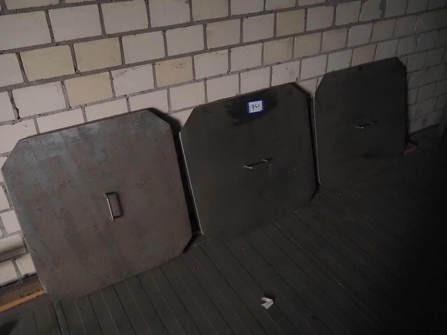 3 s/s lids for meat bins, dimensions: (3x) 700 mm x 750 mm.