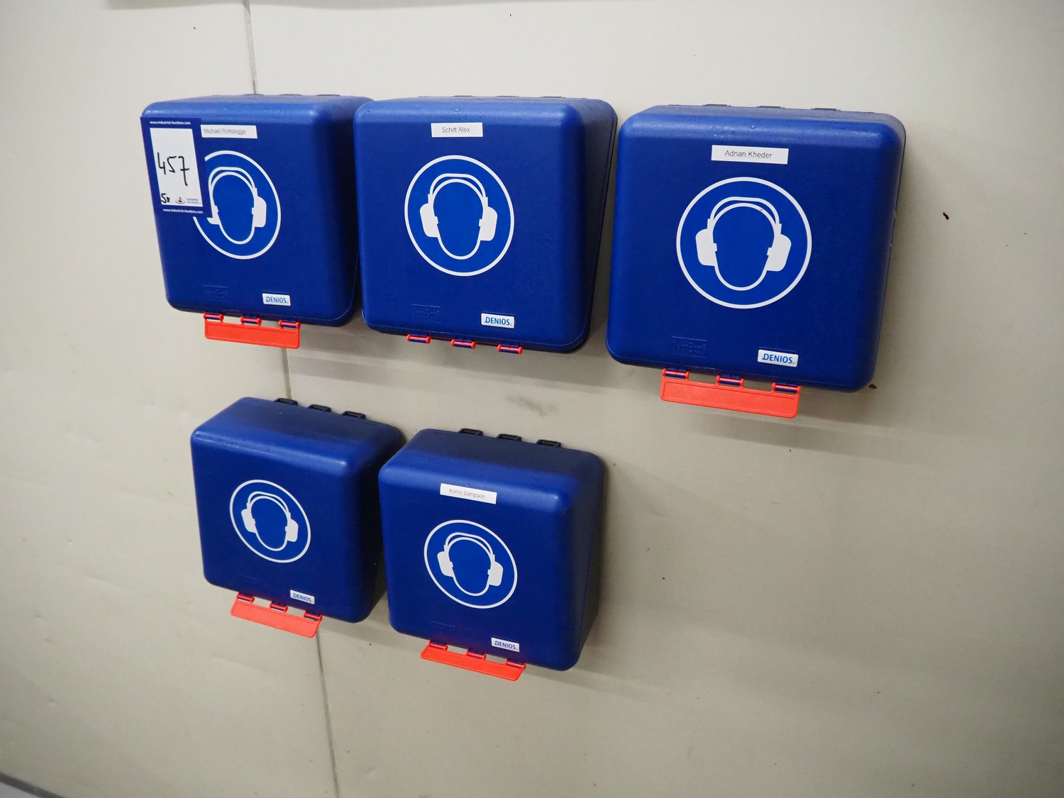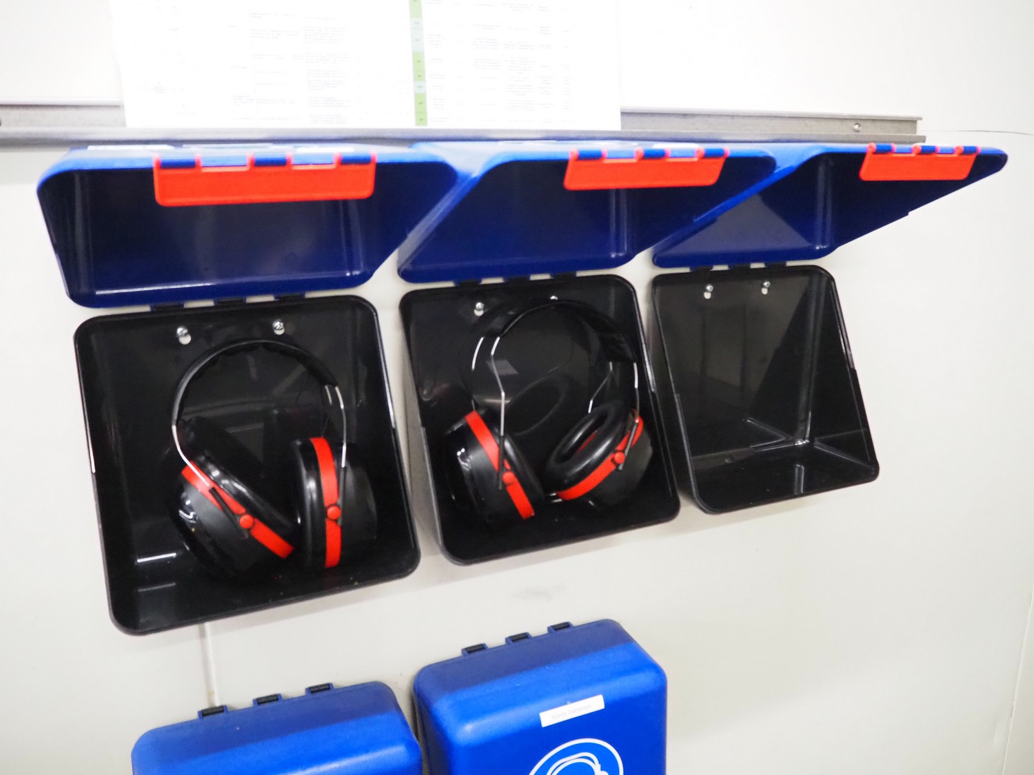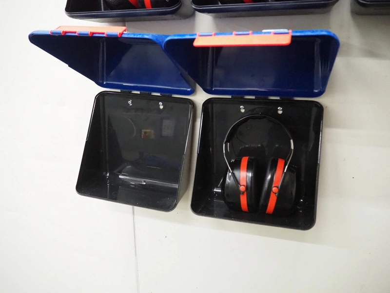5 plastic ear protection cabinet, dimensions: (5x) 240 mm x 120 mm x 230 mm. Including 3 ear protectors.