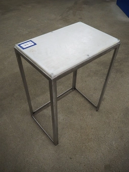 S/s table with plastic worktop, dimensions: 620 mm x 420 mm x 820 mm.€ 25,000 bids03/03/2026 14:40 -