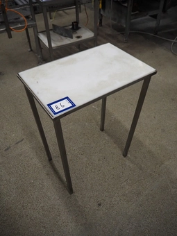 Table with plastic worktop, s/s frame, dimensions: 620 mm x 420 mm x 770 mm.€ 25,000 bids03/03/2026 14:40 -