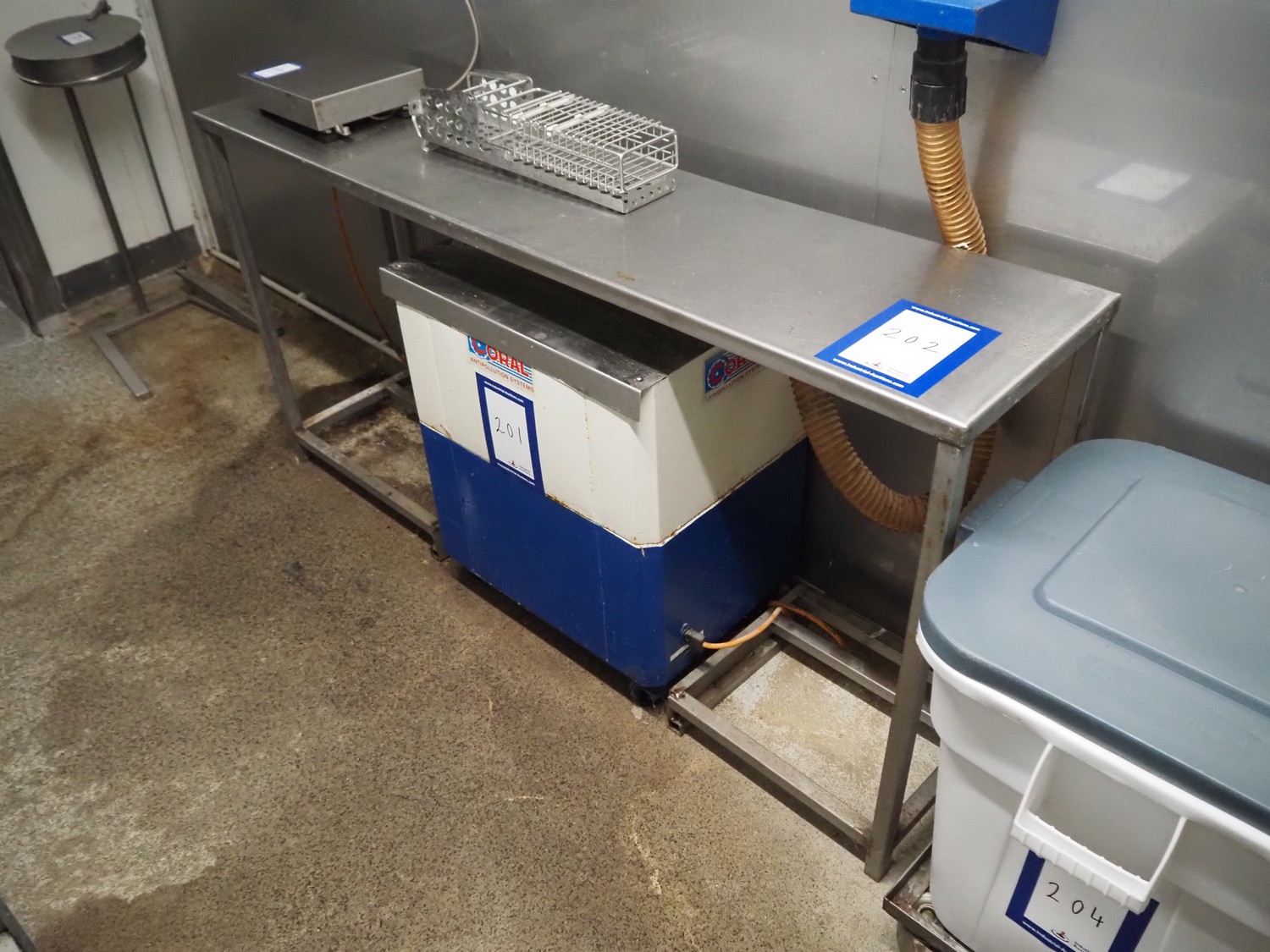 S/s table, dimensions: 1750 mm x 400 mm x 900 mm.