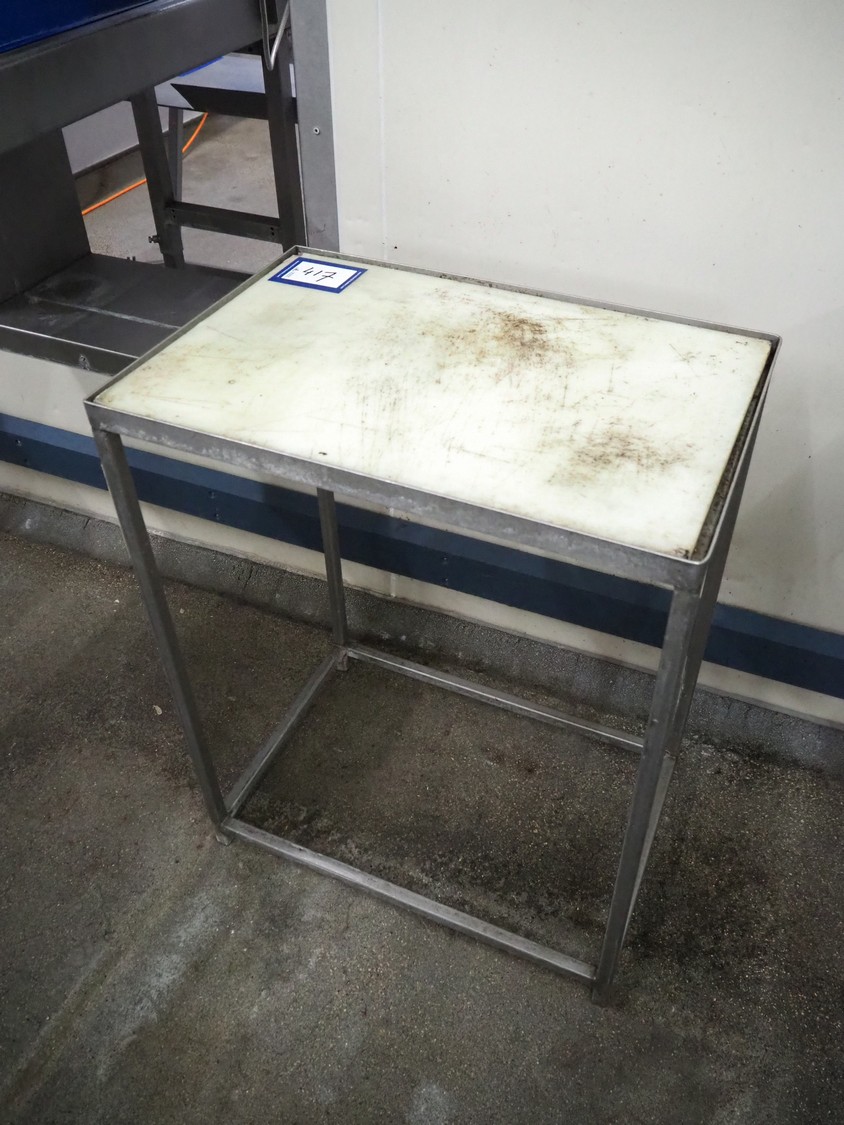 Table with plastic worktop, s/s frame, dimensions: 620 mm x 420 mm x 770 mm.