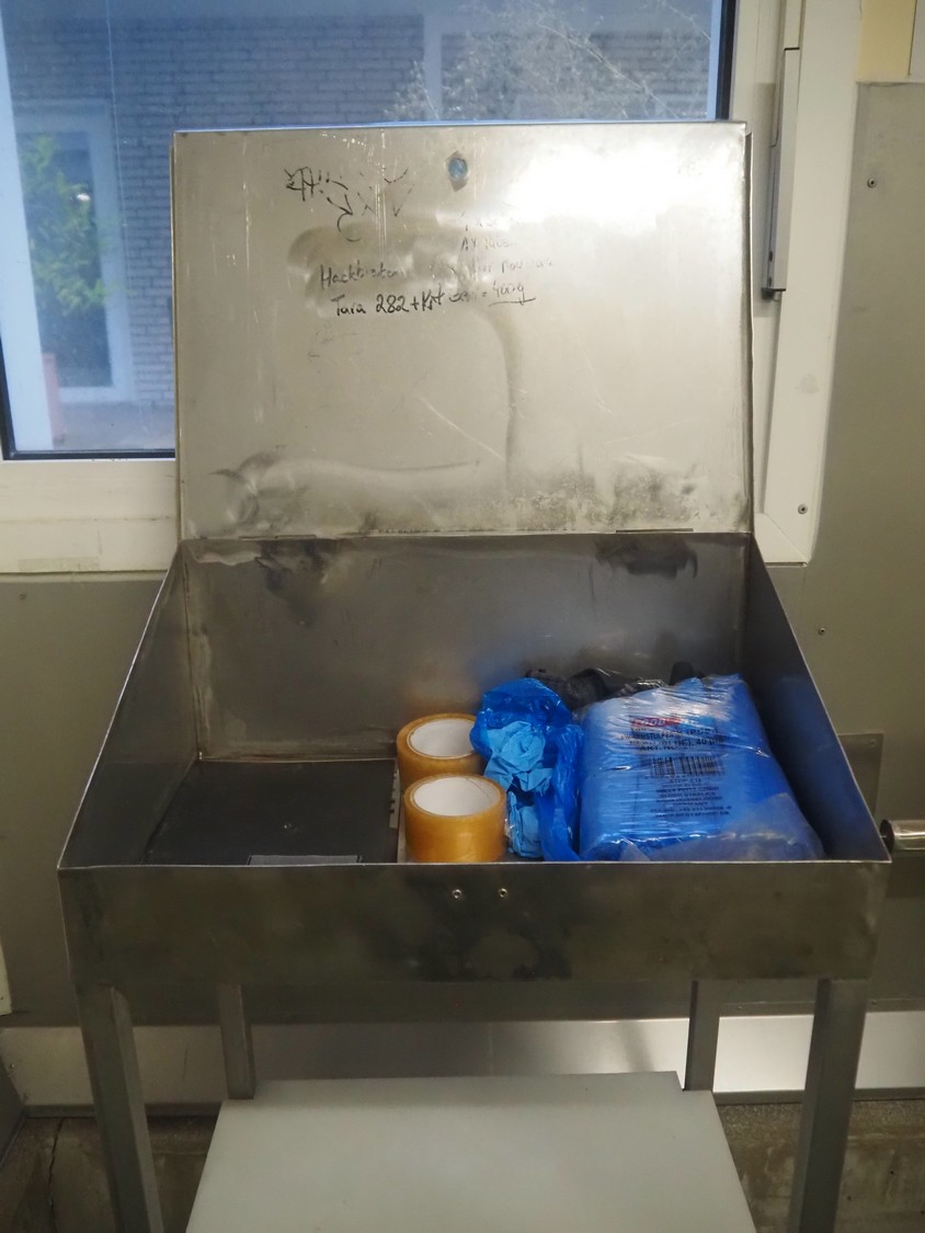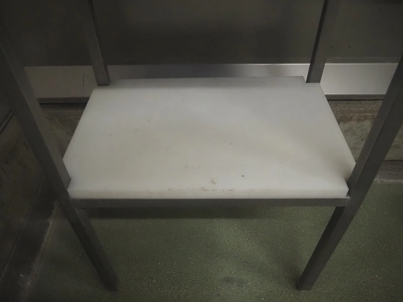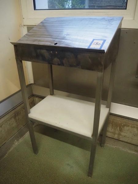 S/s writing desk, dimensions: 610 mm x 420 mm x 1180 mm.