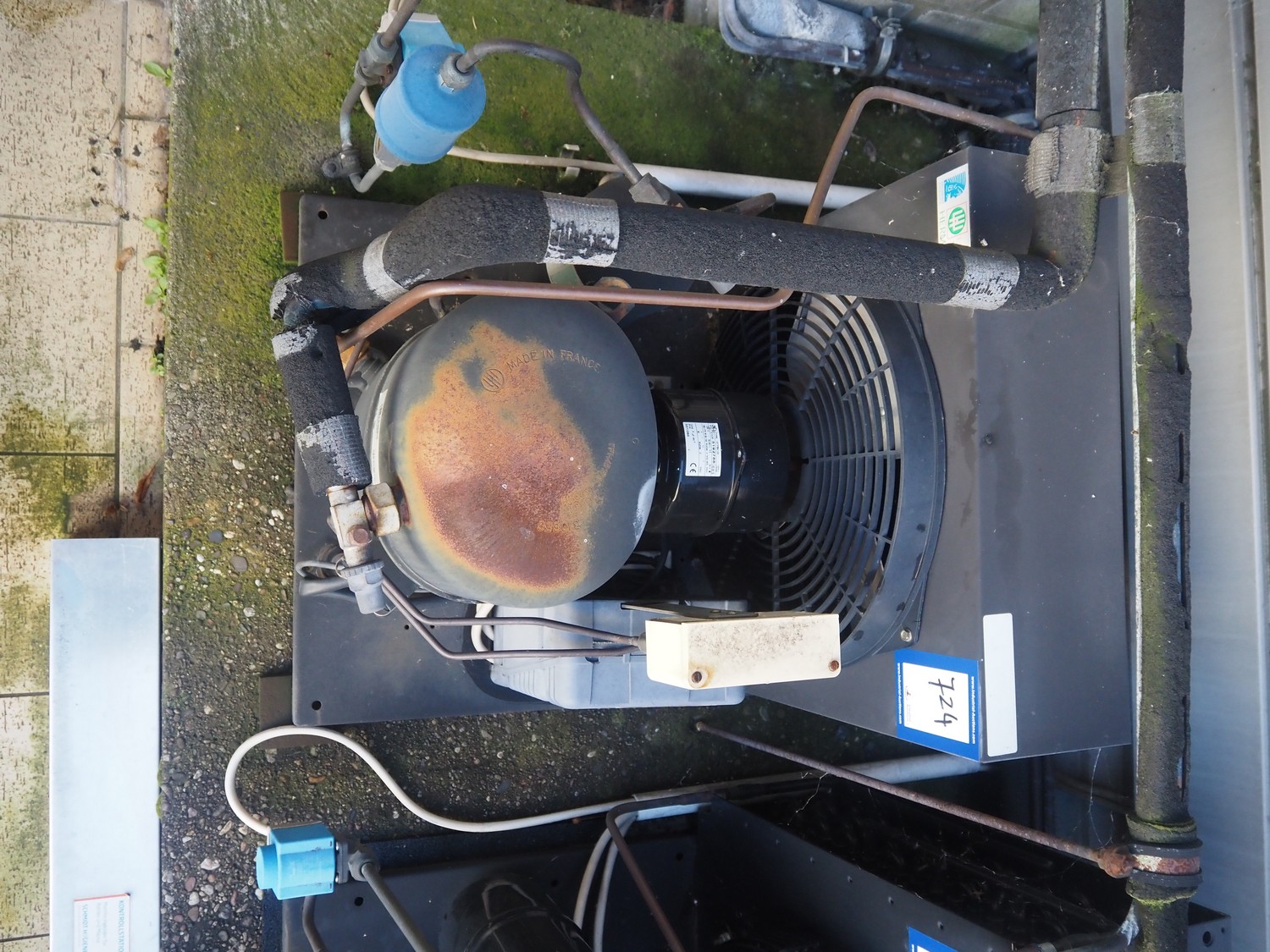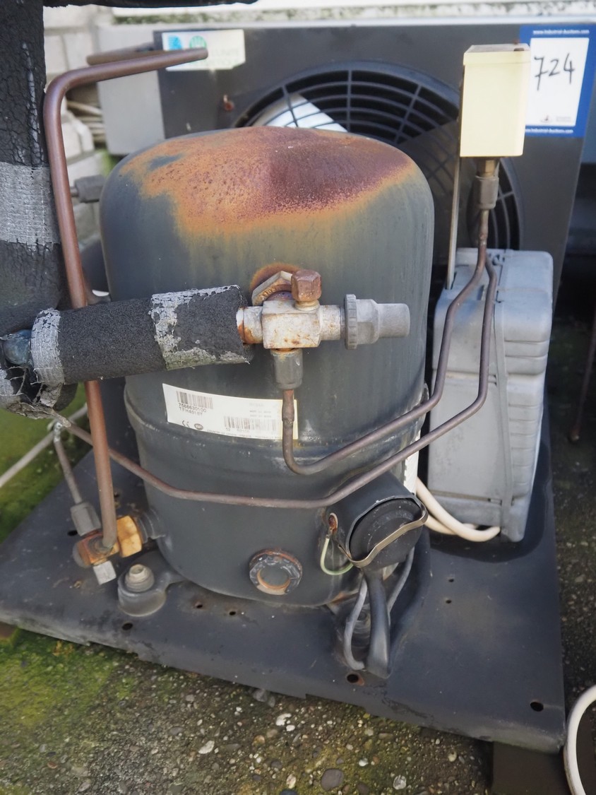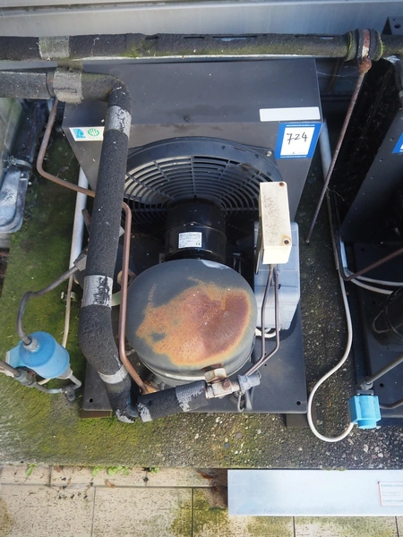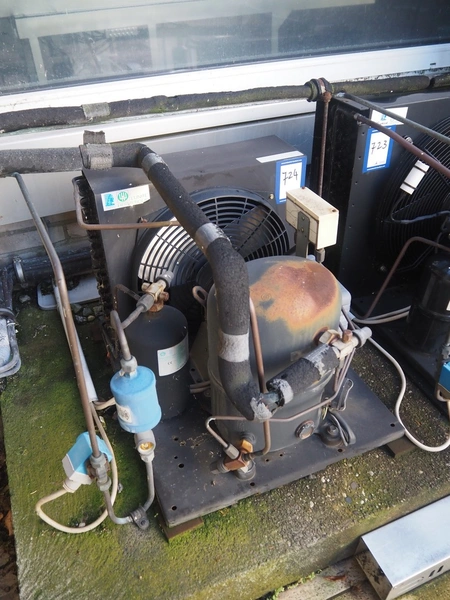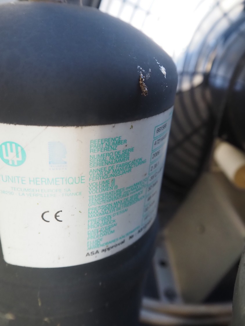 Tecumseh cooling compressor, model: TFH4518Y, serial number: 7566630100, 400/440 V, 3 Ph, 50/60 Hz, 3.3/3.4 A, refrigerant: R-134A, dimensions: 600 mm x 480 mm x 450 mm.
