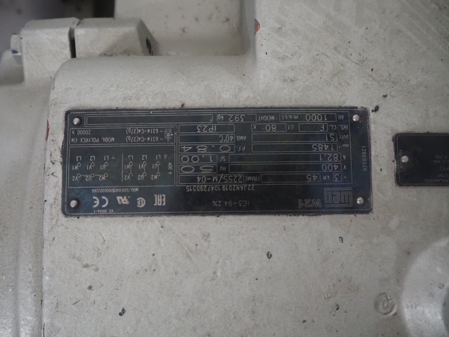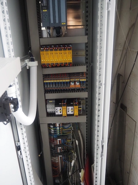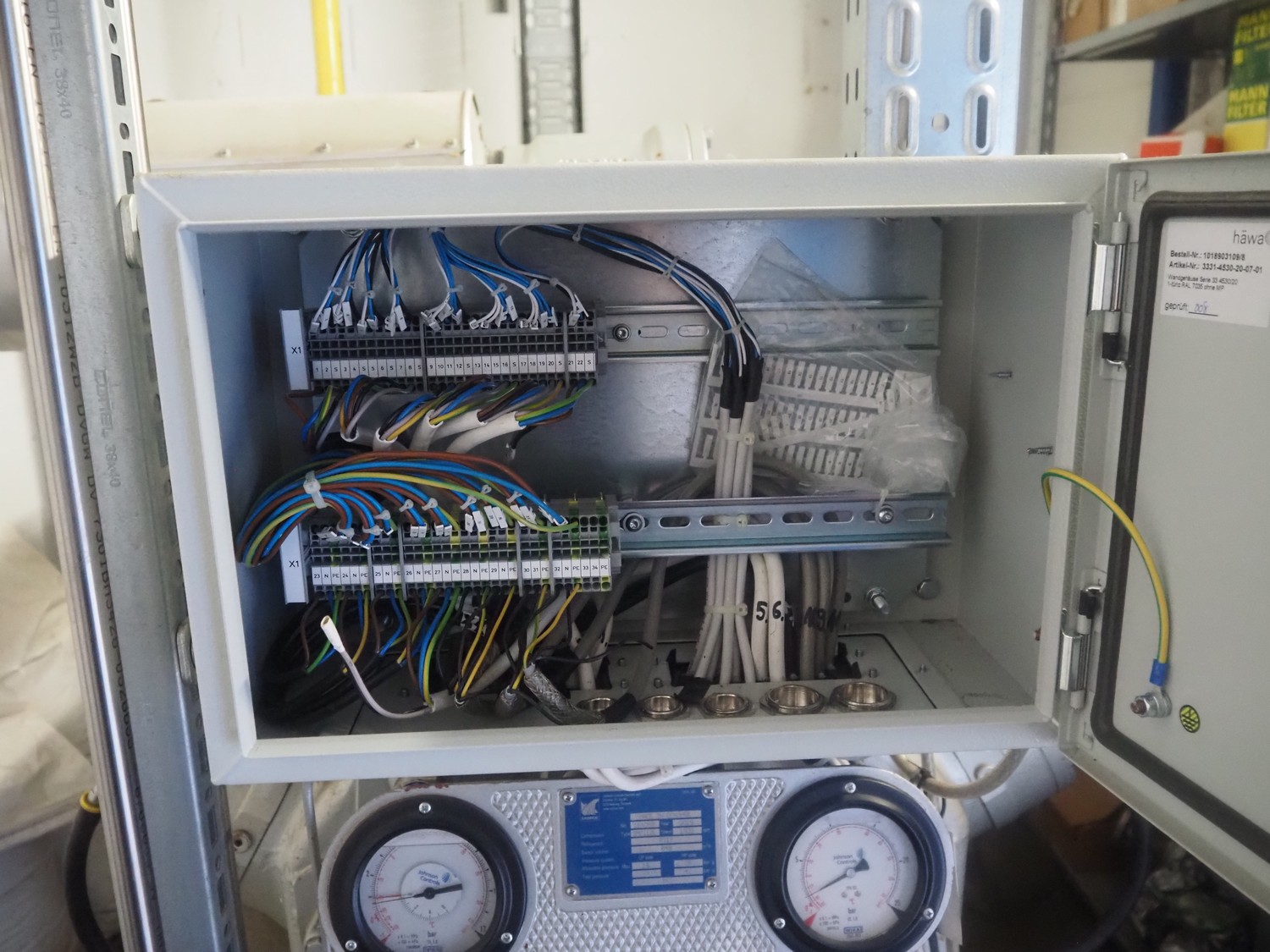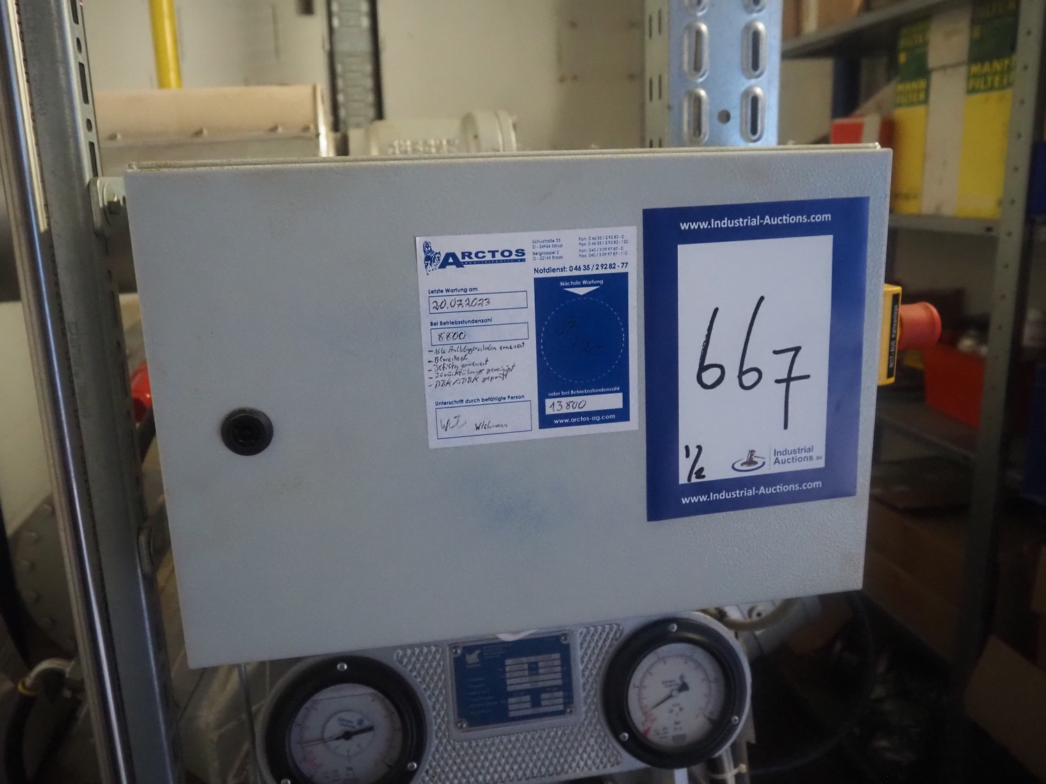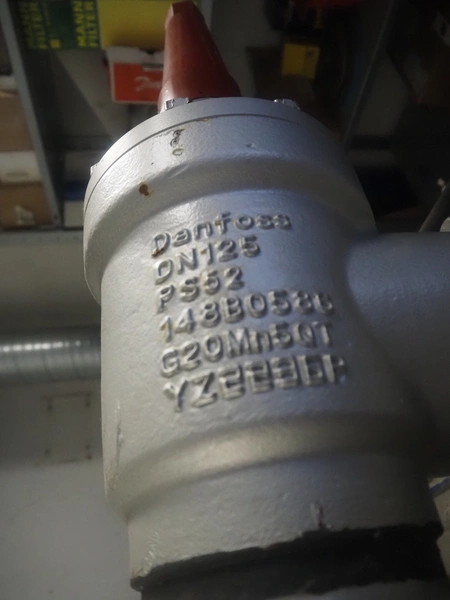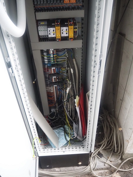 Sabroe reciprocating piston cooling compressor, type: SMC112L, number: 164069, year of construction: 2019, speed: 1500 m³ per hour, volume: 848 m³ per hour, refrigerant: R717, dimensions: 3350 mm x 1300 mm x 1520 mm. Switch cabinet, dimensions: 500 mm x 410 mm x 2180 mm.