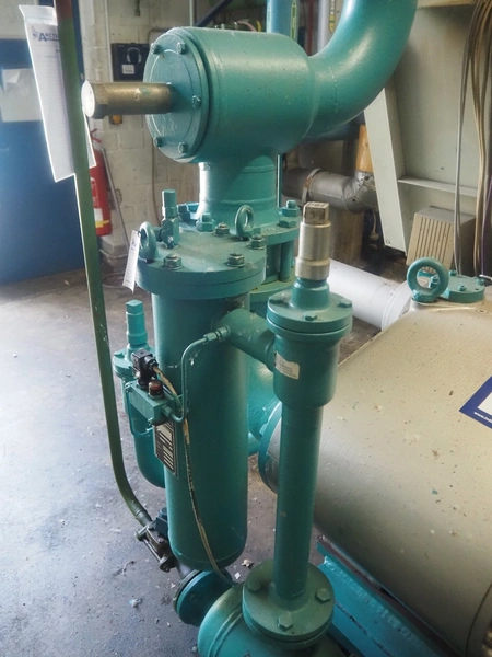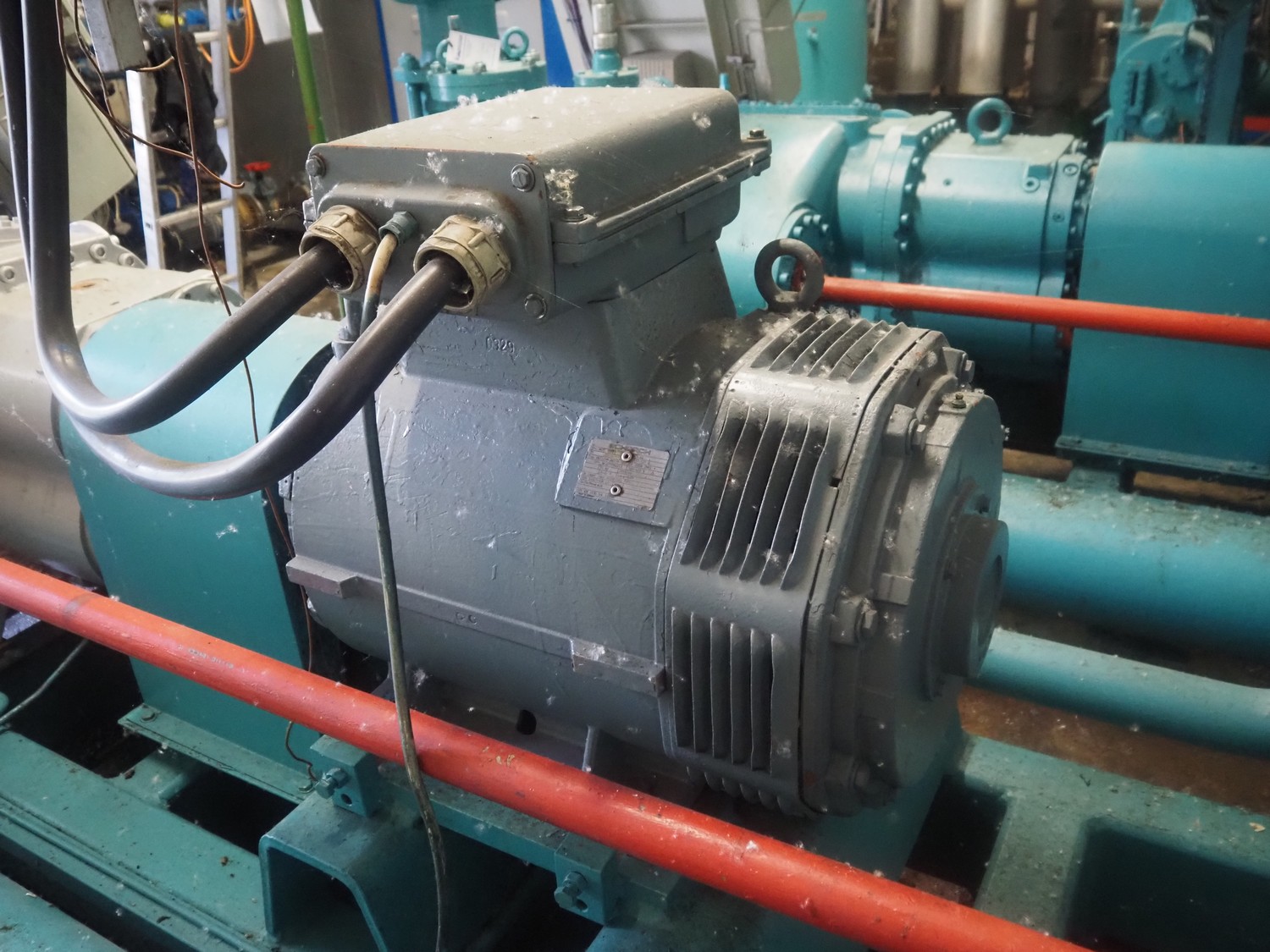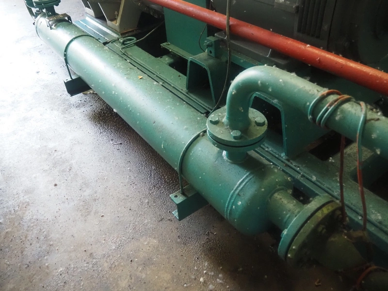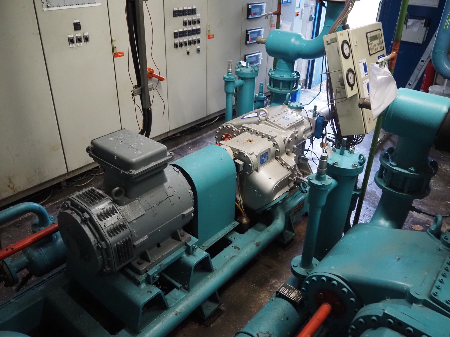 Sabroe screw cooling compressor, type: SAB 83, number: 129957, year of construction: 2004, volume: 1603 m³ per hour, refrigerant: R717 / NH3, nominal speed: 3600 U/min, dimensions: 3900 mm x 1250 mm x 2150 mm.