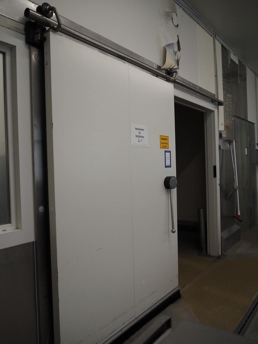 EMS refrigerated sliding door, thickness door: 80 mm, dimensions door: 1200 mm x 2580 mm, length rails: 3850 mm.