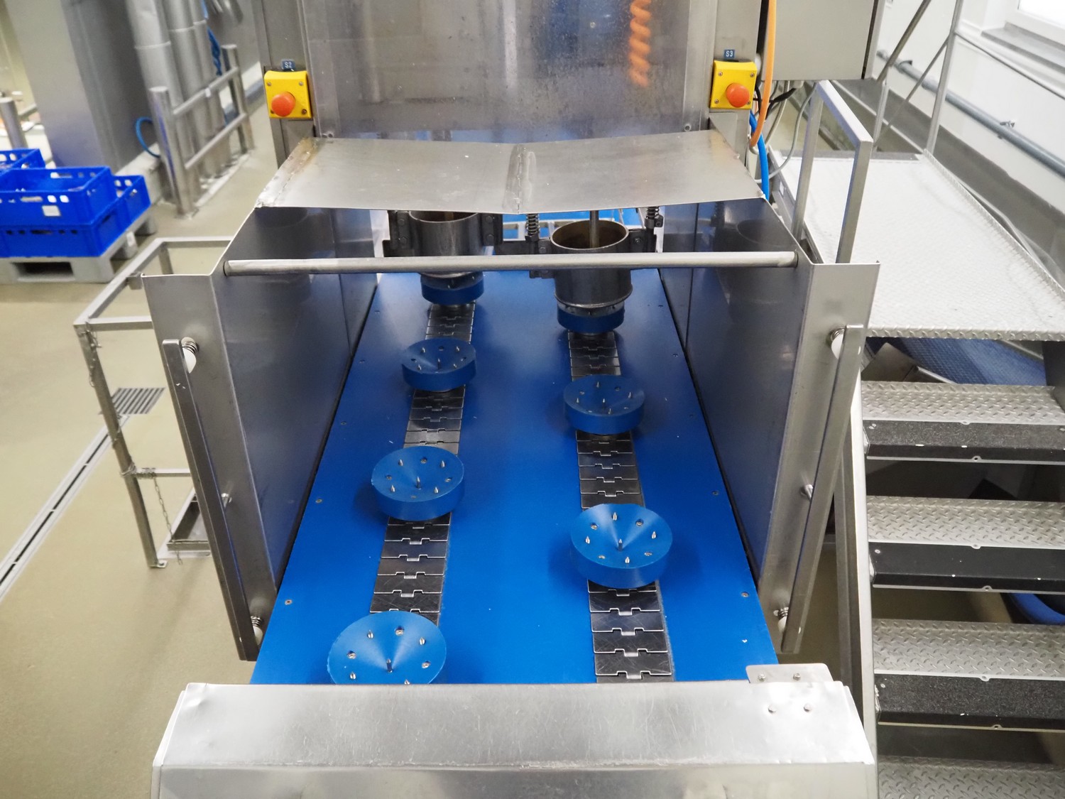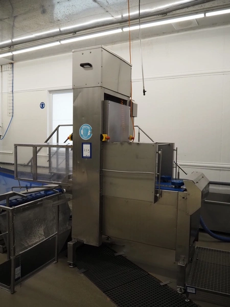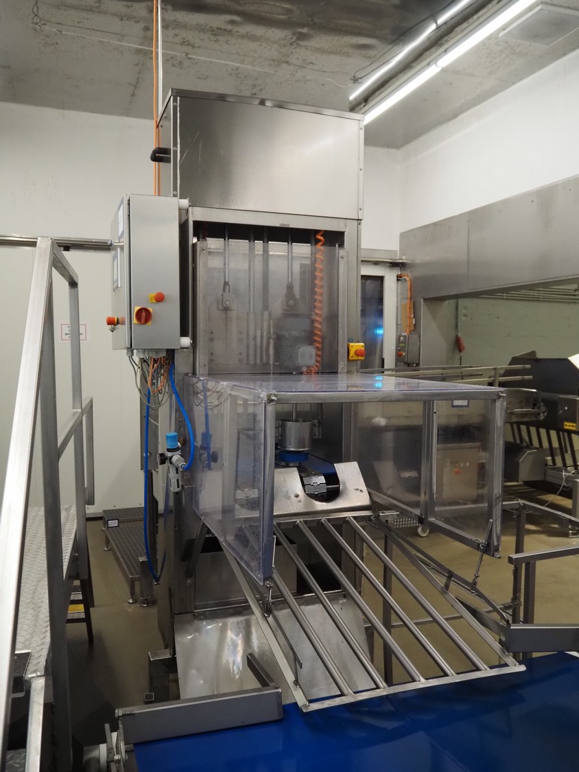Cabbage corer, diameter input: 150 mm, s/s belt, belt width: (2x) 100 mm, s/s outfeed slide, total dimensions: 2950 mm x 1150 mm x 2810 mm.