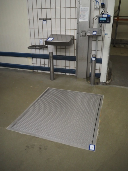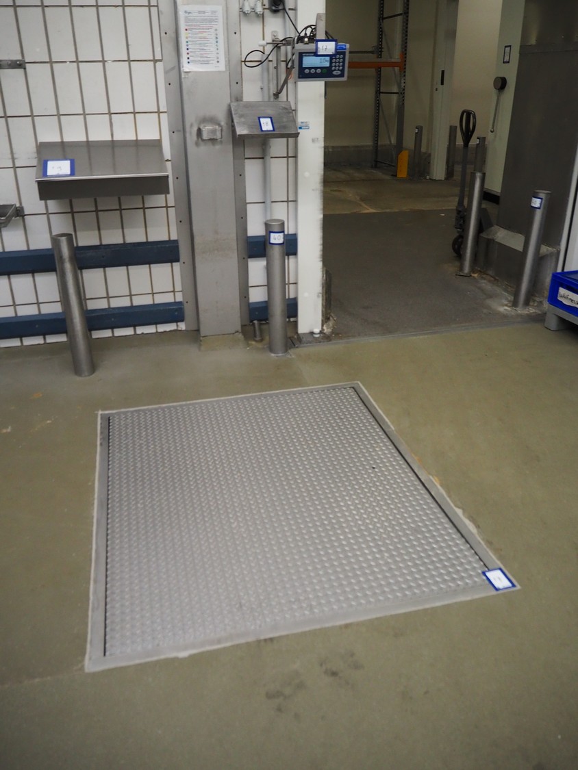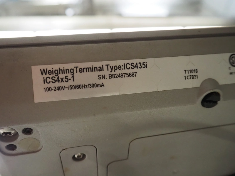 Mettler Toledo GmbH floor weighing scale with indicator, type indicator: ICS435i, serial number: B824975687, 100-240 V, 50/60 Hz, 300 mA, dimensions scale: 1500 mm x 1250 mm, dimensions indicator: 250 mm x 80 mm x 150 mm. S/s outer frame of floor weighing scale is not included.