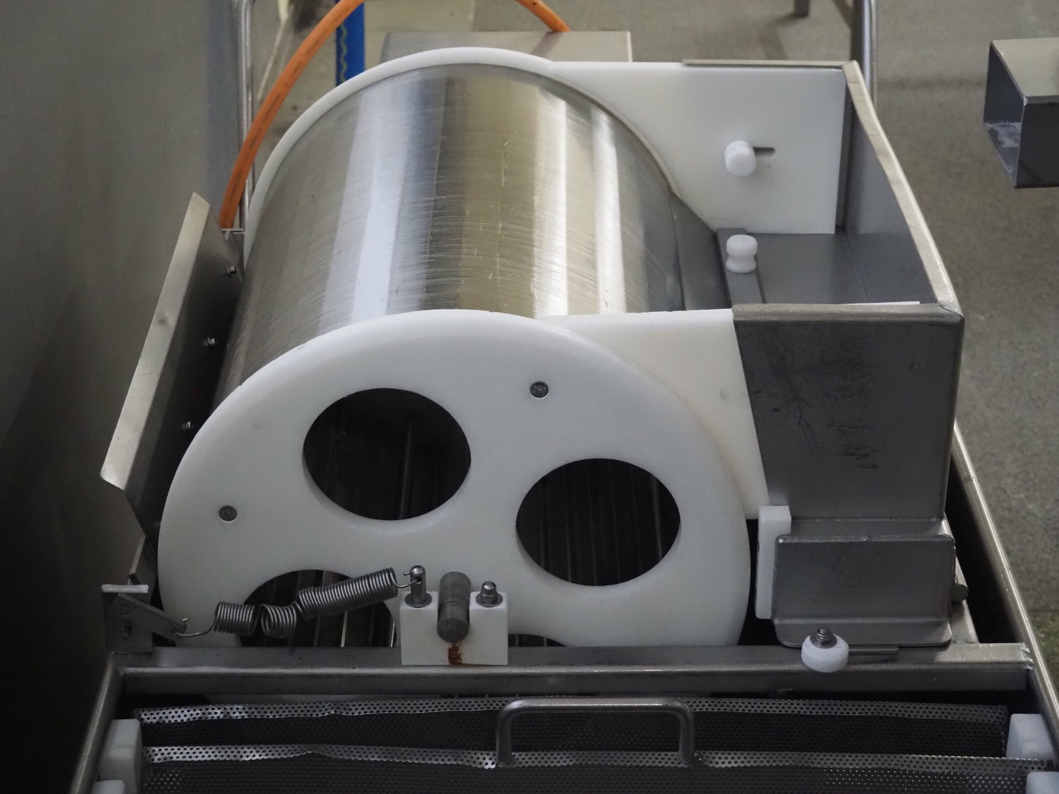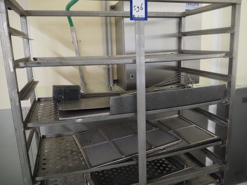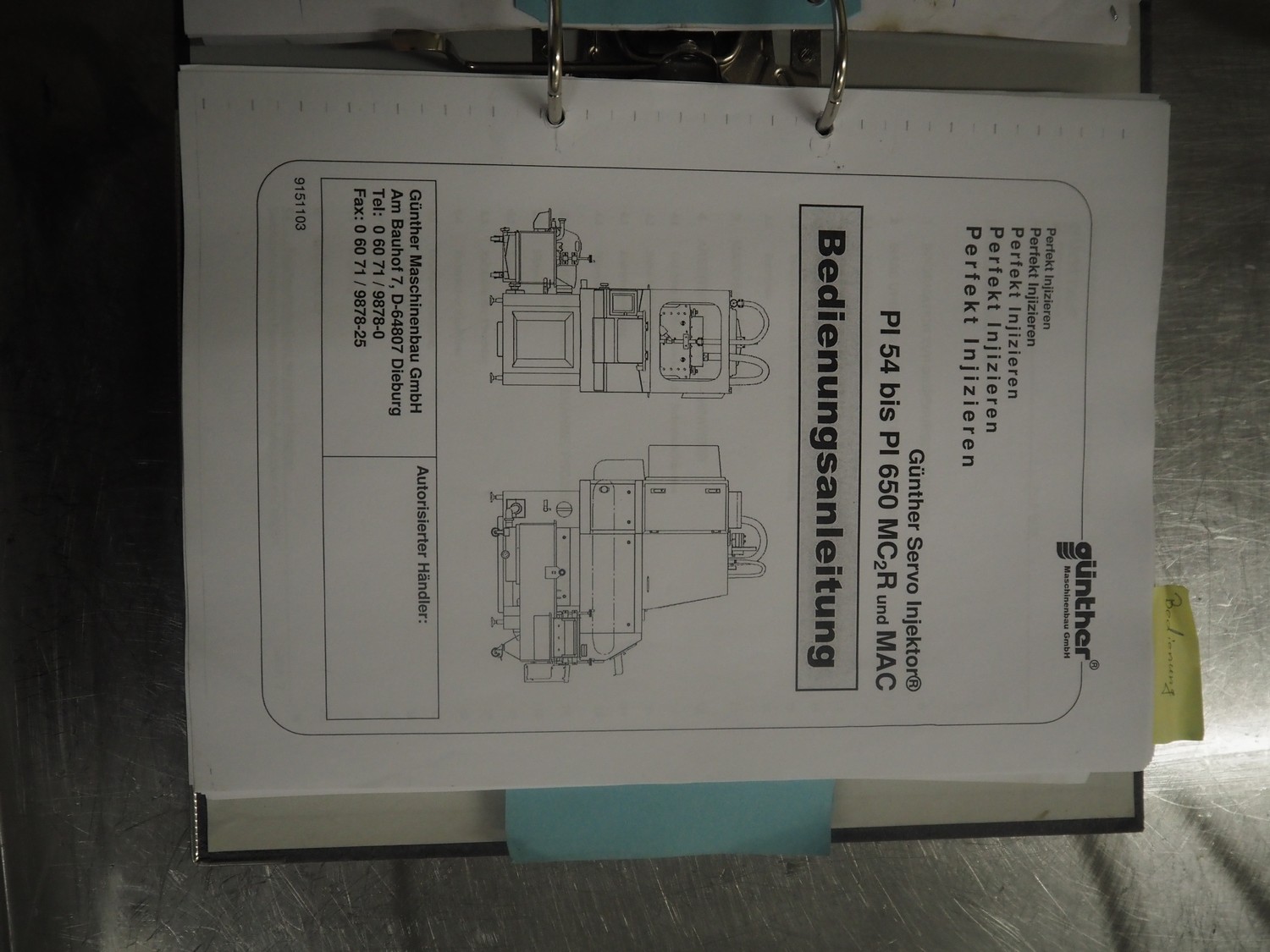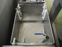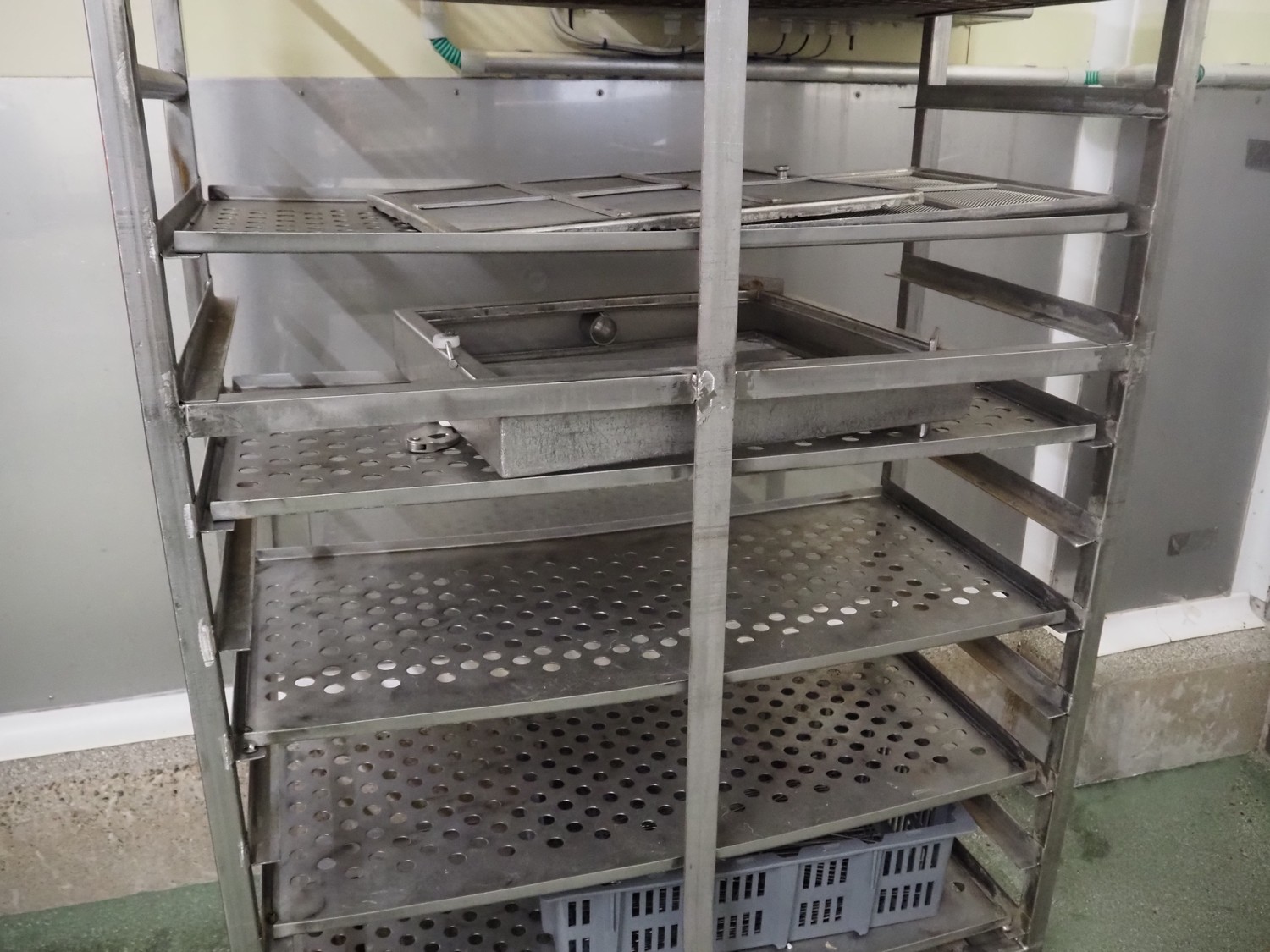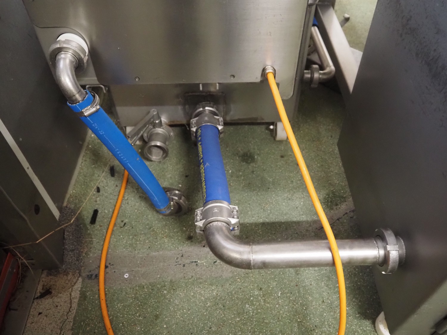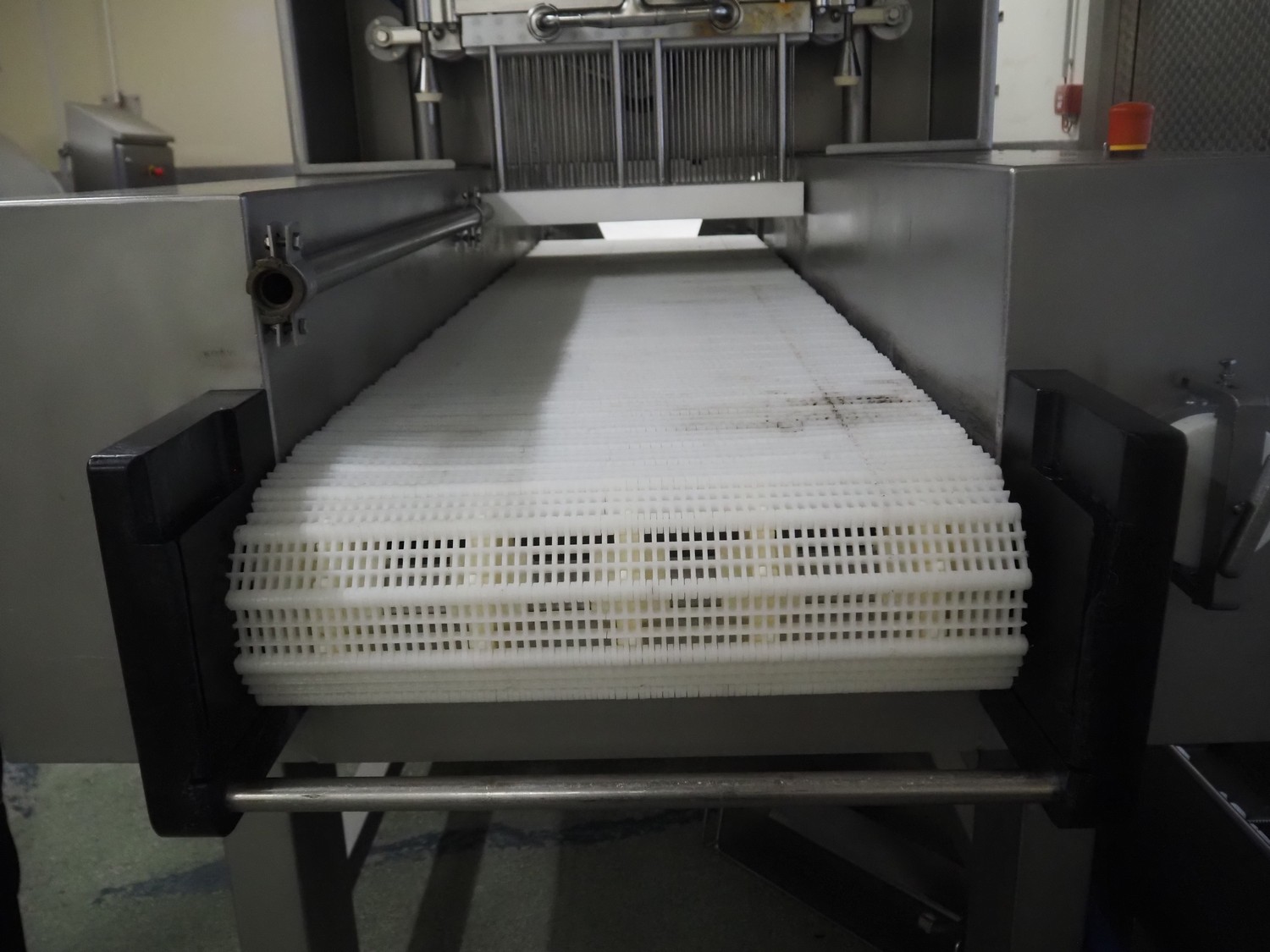 Günther Maschinenbau GmbH injector, type: PI 100, machine number: 23492, 380 V, 32 A, 100 needles, plastic mesh belt, belt width: 580 mm, clearance: 600 mm x 210 mm, total dimensions: 2450 mm x 1350 mm x 2200 mm. Including Günther Maschinenbau GmbH filter tub, type: GRF 400R, machine number: 23 492, 380 V, dimensions filter tub: 2100 mm x 700 mm x 770 mm and s/s trolley with parts, dimensions trolley: 1040 mm x 550 mm x 1930 mm.