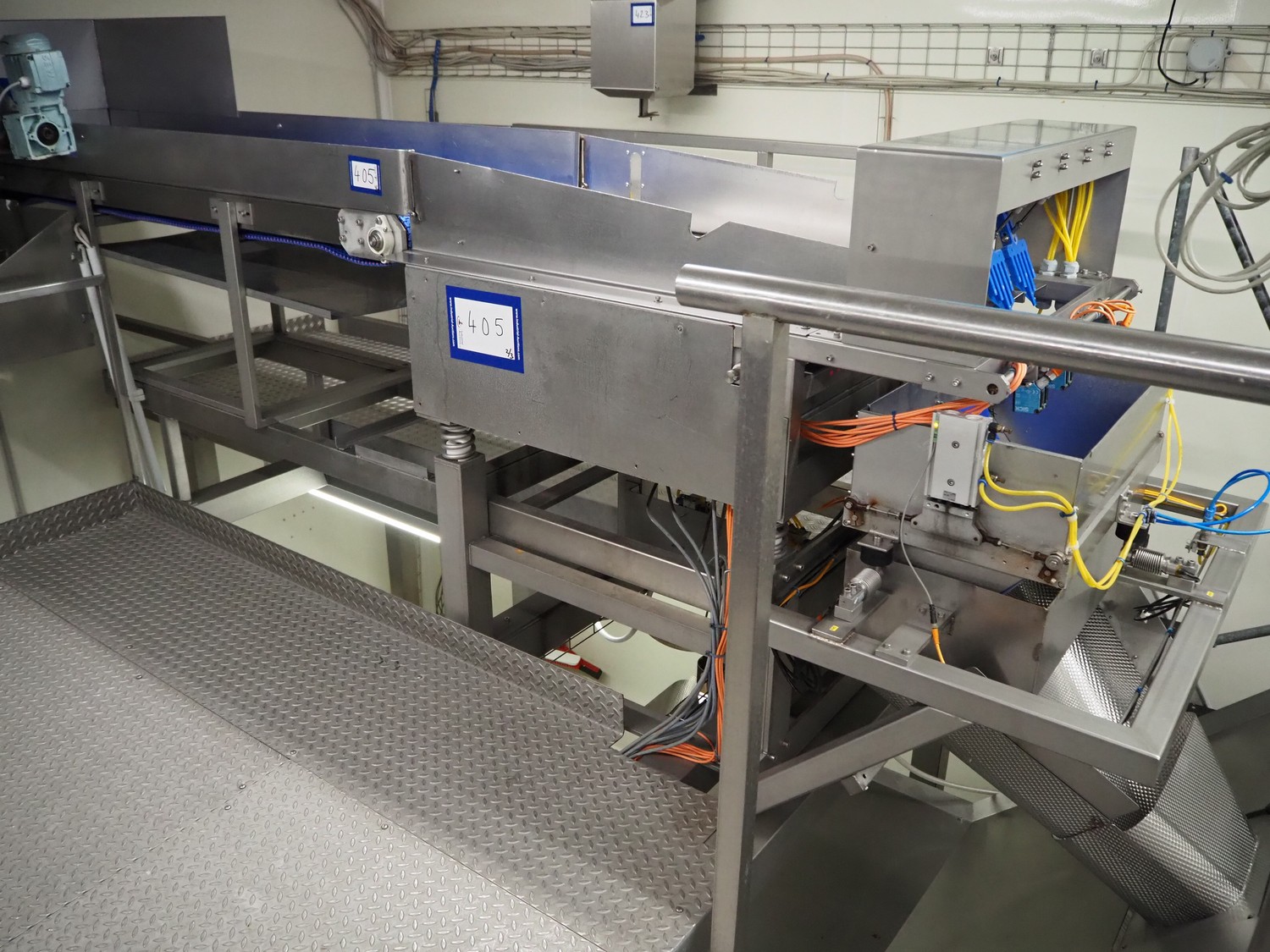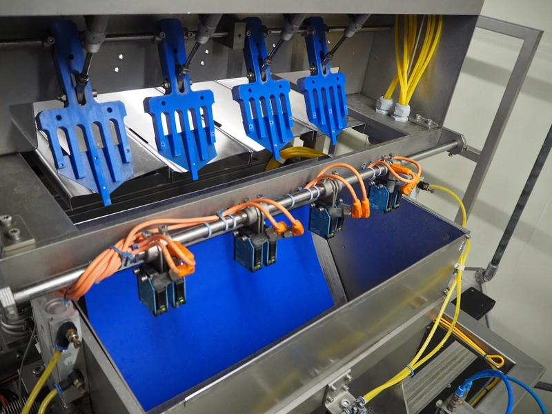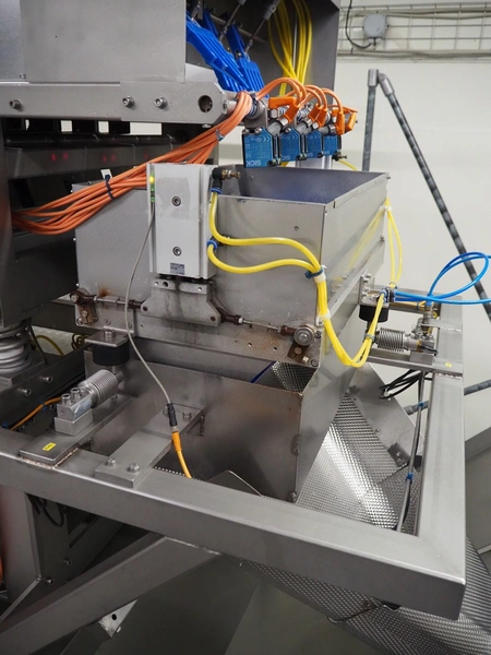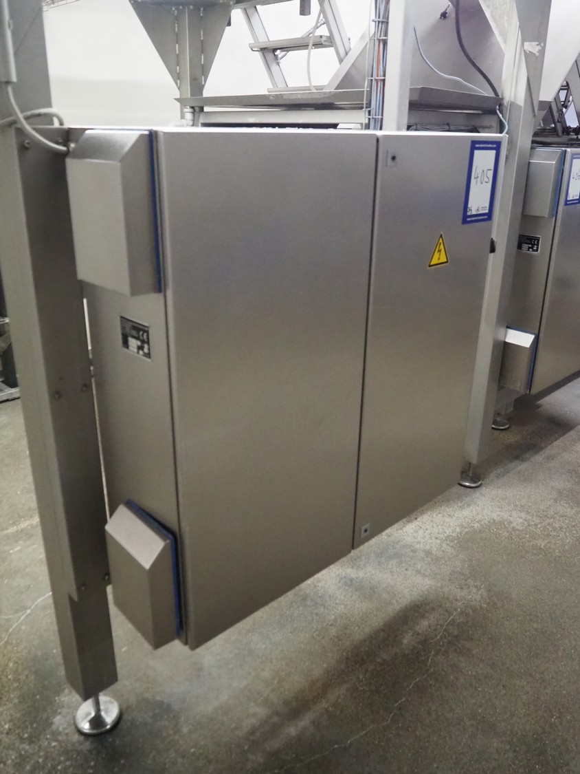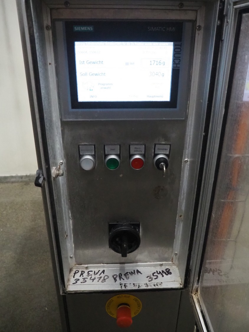 PREWA Verpackungsmaschinenbau GmbH 4-lanes linear weigher with transport belt, type: PRZ 1X4, number: 998\1, year of construction: 2012, 400 V, 3 Ph, 50 Hz, 16 A, plastic belt, belt width: 550 mm, gutter length: (4x) 960 mm, basket: 600 mm x 330 mm x 320 mm, Siemens AG weighing cells, type: (3x) SIWAREX WL 230, total dimensions: 3870 mm x 1000 mm x 1370 mm. S/s switch cabinet dimensions: 1160 mm x 350 mm x 1000 mm.