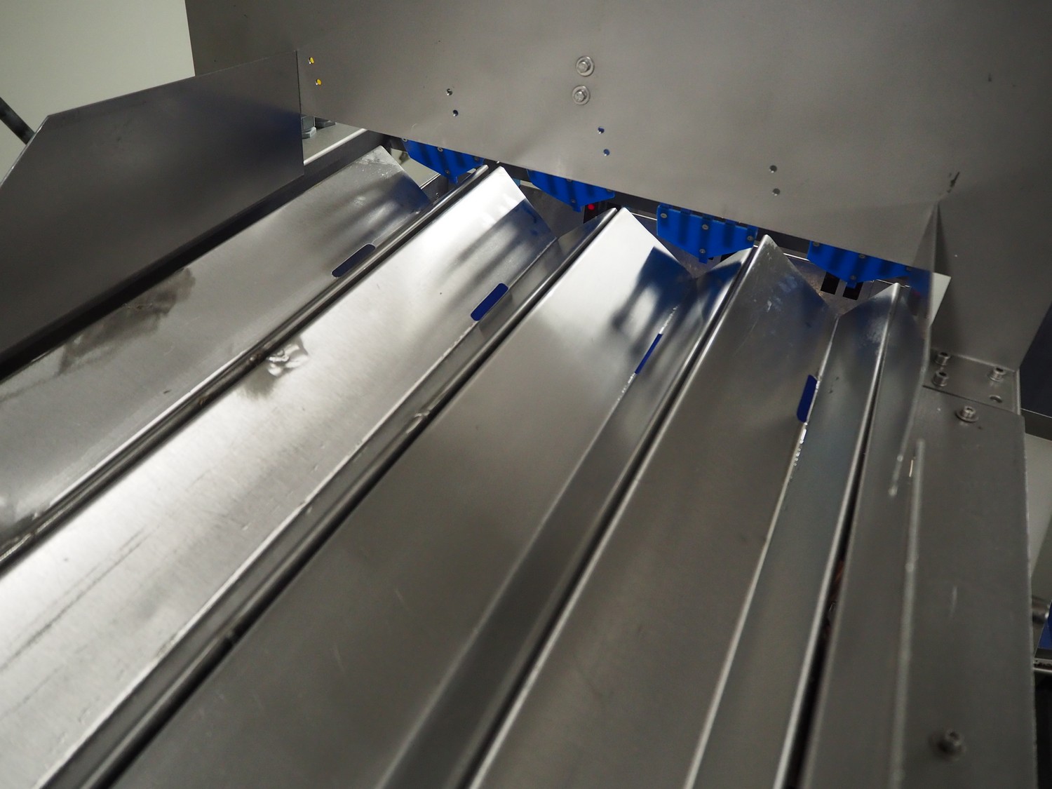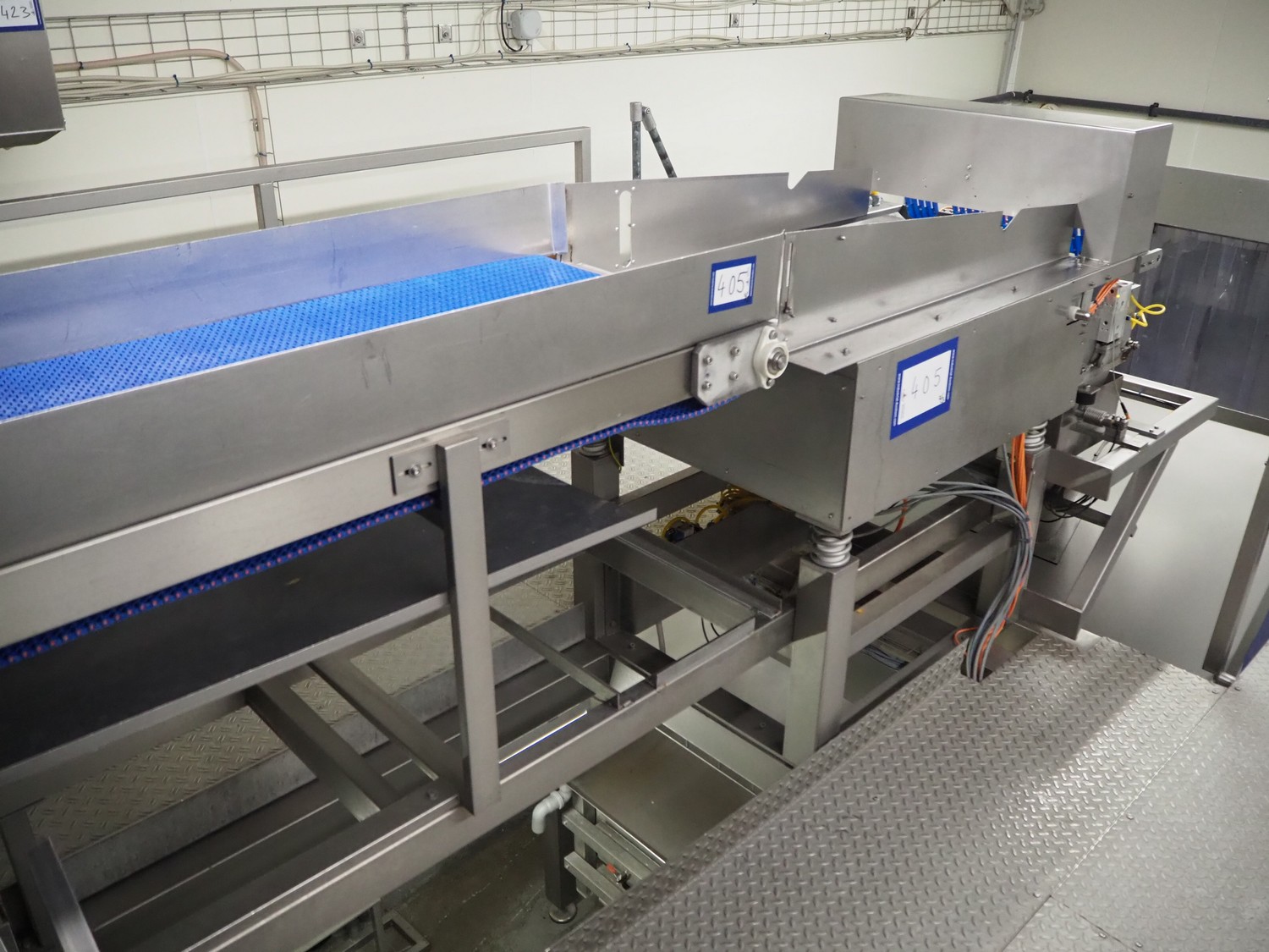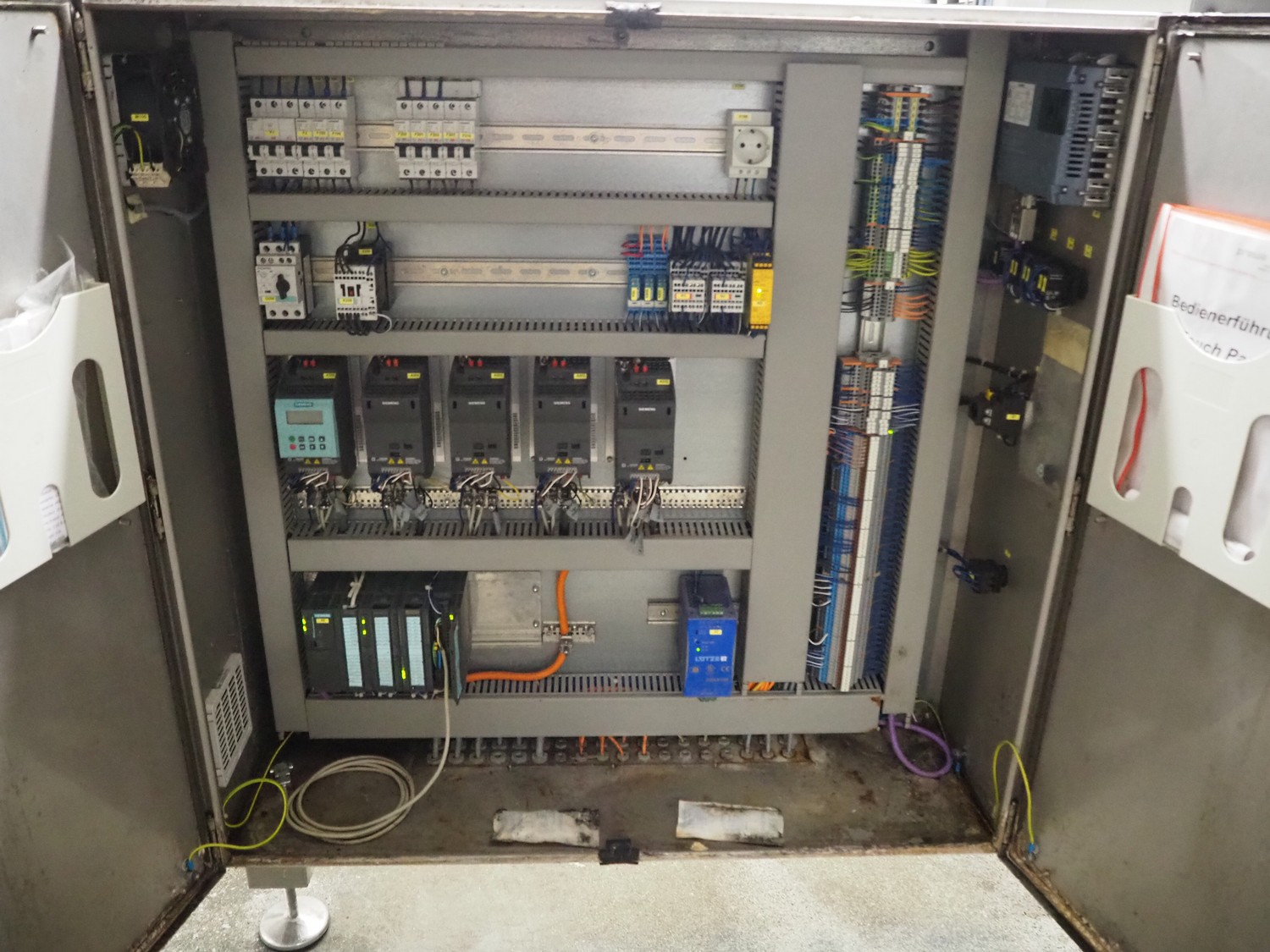 PREWA Verpackungsmaschinenbau GmbH 4-lanes linear weigher with transport belt, type: PRZ 1X4, number: 998\1, year of construction: 2012, 400 V, 3 Ph, 50 Hz, 16 A, plastic belt, belt width: 550 mm, gutter length: (4x) 960 mm, basket: 600 mm x 330 mm x 320 mm, Siemens AG weighing cells, type: (3x) SIWAREX WL 230, total dimensions: 3870 mm x 1000 mm x 1370 mm. S/s switch cabinet dimensions: 1160 mm x 350 mm x 1000 mm.