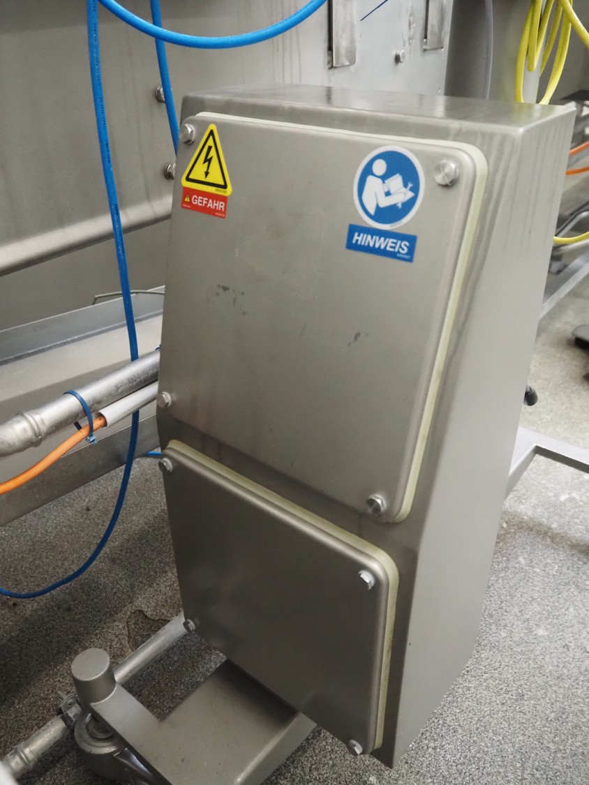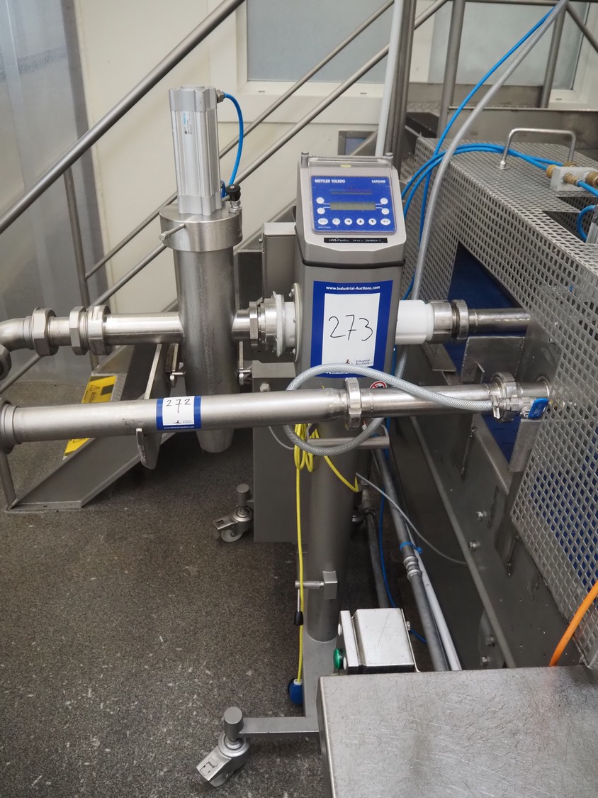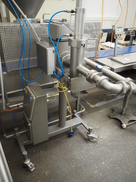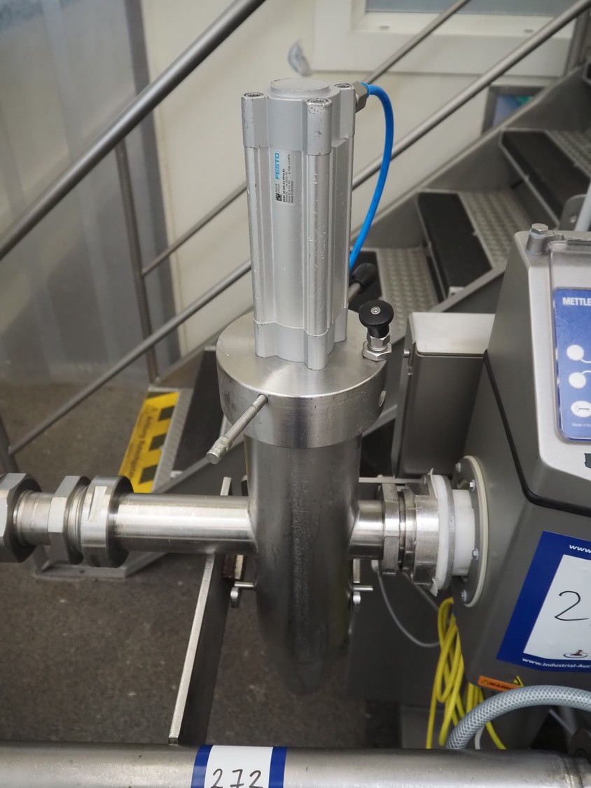 Mettler Toledo Safeline mobile pipeline metal detector with rejecter, diameter pipe: 100 mm, total dimensions: 900 mm x 600 mm x 1500 mm.