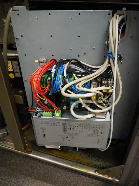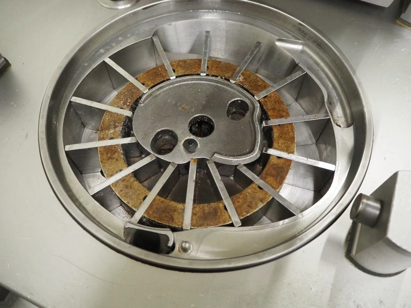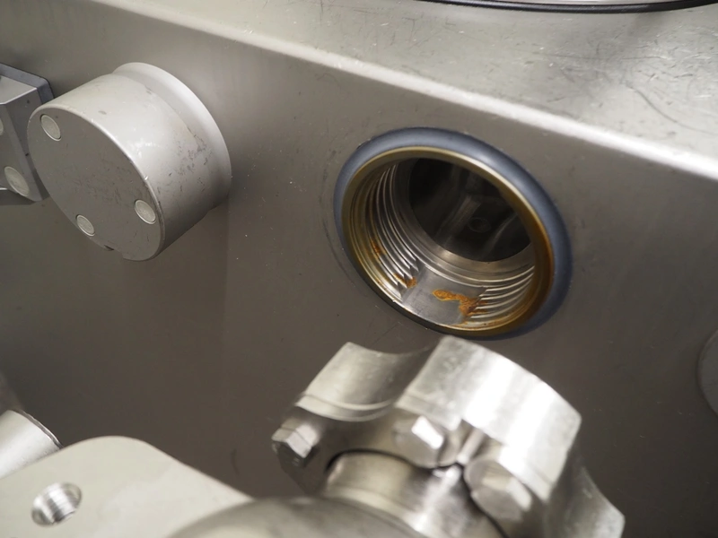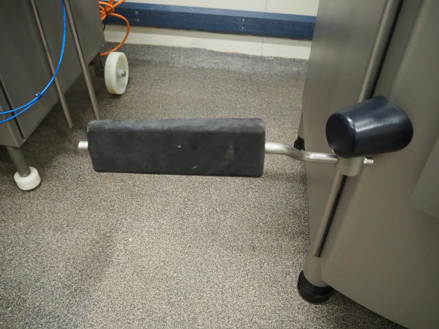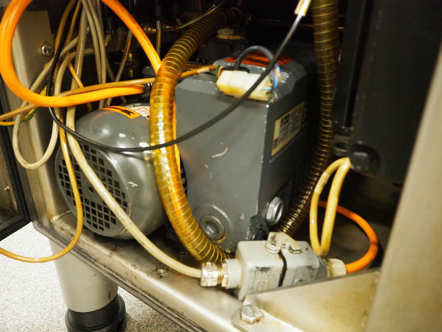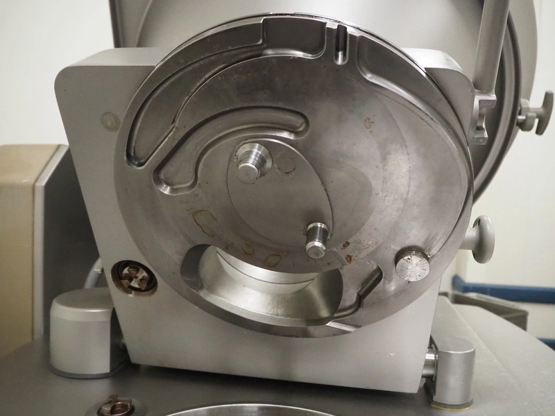 Handtmann vacuum filling machine with lifter for 200 liter meat bins, type: VF630, number: 32639, year of construction: 2013, 400 V, 3 Ph, 50 Hz, 18.0 A, 12.5 kW, Busch vacuum pump, type: KB 0040 D, serial number: 03040978, capacity: 48 m³ per hour, dimensions: 2000 mm x 1400 mm x 2200 mm.