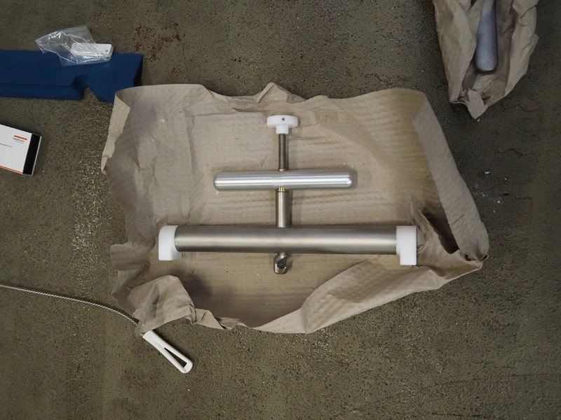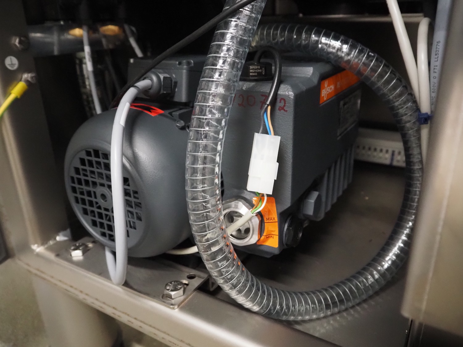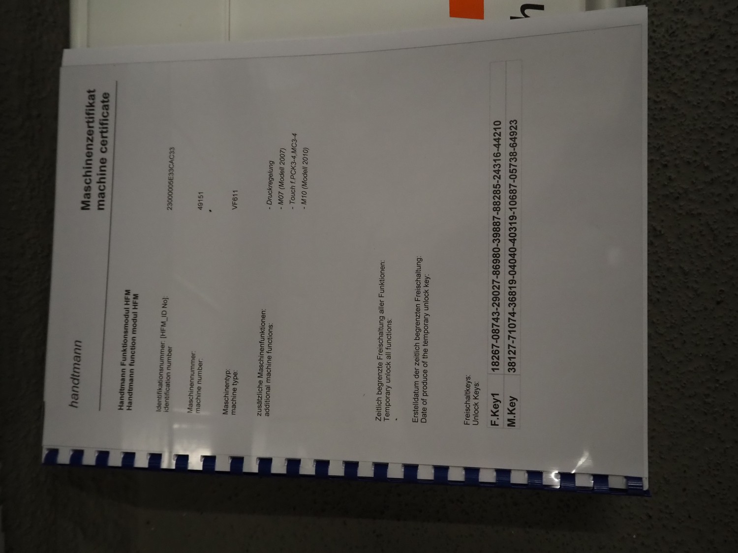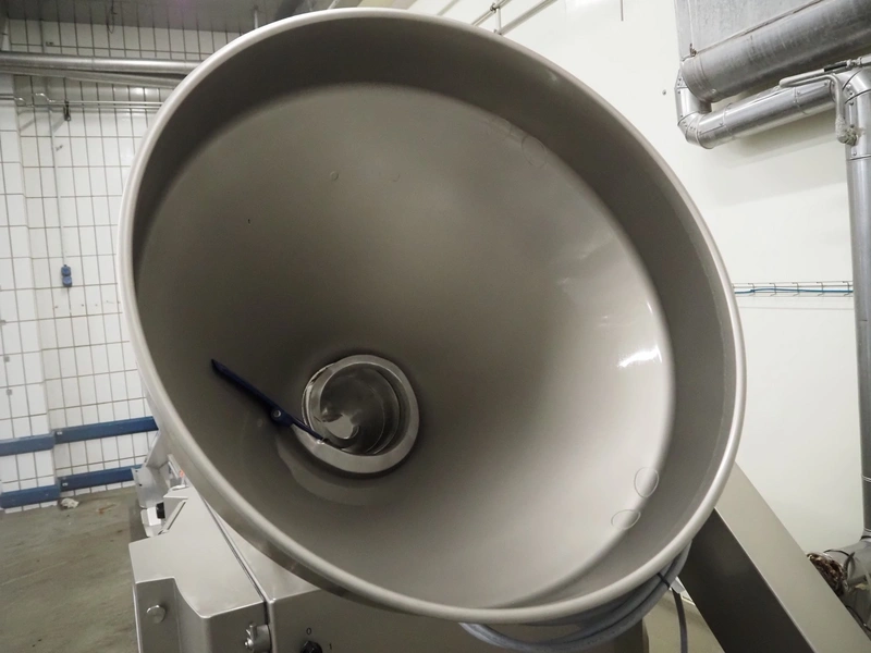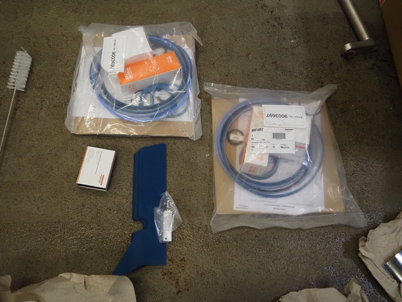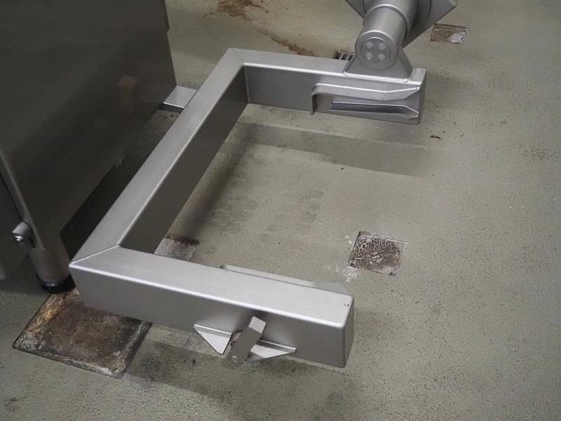 Handtmann vacuum filling machine with lifter for 200 liter meat bins, type: VF611, serial number: 49151, year of construction: 2022, 400 V, 3 Ph, 50 Hz, 5.1 A, 3.5 kW, built-in Busch vacuum pump, dimensions: 1800 mm x 1400 mm x 2000 mm. Including carton box with various parts.