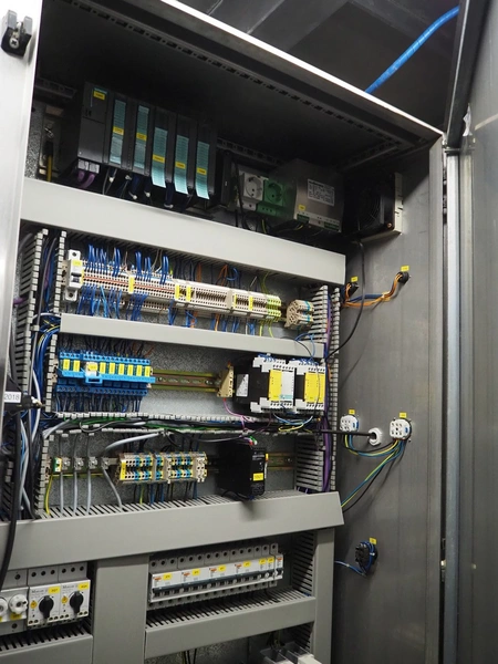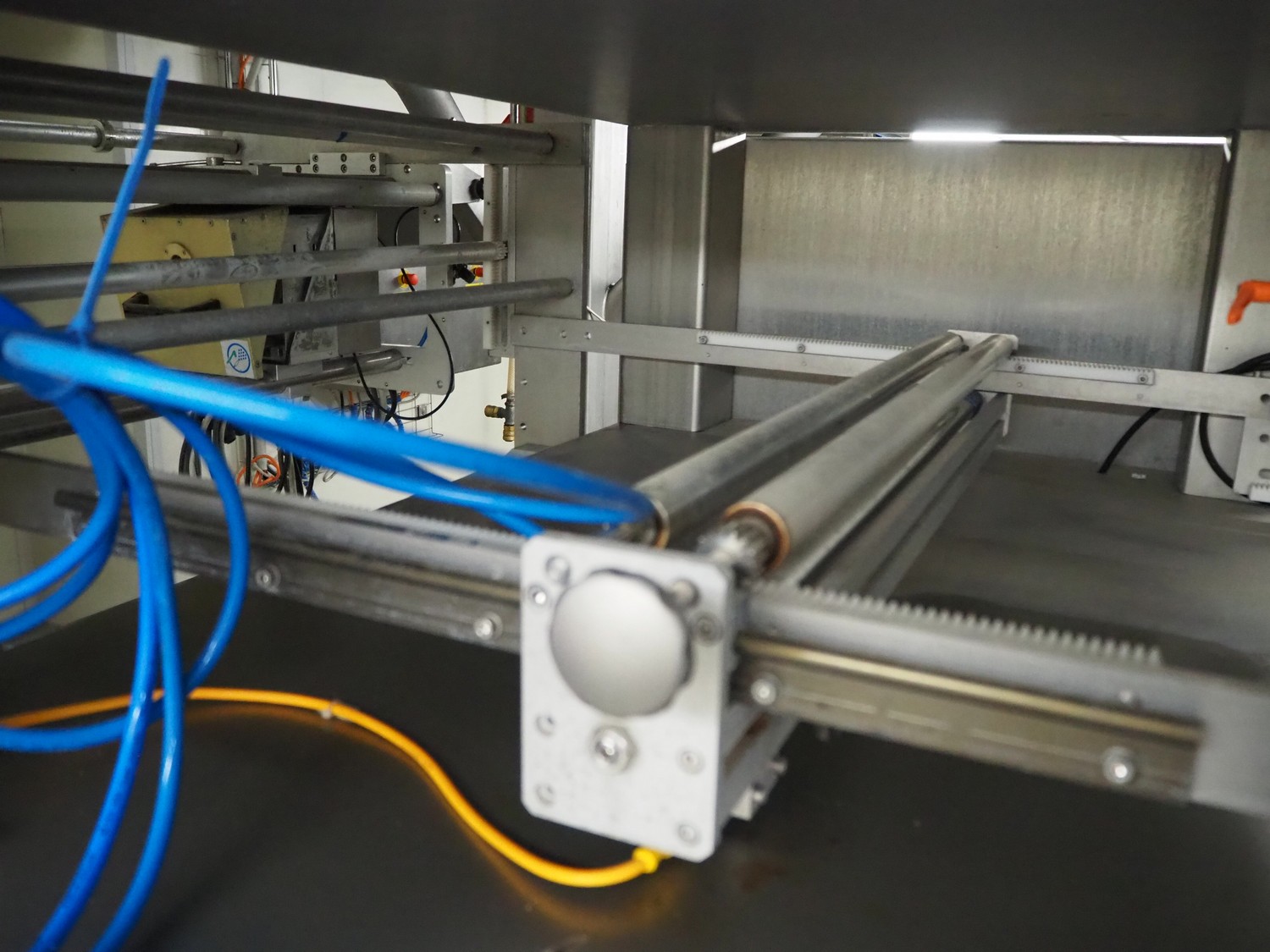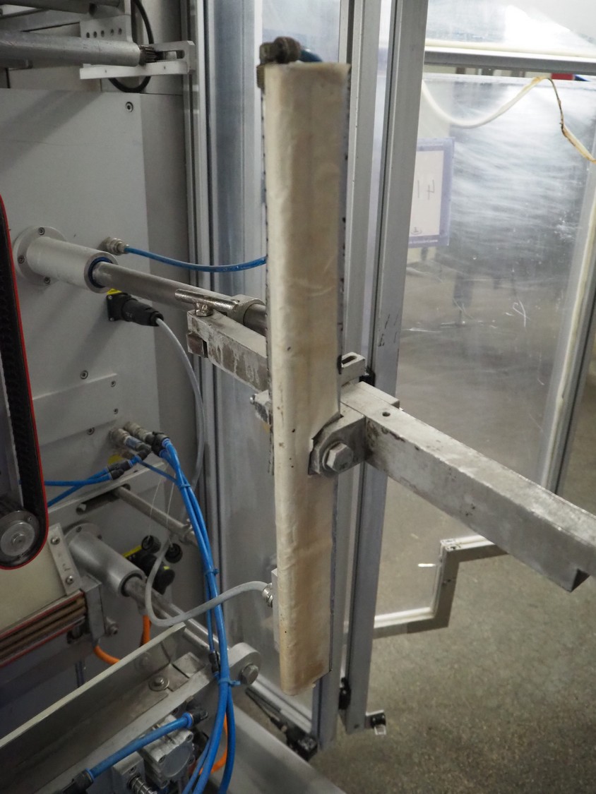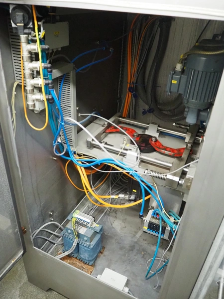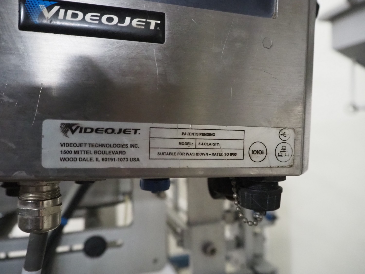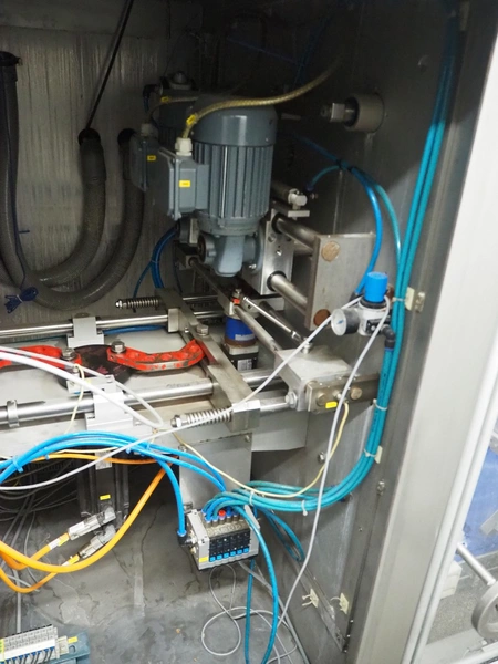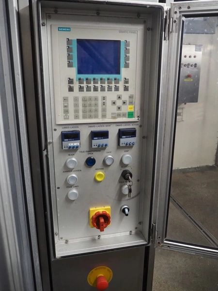 Kopas Verpackungsmaschinen GmbH vertical bag form-, fill-, and seal machine, type: JK 360 FM, machine number: 265, year of construction: 11/2005, 400 V, 3 Ph, 50 Hz, 11.5 kW, vertical seal length: 500 mm, horizontal seal length: 380 mm, film width: 780 mm, VideoJet barcode printer, model: 8.4 CLARITY, total dimensions: 2200 mm x 1700 mm x 1920 mm. Missing filling pipe.
