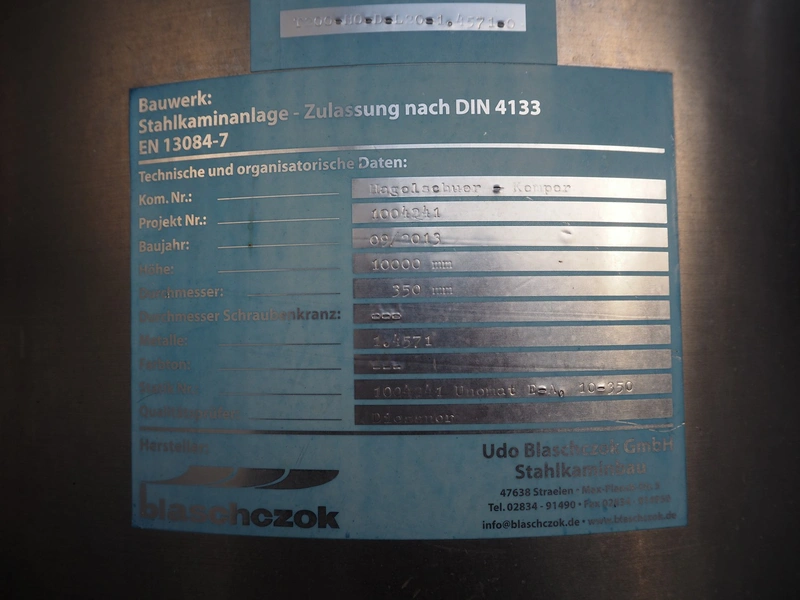 - Including Udo Blaschczok GmbH chimney, diameter: 350 mm, height: 10000 mm.Total dimensions container: 10000 mm x 3000 mm x 3200 mm.