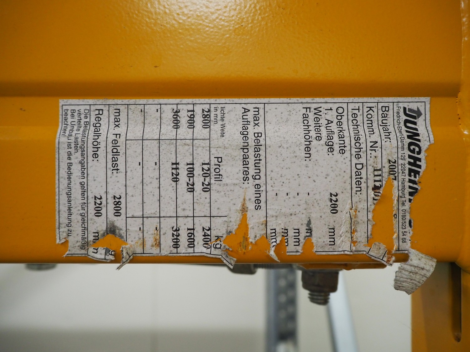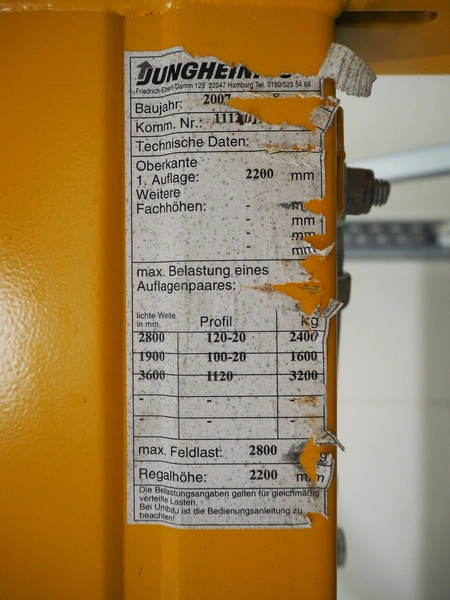 Jungheinrich steel pallet rack consisting of: 4 uprights, dimensions: (4x) 1230 mm x 2750 mm, 4 beams, beam length: (4x) 2800 mm.