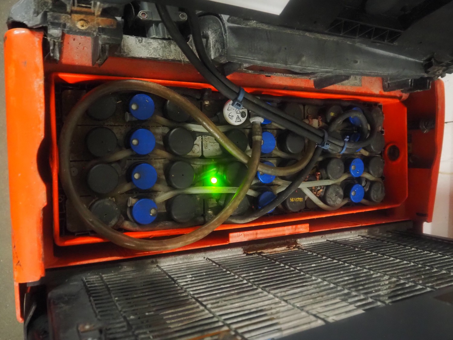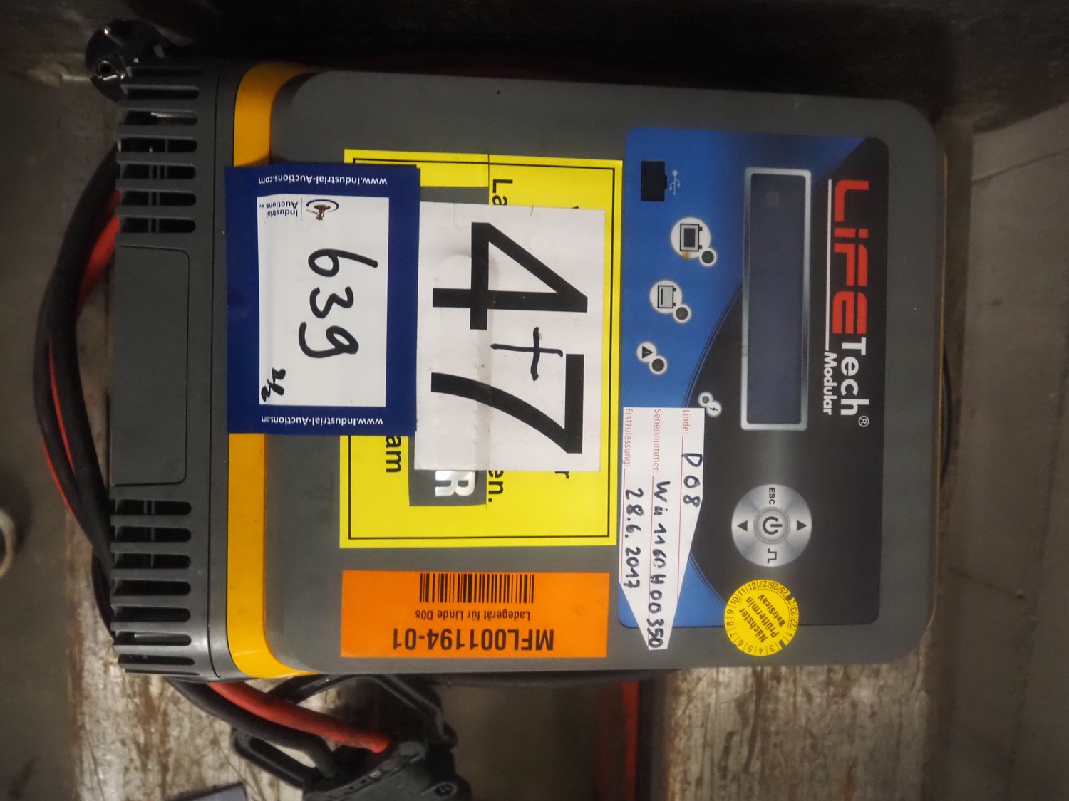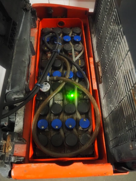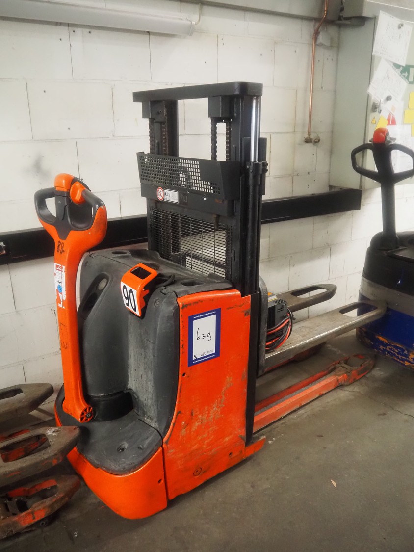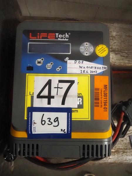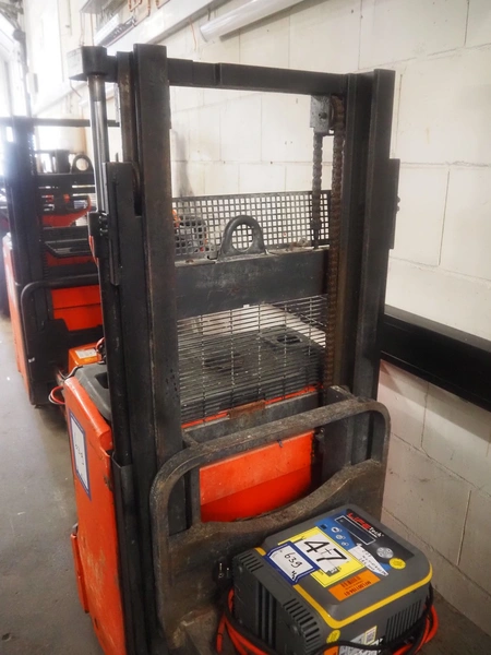 Linde Material Handling electric pallet lifter, fork length: 1150 mm, distance between forks: 180 mm, fork width: 540 mm, lifting height: 1810 mm, total dimensions: 1900 mm x 730 mm x 1380 mm. Including LifeTech battery charger.